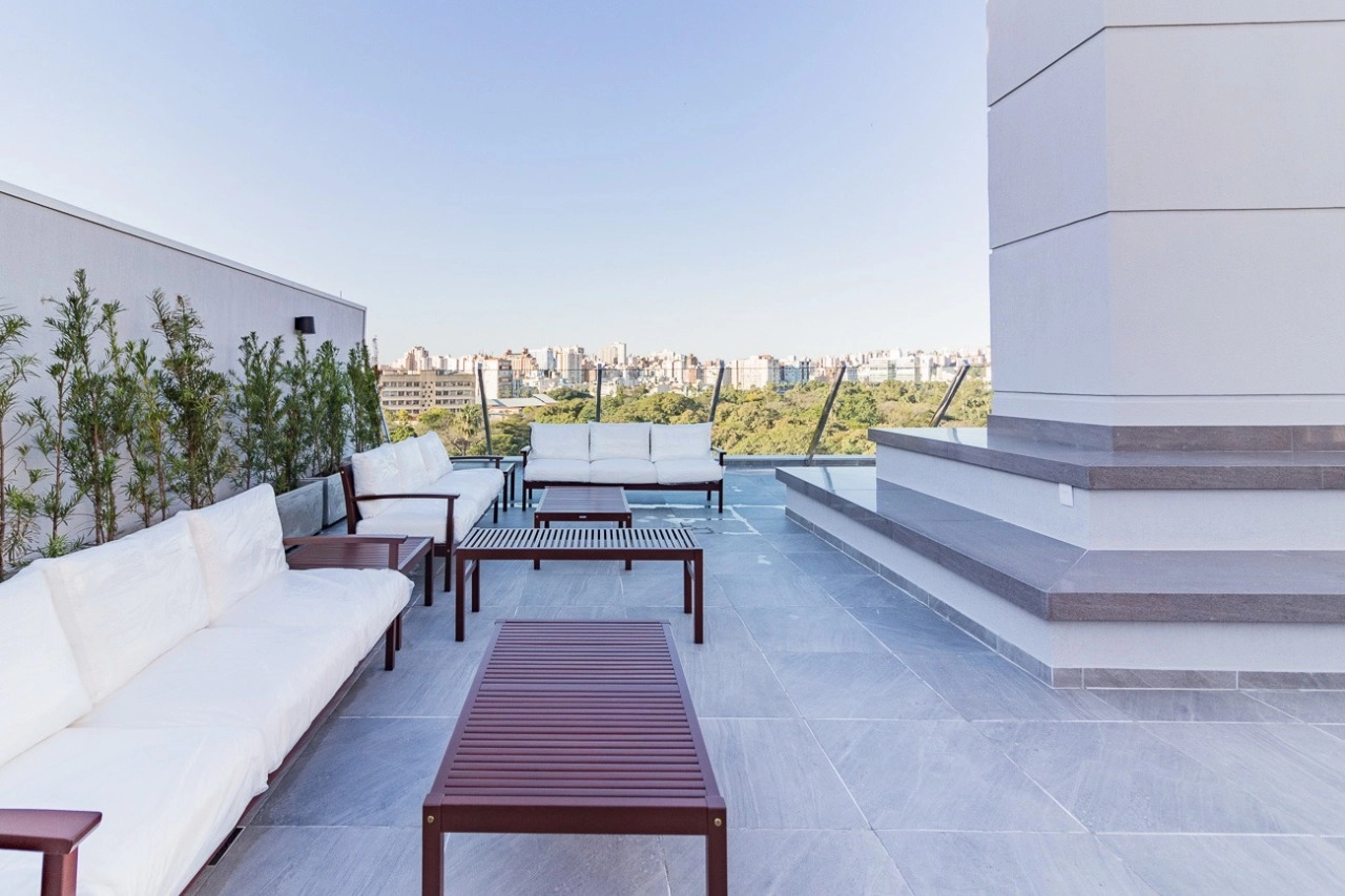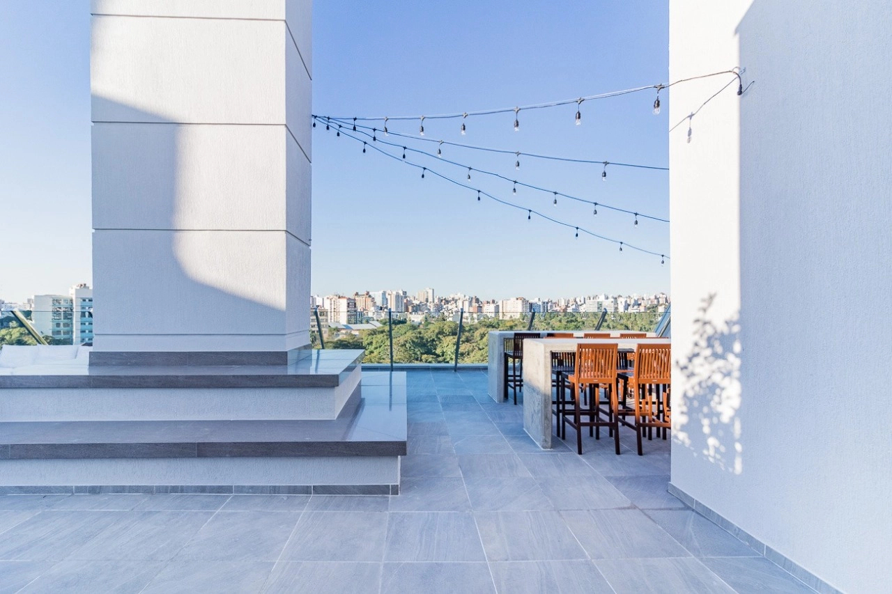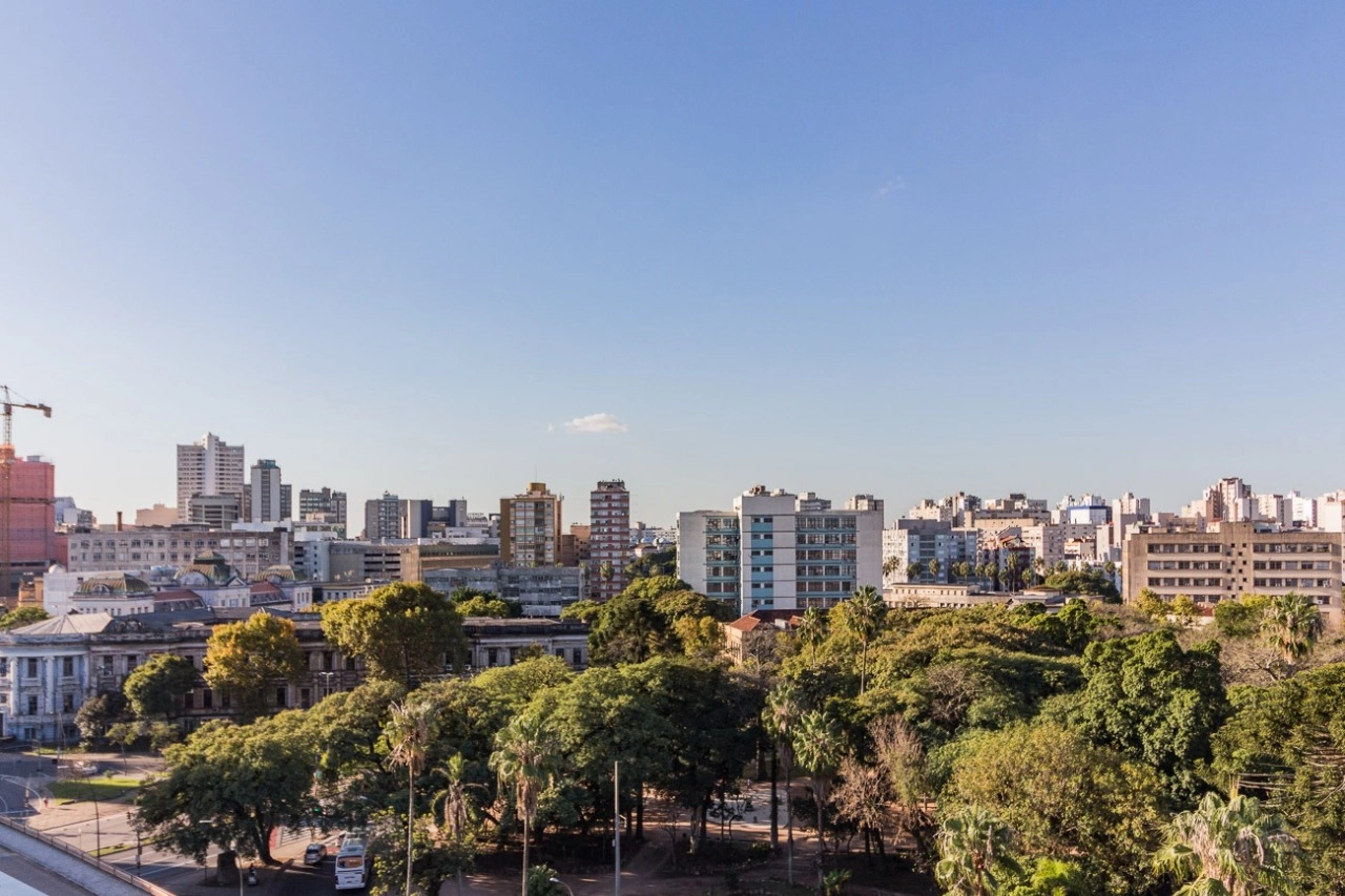 Condomínio com portaria 24h, salão de festas e terraço coletivo. Próximo do centro histórico e junto ao Parque Farroupilha.