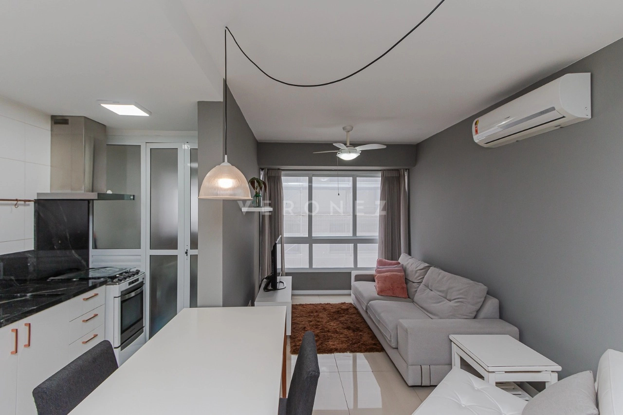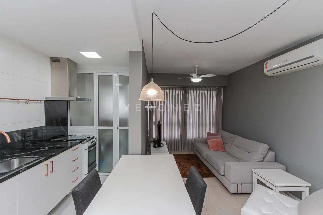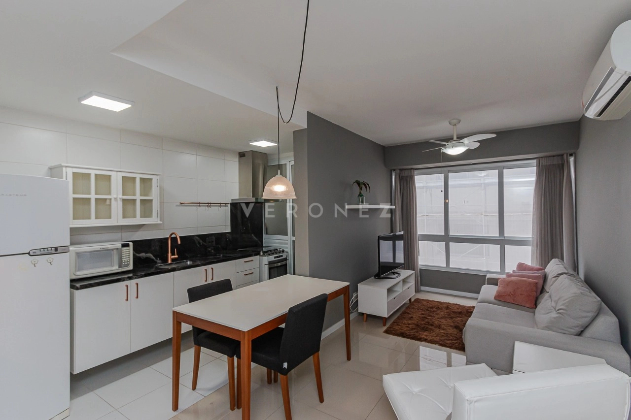 Aluguel em ótimo localização no bairro Petrópolis apartamento mobiliado com 01 dormitório, banho social/suíte, living 02 ambientes, cozinha americana com churrasqueira e área de serviço.