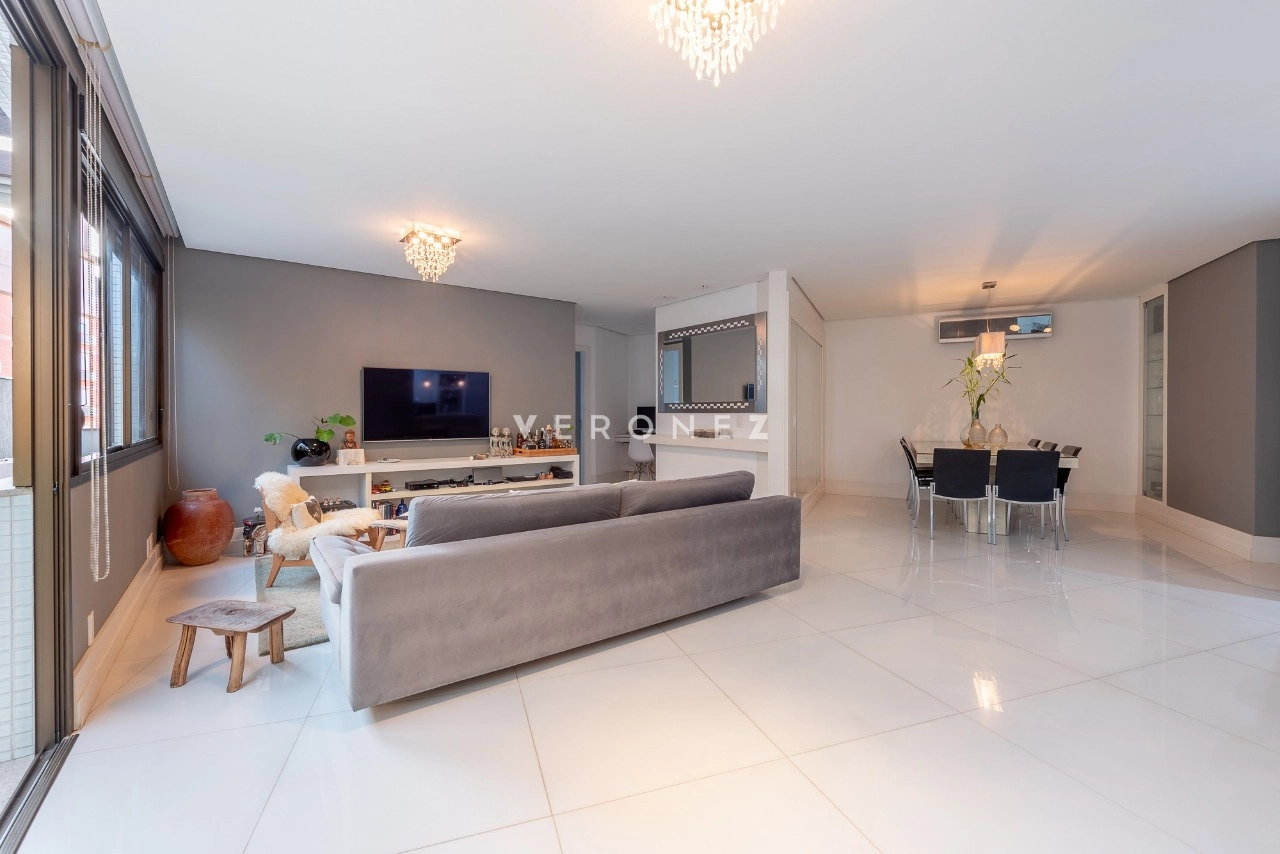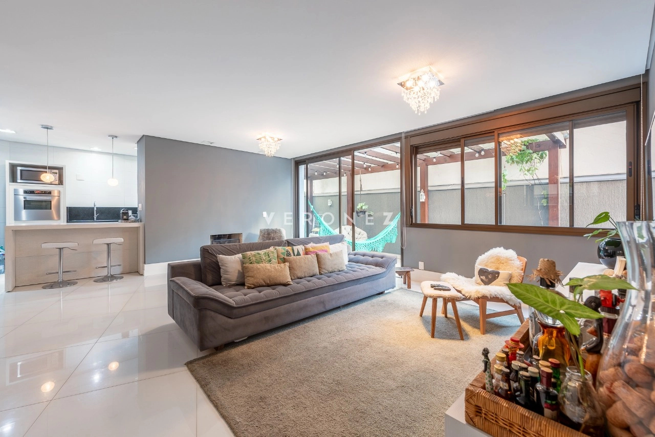 Com uma área privativa generosa de 151,55 m², o apartamento possui uma planta originalmente com 3 dormitórios, atualmente convertido em 2, porém, facilmente reversível. O espaçoso living se estende por 3 ambientes e conta com uma lareira para as noites aconchegantes, uma churrasqueira para os momentos de confraternização, e uma cozinha americana. Além disso, o imóvel apresenta um amplo e acolhedor terraço. São disponibilizadas 3 vagas de garagem individuais, além de um amplo espaço fechado que pode ser adaptado para diversas finalidades, como escritório, dependência de serviços ou depósito, possuindo inclusive um banheiro instalado e a possibilidade de instalação de um split. Além disso, o condomínio dispõe de portaria virtual, sistema de gás central, elevador e um salão de festas para desfrutar de momentos especiais de celebração.