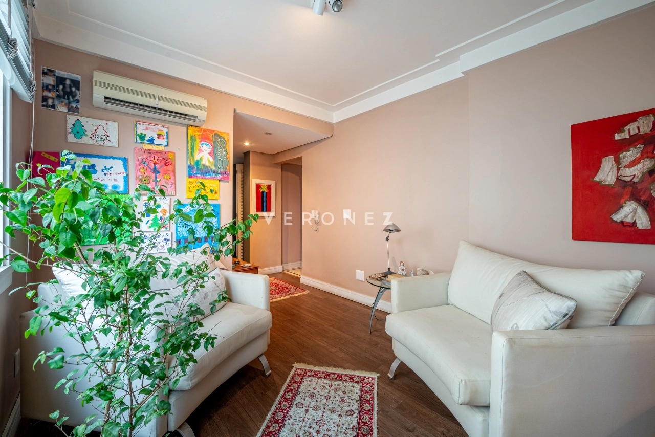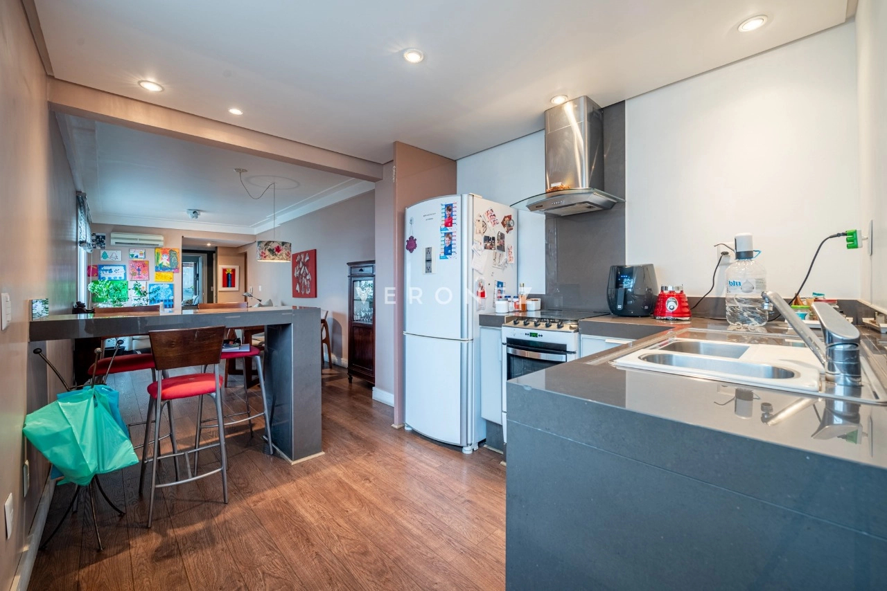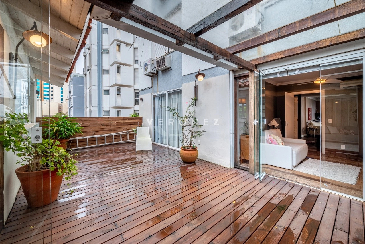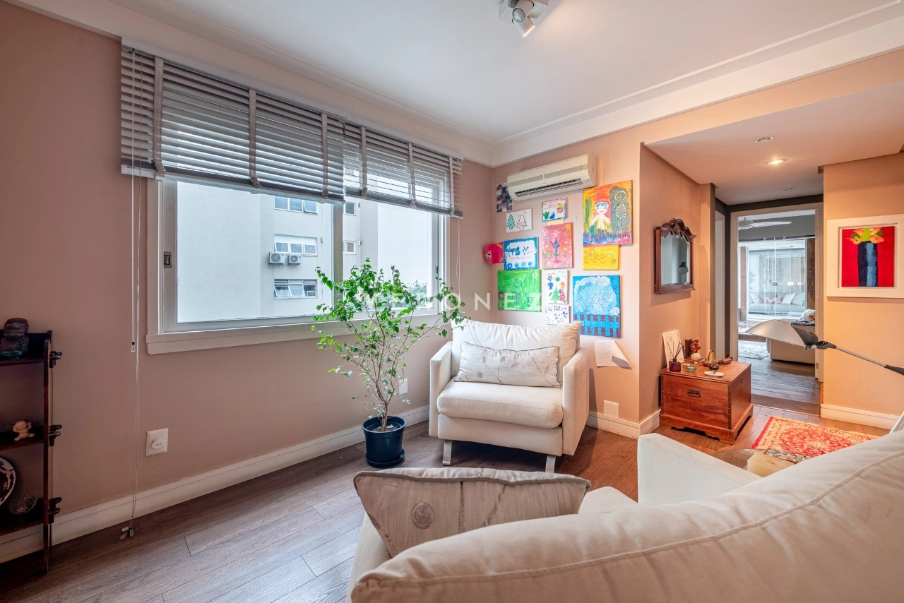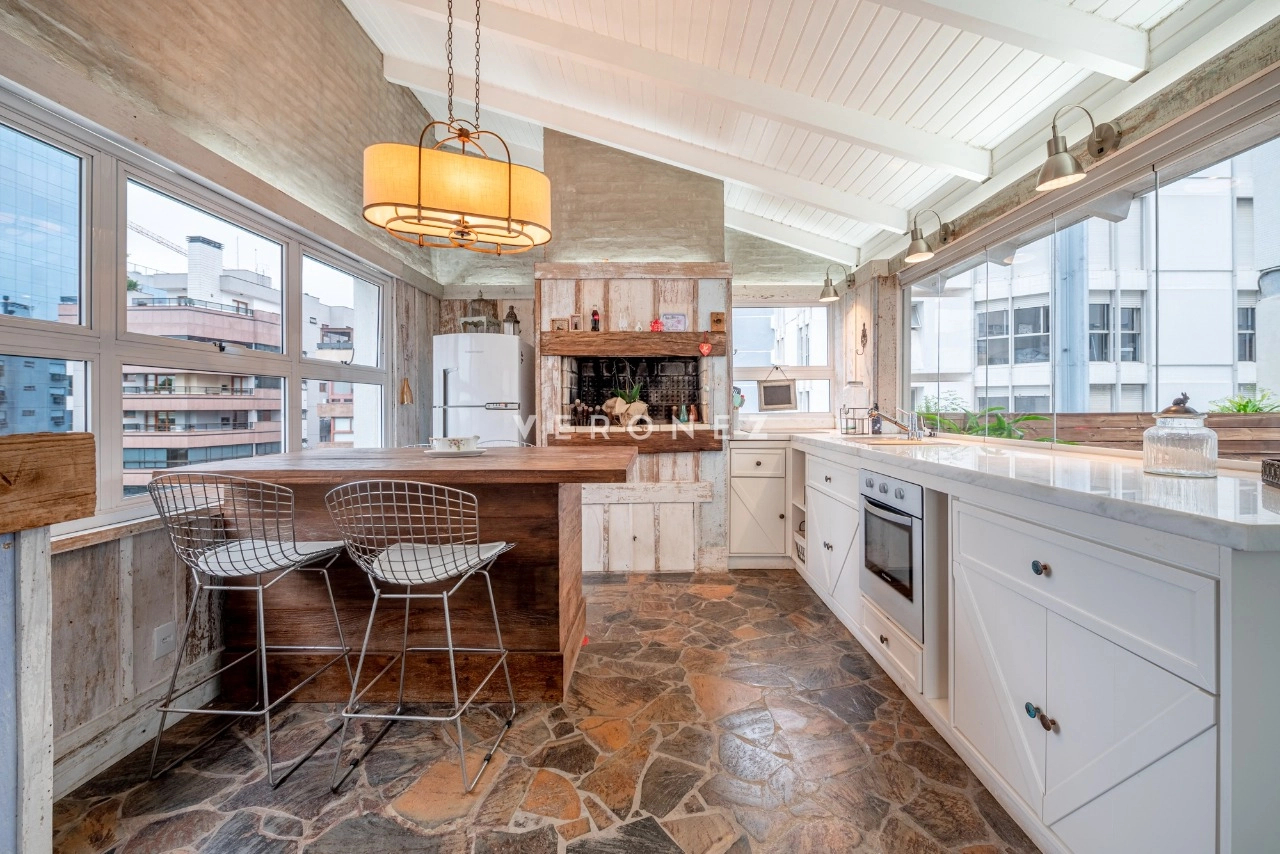 Apartamento garden reformada, de 145m² privativos com living para 2 ambientes, lavabo, cozinha integrada, área de serviço separada e amplo terraço com 2 ambientes, um externo e outro fechado com lareira e uma linda área gourmet com churrasqueira.