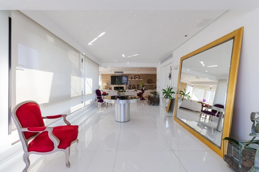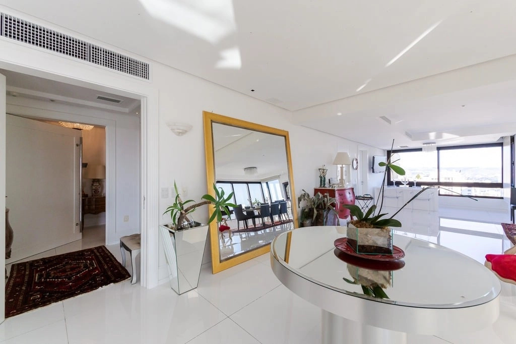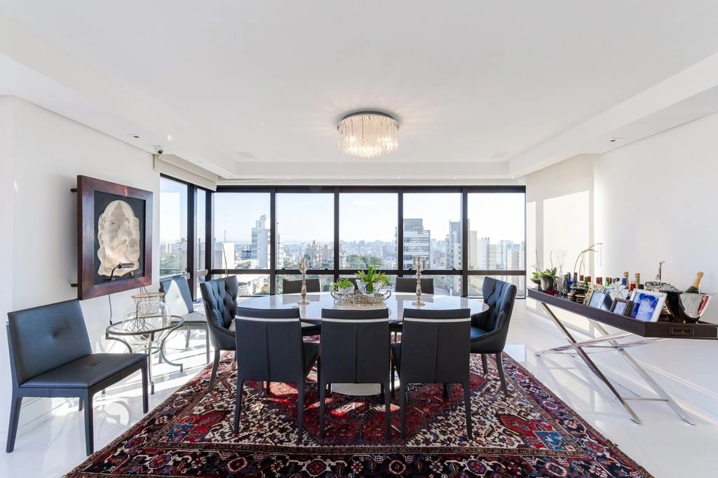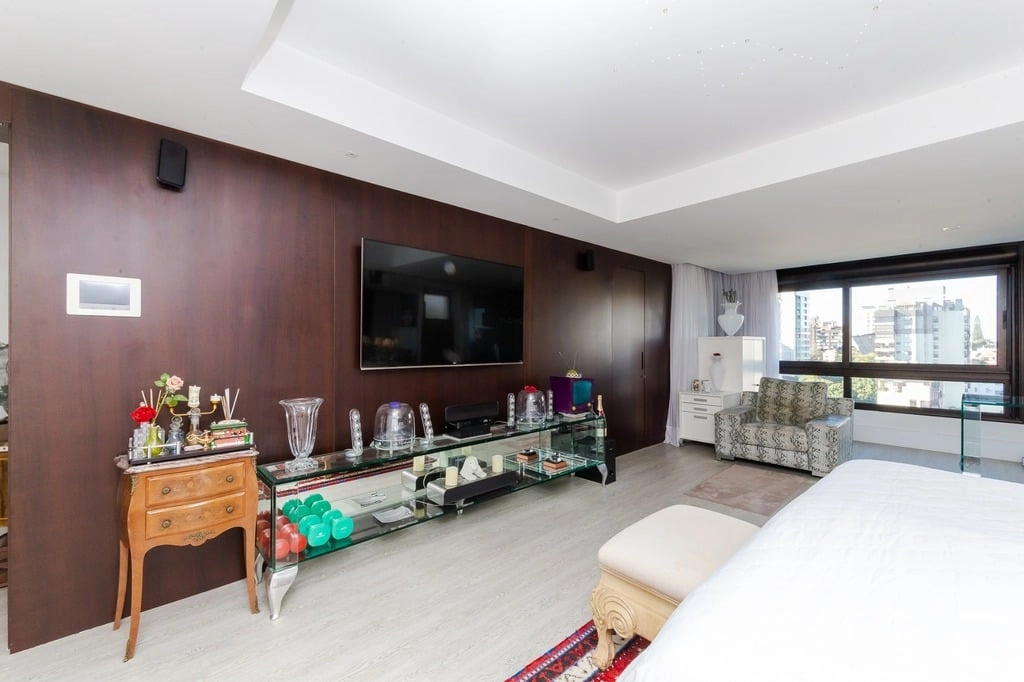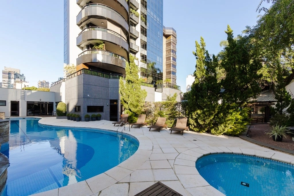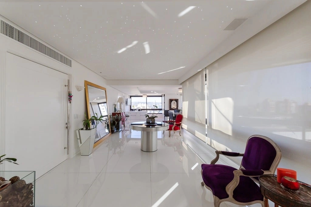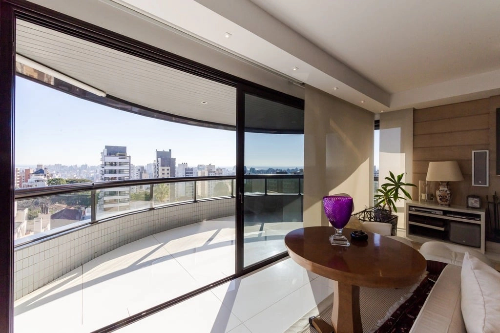 Apresentamos um sofisticado apartamento de 365m² de área privativa nos altos do bairro Bela Vista, com vistas definidas e permanentes. Esta residência de luxo dispõe de quatro suítes e quatro vagas de garagem individuais, proporcionando conforto e exclusividade. Localizado em um andar único com hall e elevador privativos, o apartamento oferece acesso direto a um amplo living voltado para o leste, com uma sacada que proporciona uma vista deslumbrante do pôr do sol sobre o Guaíba e uma linda vista da cidade. O espaço gourmet com churrasqueira, lareira e lavabo complementa este ambiente refinado. A copa-cozinha, equipada com móveis planejados Kitchens, despensa e área de serviço com entrada independente, inclui dormitório e banheiro de serviço. A área íntima é diferenciada, atualmente configurada com três suítes, com opção para uma quarta suíte ou gabinete/home office, além de espaço para uma ampla adega privativa. A suíte master destaca-se com banheiro ele/ela, com jacuzzi, sauna, hidromassagem vertical e pisos aquecidos. Os banheiros e chuveiros possuem cromoterapia, proporcionando um ambiente de bem-estar e relaxamento. O apartamento está equipado com um sistema de automação para cortinas, persianas e iluminação, além de ar condicionado inteligente em todos os ambientes. O empreendimento, Ville de Grasse, é atemporal com uma fachada imponente e revestida, porte-cochère e hall de entrada com pé-direito triplo e acabamentos em mármore. A infraestrutura de luxo inclui espaço gourmet com churrasqueira, salão de festas com cozinha gourmet, sala de cinema equipada, adega climatizada com espaço individual para cada morador, duas academias, sauna, piscina externa aquecida, espaço para jogos, lounge, sala de motorista, estacionamento para visitantes e gerador para áreas comuns e unidades autônomas. A segurança é reforçada com guarita blindada, entradas de veículos individualizadas para moradores e visitantes com sistema de clausura, e portaria 24 horas. Situado no centro do bairro Bela Vista, o Ville de Grasse oferece muita luminosidade, privacidade e conforto aos seus privilegiados moradores. Agende sua visita e descubra a experiência de viver neste condomínio exclusivo. Preço e disponibilidade do imóvel sujeitos a alteração sem aviso prévio.