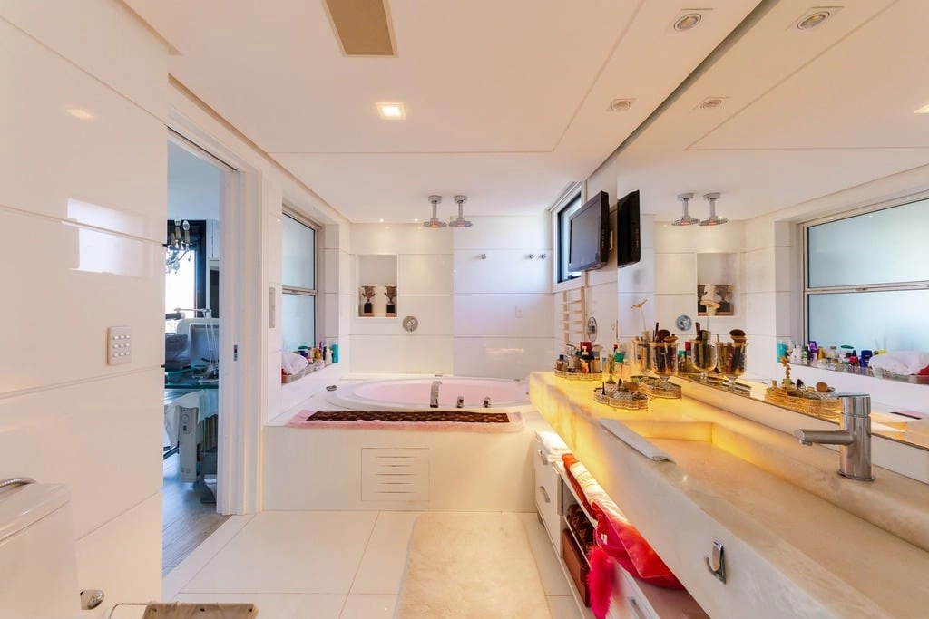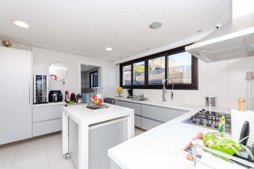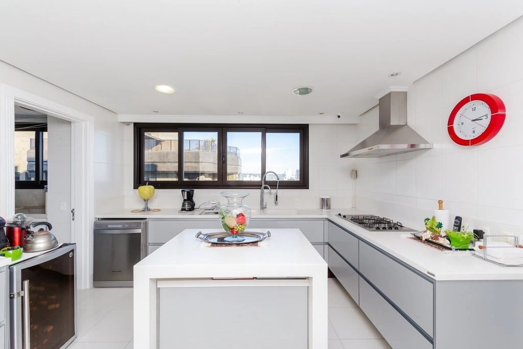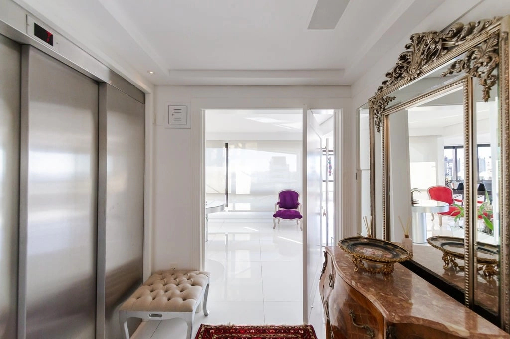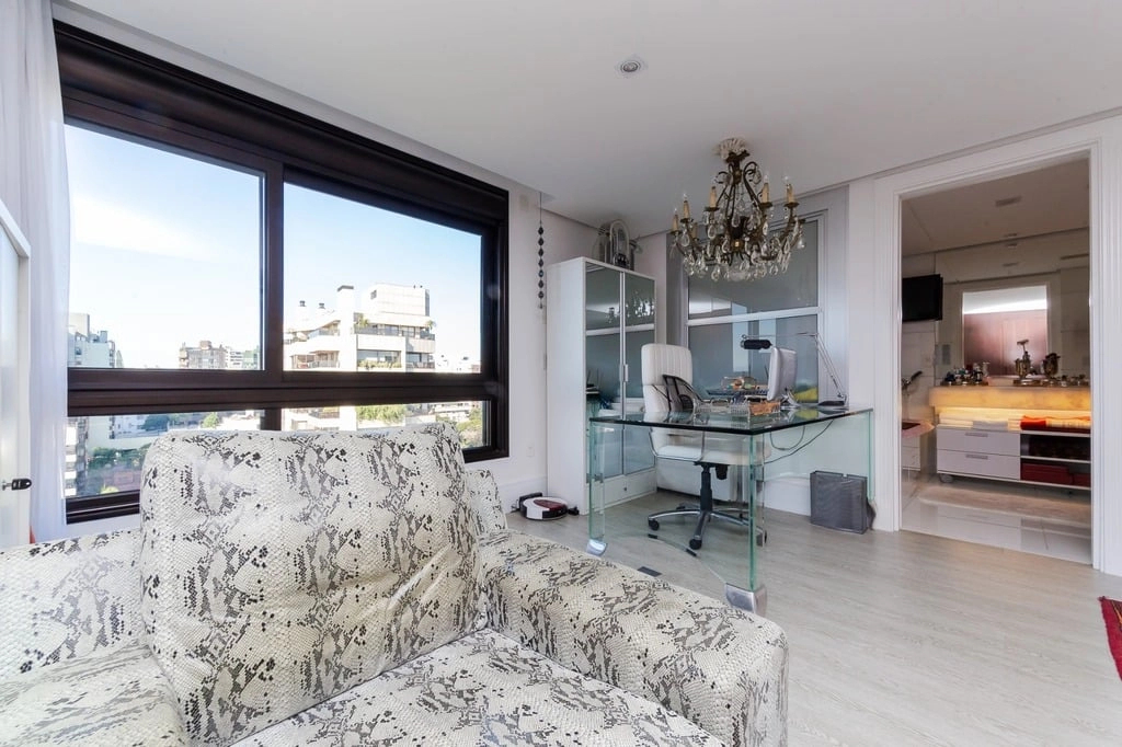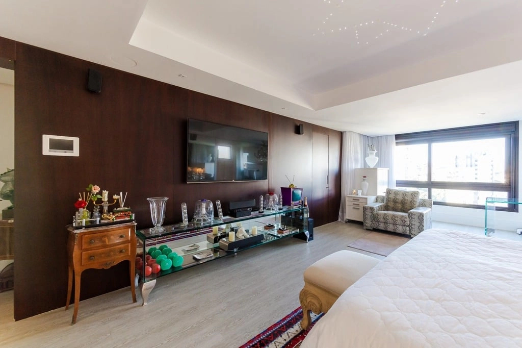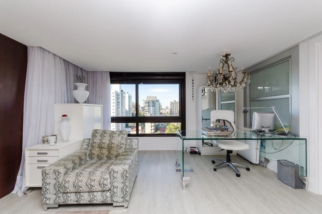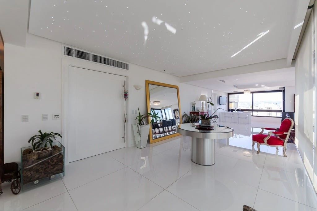 Apresentamos um sofisticado apartamento de 365m² de área privativa nos altos do bairro Bela Vista, com vistas definidas e permanentes. Esta residência de luxo dispõe de quatro suítes e quatro vagas de garagem individuais, proporcionando conforto e exclusividade. Localizado em um andar único com hall e elevador privativos, o apartamento oferece acesso direto a um amplo living voltado para o leste, com uma sacada que proporciona uma vista deslumbrante do pôr do sol sobre o Guaíba e uma linda vista da cidade. O espaço gourmet com churrasqueira, lareira e lavabo complementa este ambiente refinado. A copa-cozinha, equipada com móveis planejados Kitchens, despensa e área de serviço com entrada independente, inclui dormitório e banheiro de serviço. A área íntima é diferenciada, atualmente configurada com três suítes, com opção para uma quarta suíte ou gabinete/home office, além de espaço para uma ampla adega privativa. A suíte master destaca-se com banheiro ele/ela, com jacuzzi, sauna, hidromassagem vertical e pisos aquecidos. Os banheiros e chuveiros possuem cromoterapia, proporcionando um ambiente de bem-estar e relaxamento. O apartamento está equipado com um sistema de automação para cortinas, persianas e iluminação, além de ar condicionado inteligente em todos os ambientes. O empreendimento, Ville de Grasse, é atemporal com uma fachada imponente e revestida, porte-cochère e hall de entrada com pé-direito triplo e acabamentos em mármore. A infraestrutura de luxo inclui espaço gourmet com churrasqueira, salão de festas com cozinha gourmet, sala de cinema equipada, adega climatizada com espaço individual para cada morador, duas academias, sauna, piscina externa aquecida, espaço para jogos, lounge, sala de motorista, estacionamento para visitantes e gerador para áreas comuns e unidades autônomas. A segurança é reforçada com guarita blindada, entradas de veículos individualizadas para moradores e visitantes com sistema de clausura, e portaria 24 horas. Situado no centro do bairro Bela Vista, o Ville de Grasse oferece muita luminosidade, privacidade e conforto aos seus privilegiados moradores. Agende sua visita e descubra a experiência de viver neste condomínio exclusivo. Preço e disponibilidade do imóvel sujeitos a alteração sem aviso prévio.