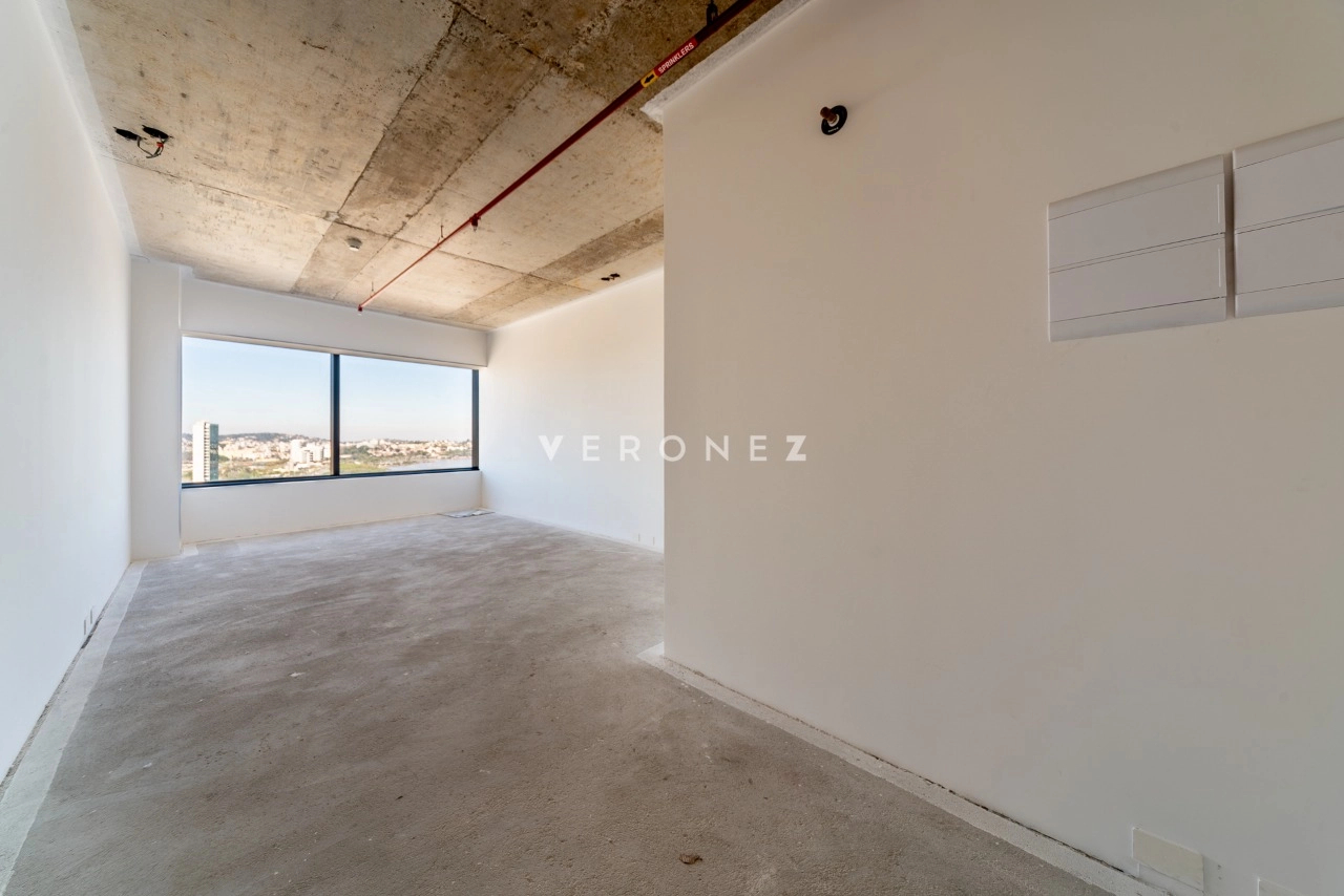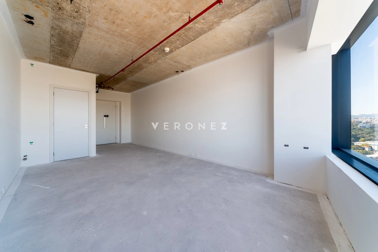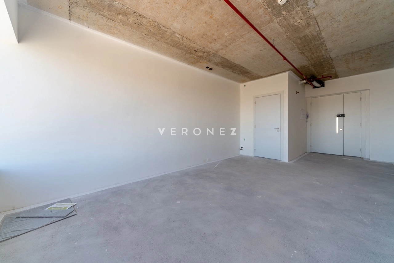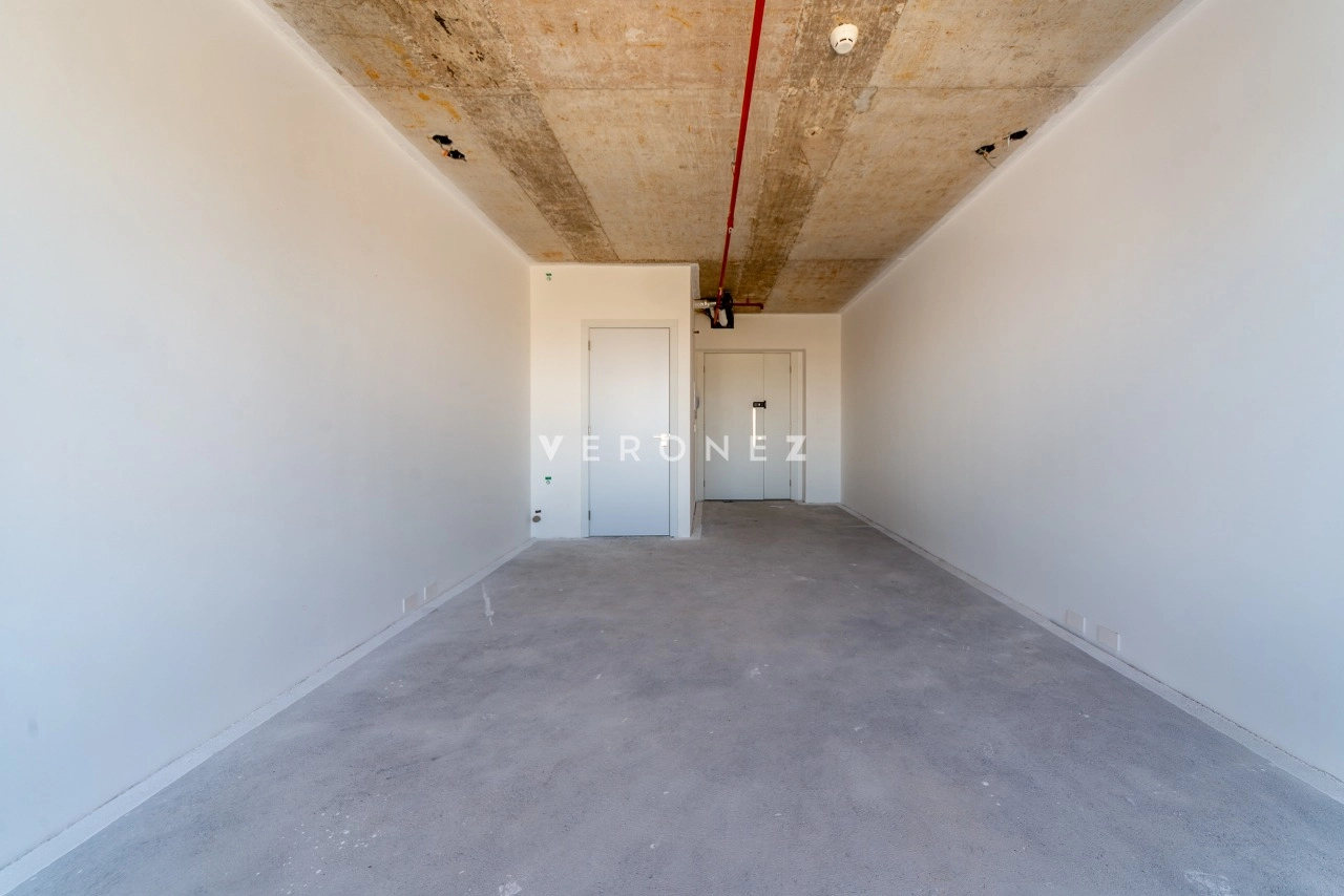 Sala de 32m² entregue no estado bruto (no piso), com possibilidade de aquisição de kits de acabamento, disponíveis à parte. Personalize de acordo com a sua necessidade