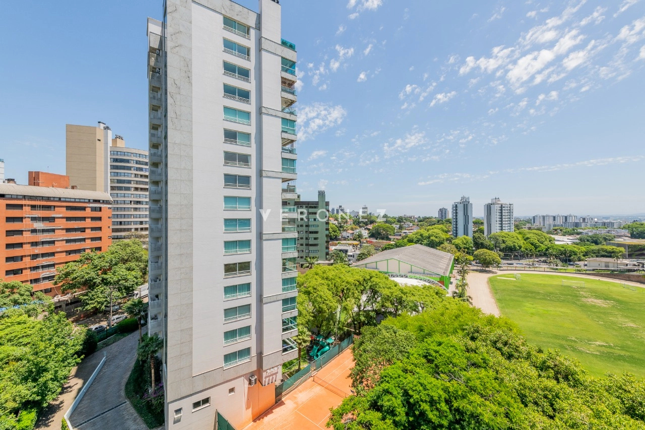incrível cobertura duplex, com 252,26 m² de área privativa, 3 dormitórios, sendo 3 suítes, living para 2 ambientes, hall privativo, sacada e terraço privativo, churrasqueira, lavabo e lavanderia. Possui 3 vagas de garagem. Com localização privilegiada no Bairro Três Figueiras e vista para o colégio Anchieta