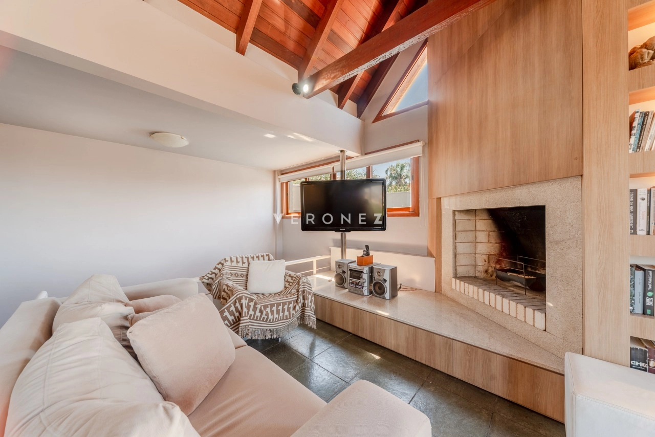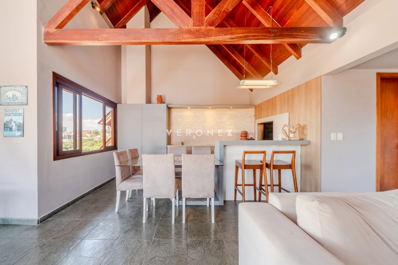 Ampla casa em condomínio, ótima posição solar, com jardim privativo, sala de estar e jantar (em desnível com piso e coluna em mármore), churrasqueira, cozinha, 3 quartos todos com sacada, sendo 1 suíte com hidromassagem, banheiro social, lindo espaço gourmet reformado por arquiteto com cozinha, churrasqueira e lareira, espaço externo com deck, piscina e uma vista privilegiada. Andar inferior com as garagens, quarto e banheiro para serviço, área de serviço separada e local para deposito podendo ser transformado em escritório.