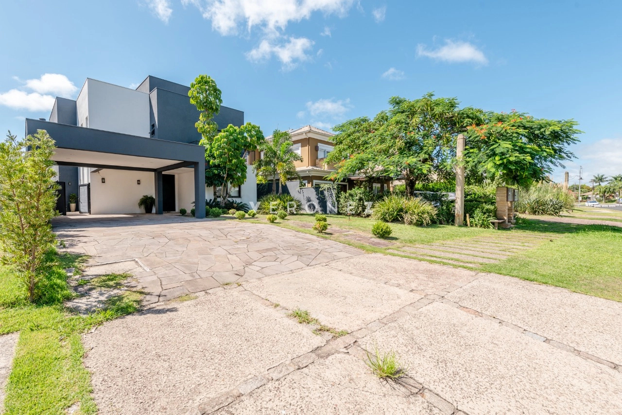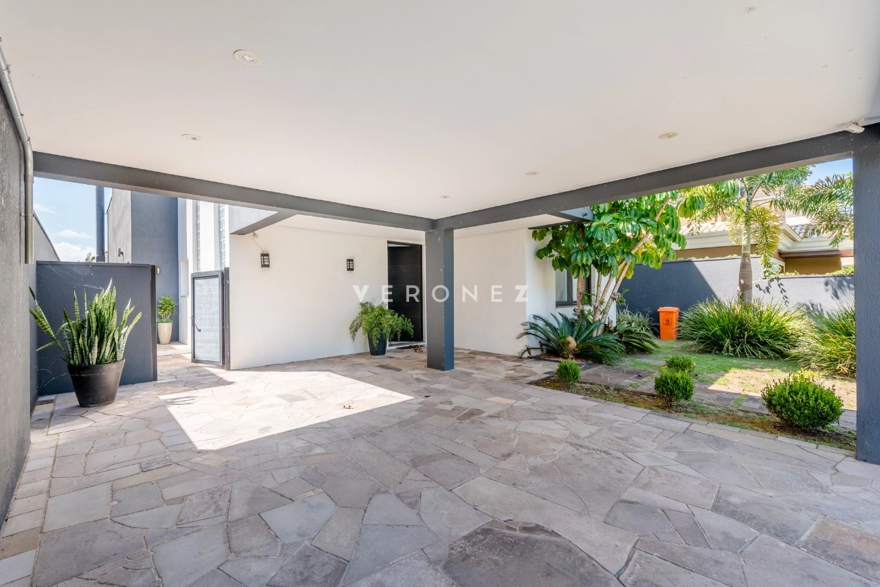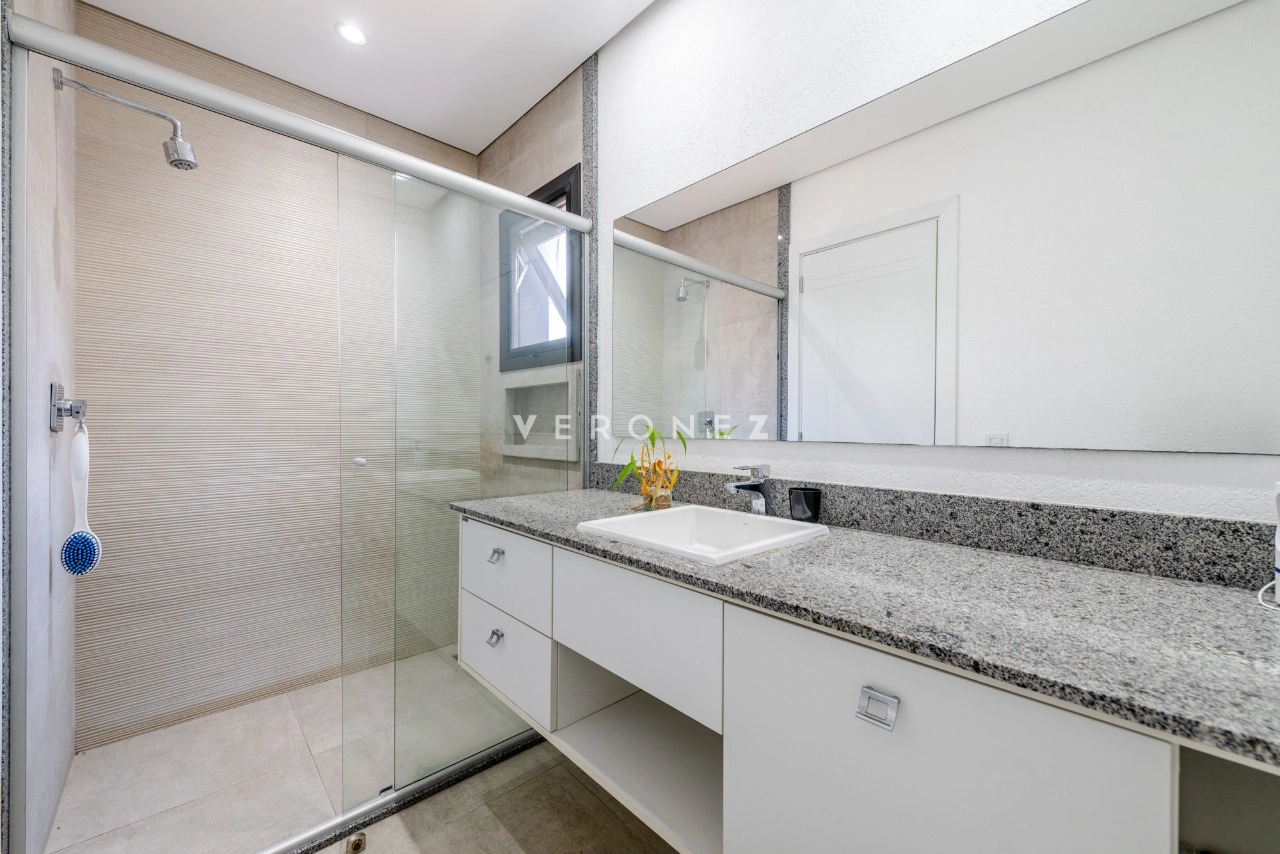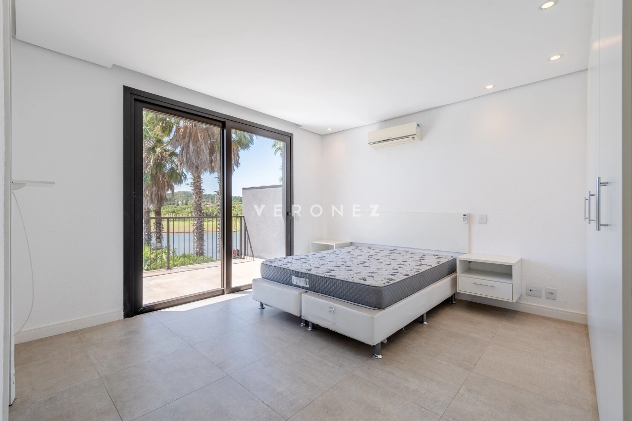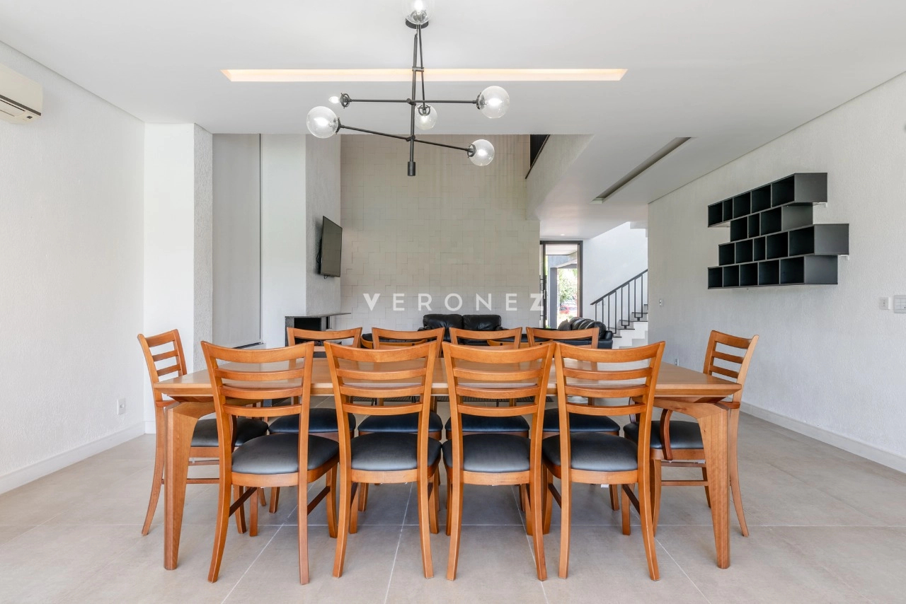 Você pode contar também com hall de entrada, lavabo, amplo living com lareira e que integra a sala de estar à sala de jantar, cozinha em conceito aberto, espaço gourmet com churrasqueira, área de serviço/lavanderia independente, dependência de empregada completa (com banheiro), amplo jardim com piscina e uma linda vista para o lago e campo de golfe, além de 4 vagas de garagem (duas cobertas).