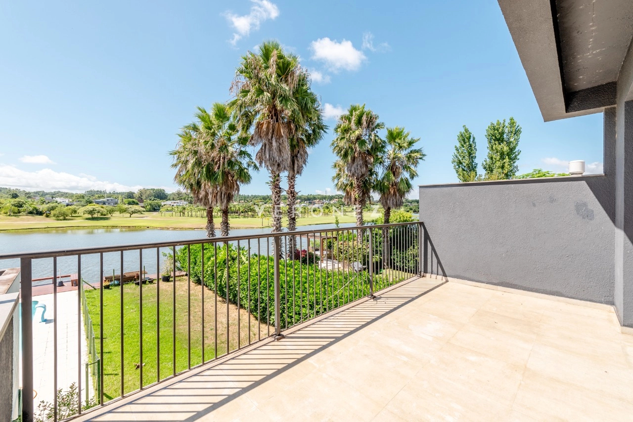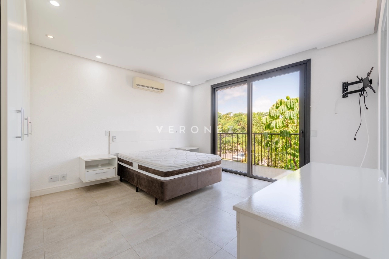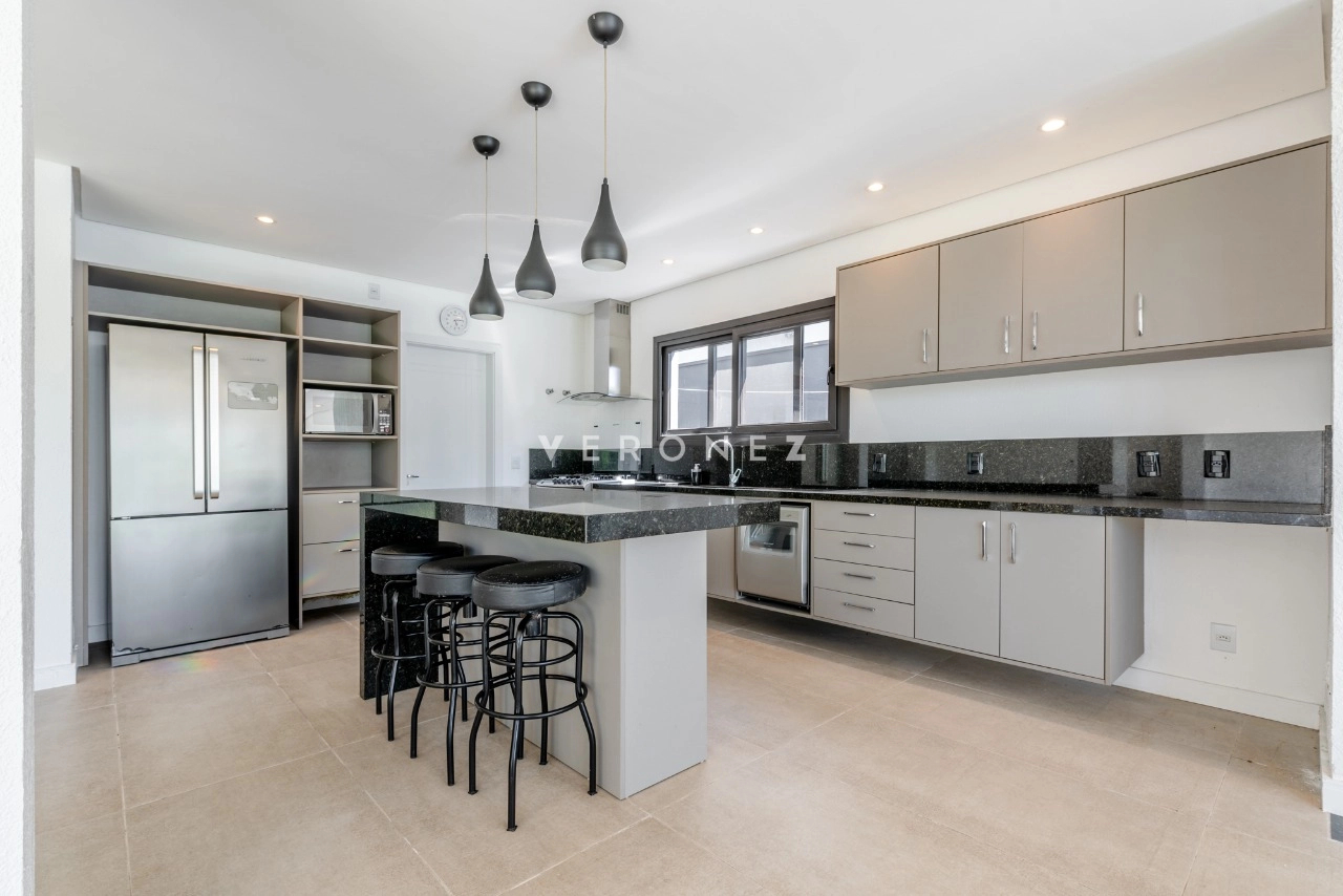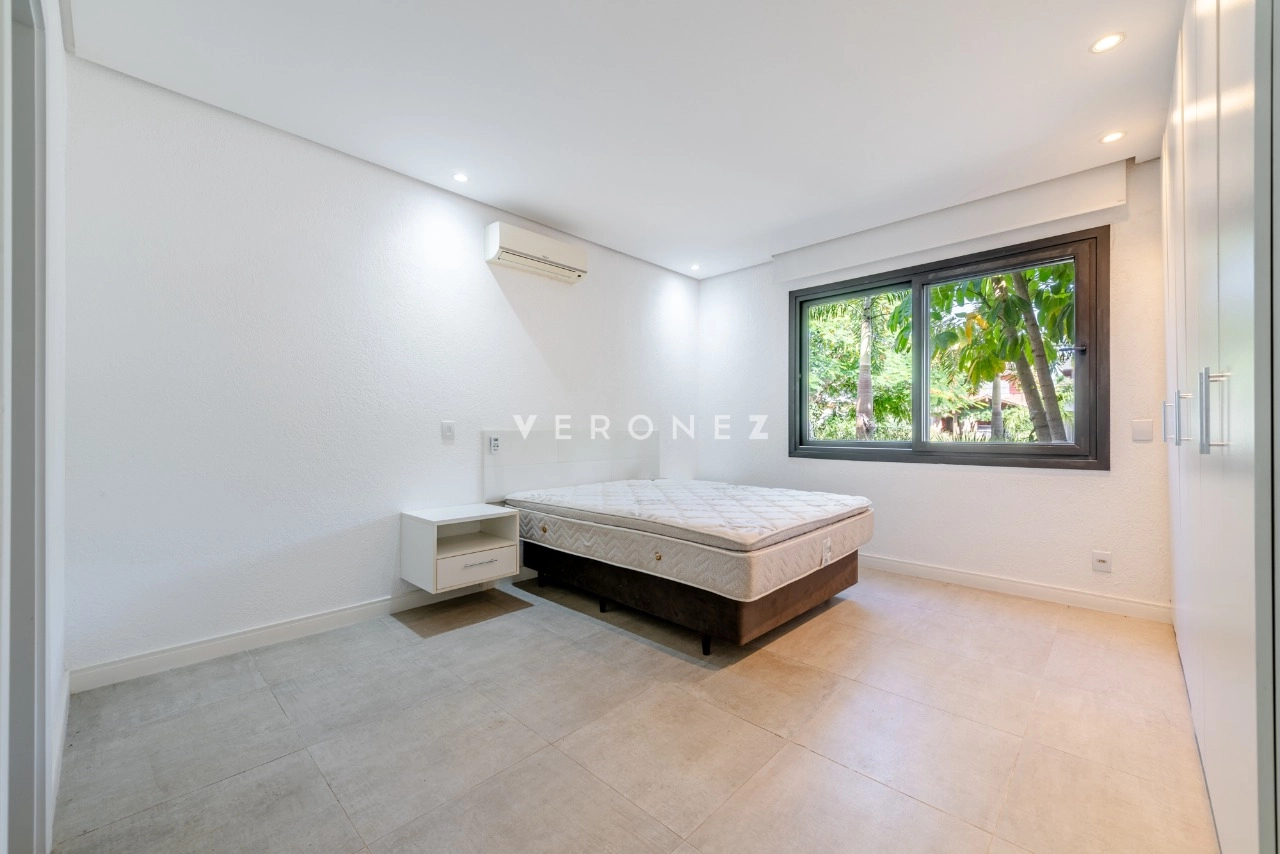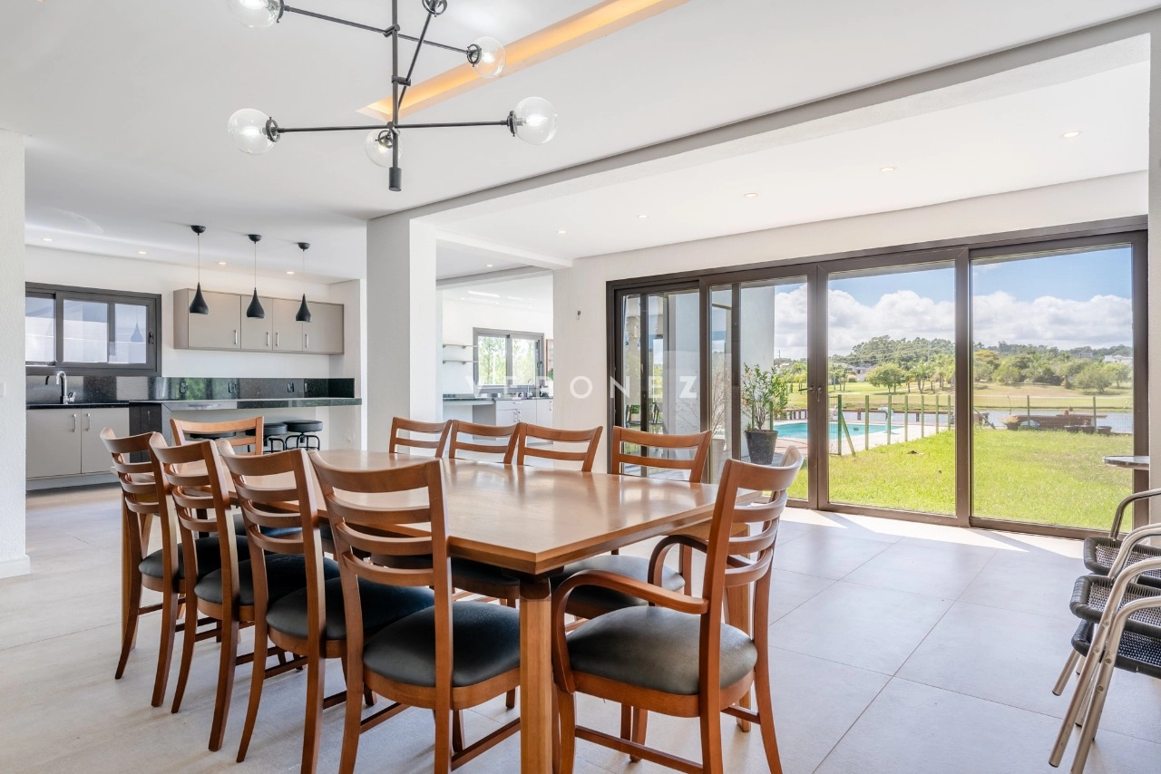 Você pode contar também com hall de entrada, lavabo, amplo living com lareira e que integra a sala de estar à sala de jantar, cozinha em conceito aberto, espaço gourmet com churrasqueira, área de serviço/lavanderia independente, dependência de empregada completa (com banheiro), amplo jardim com piscina e uma linda vista para o lago e campo de golfe, além de 4 vagas de garagem (duas cobertas).
