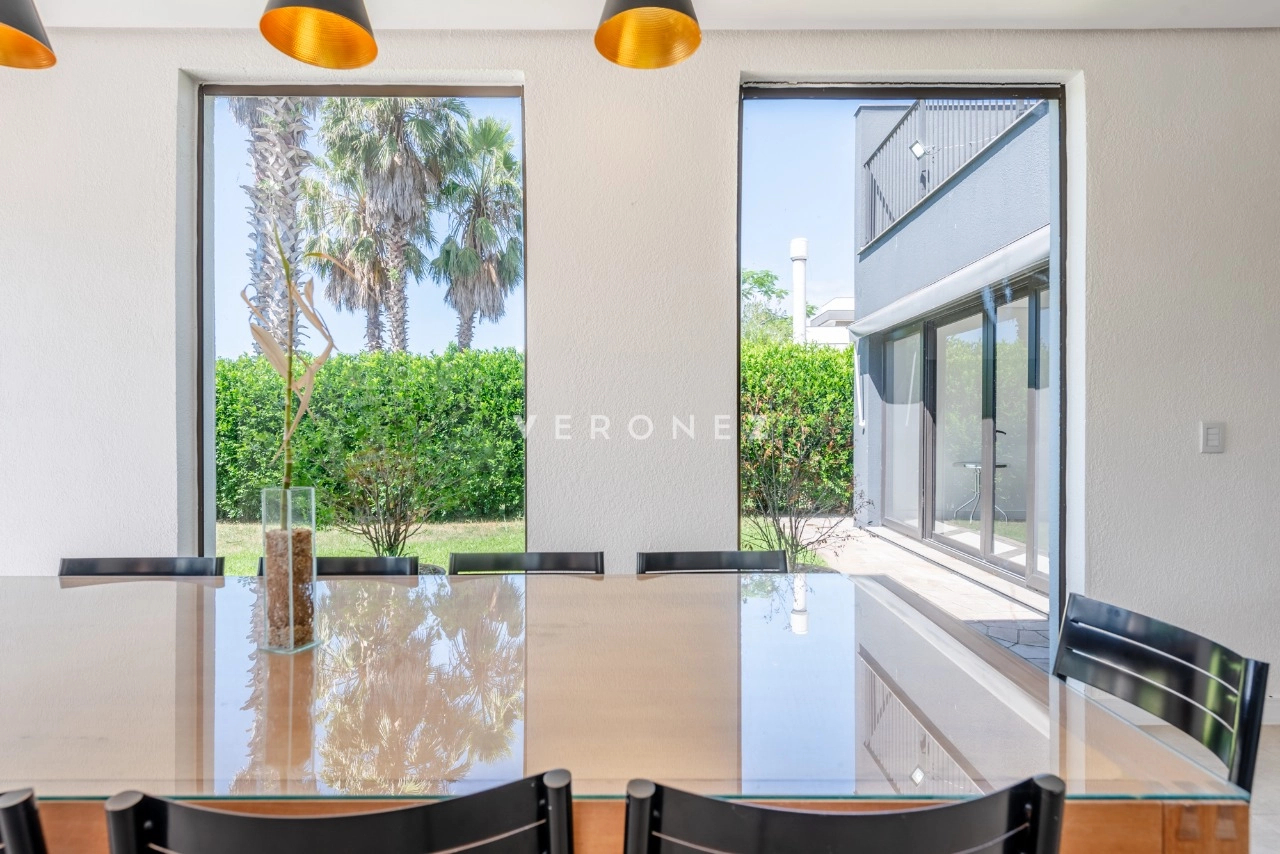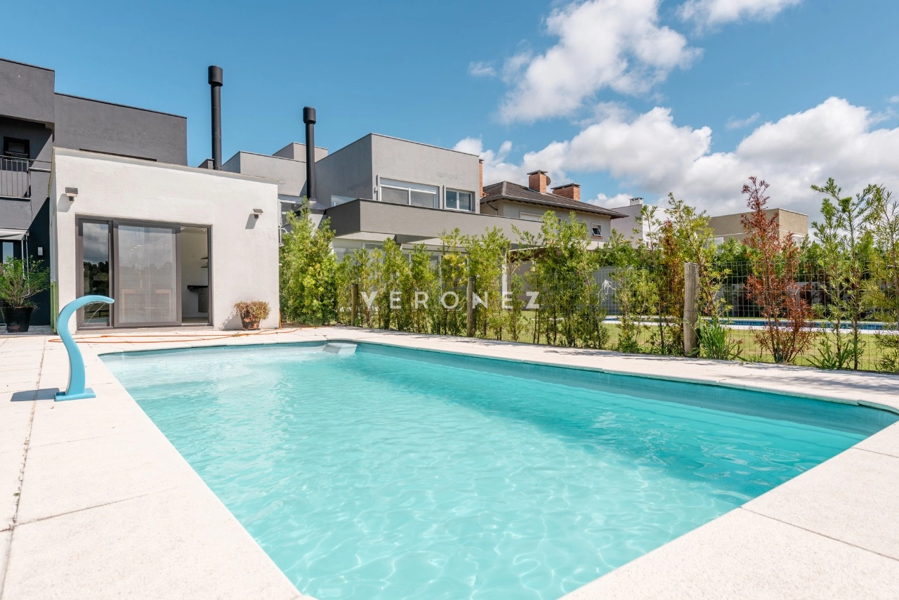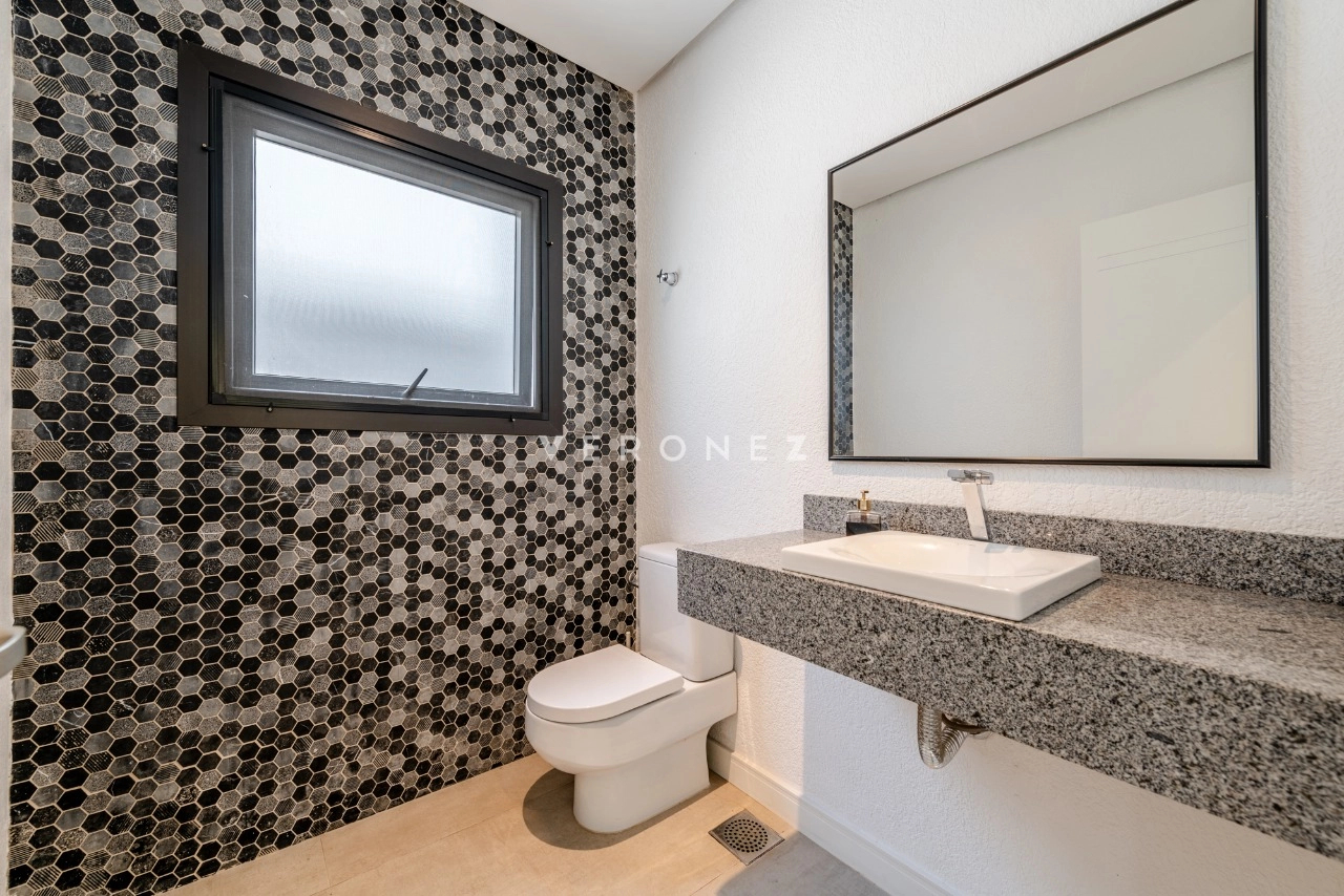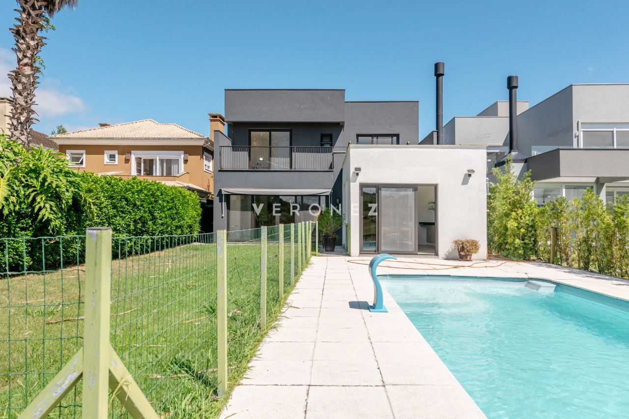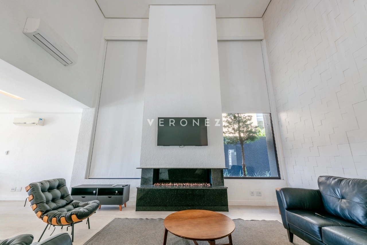 Você pode contar também com hall de entrada, lavabo, amplo living com lareira e que integra a sala de estar à sala de jantar, cozinha em conceito aberto, espaço gourmet com churrasqueira, área de serviço/lavanderia independente, dependência de empregada completa (com banheiro), amplo jardim com piscina e uma linda vista para o lago e campo de golfe, além de 4 vagas de garagem (duas cobertas).