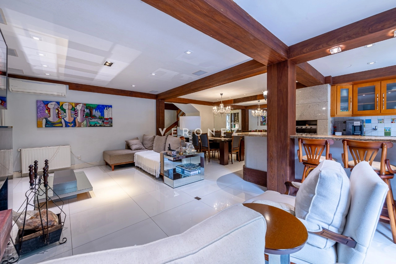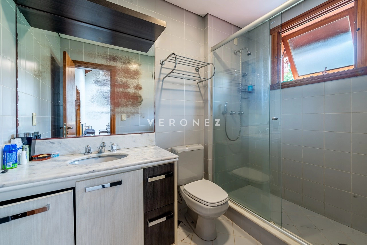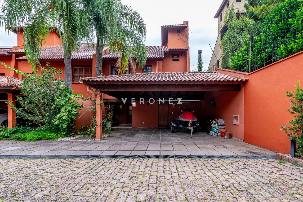 Casa semimobiliada com 375m², 5 dormitórios, 3 suítes e 4 vagas em condomínio fechado no bairro Três Figueiras em Porto Alegre.
