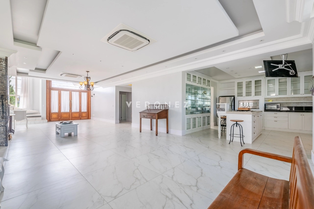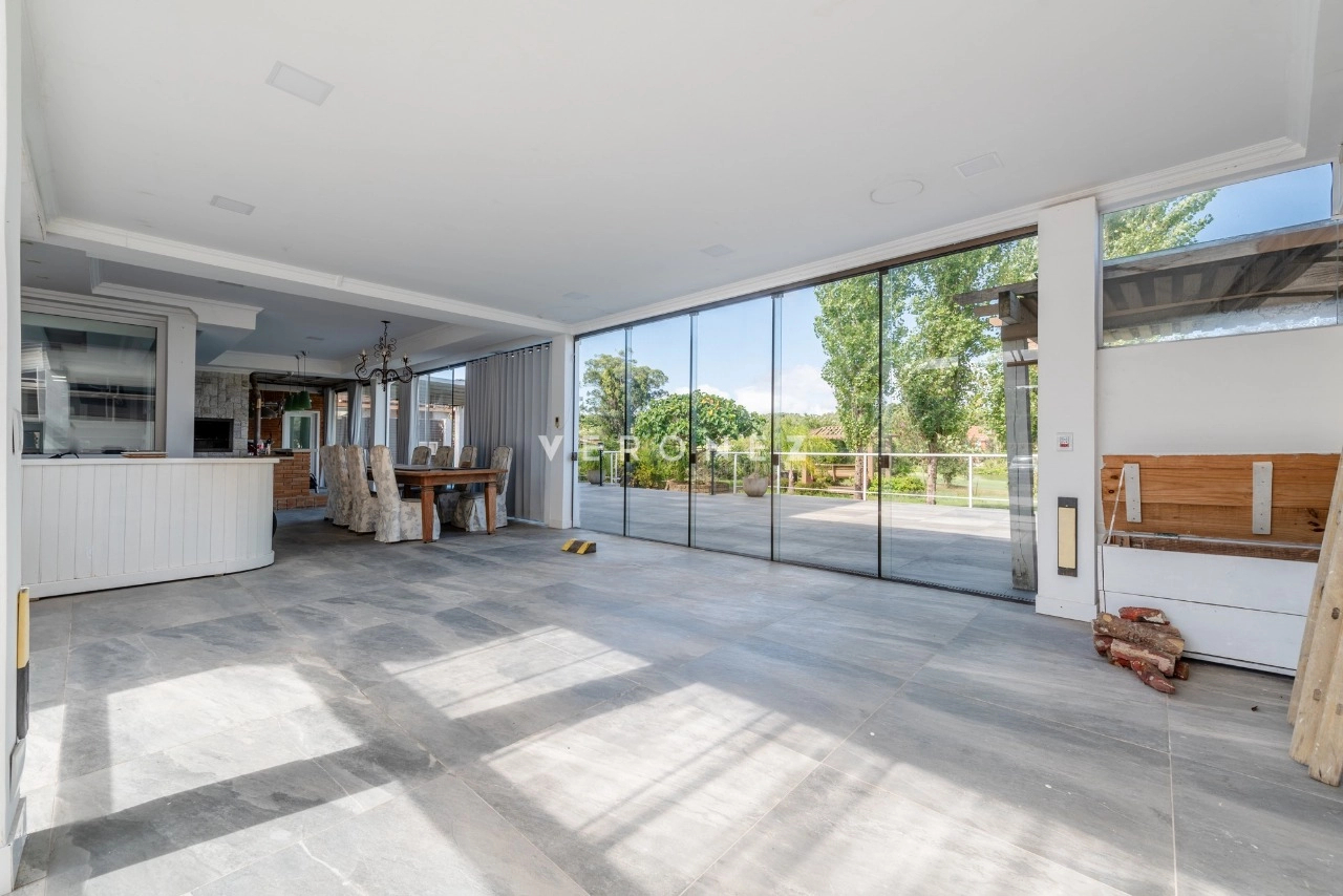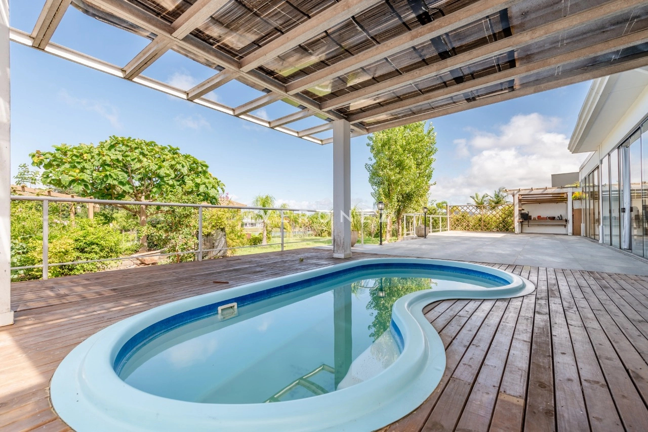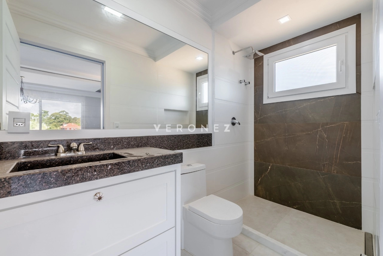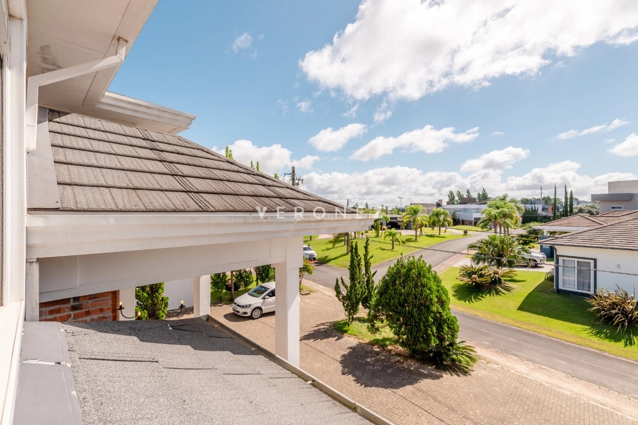 Hall de entrada com pé direito duplo, gabinete com banheiro, living com 3 ambientes e piso em porcelanato. A residência conta com lareira e aquecimento por água circulante em todos os ambientes, proporcionando conforto térmico. O estar íntimo é reservado e separado do living principal. A copa-cozinha é integrada, finamente semi-mobiliada, com móveis fixos e eletros de altíssima qualidade. A área social inclui churrasqueira rotativa, forno de pizza, fogão à querosene, e acesso direto à piscina aquecida e ao jardim com irrigação automatizada, abastecido diretamente pelo lago. O imóvel ainda conta com depósito e dependência completa de funcionários.