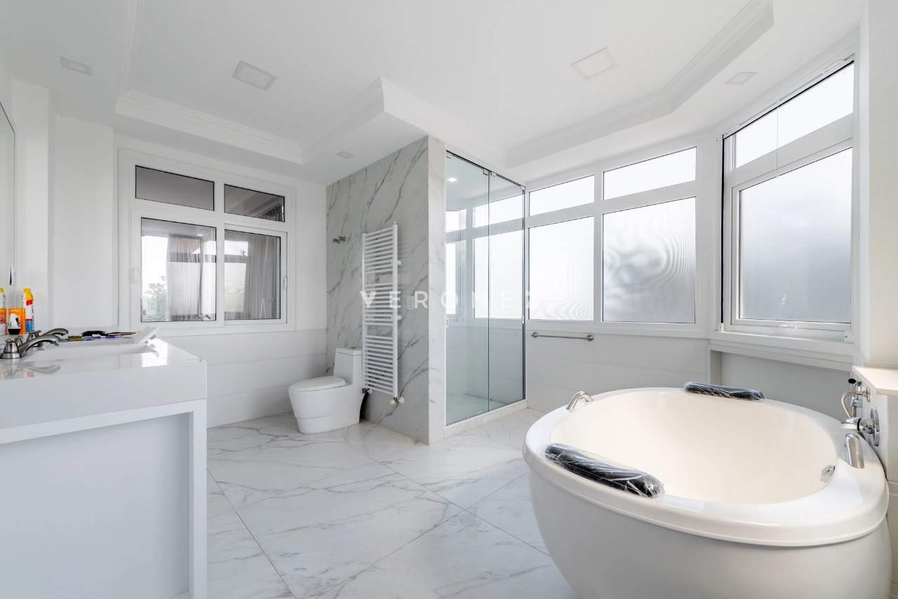 Composto por 3 suítes, sendo a suíte master de 100 m², com closet, banheira para duas pessoas e toalheiros aquecidos com sistema circulante. O piso aquecido está presente em todos os ambientes, garantindo conforto e sofisticação.