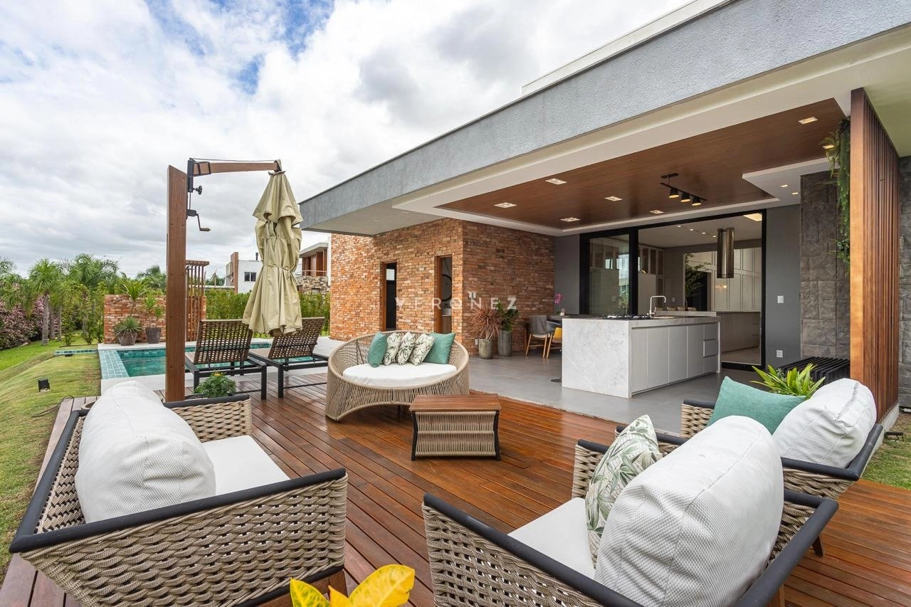 Casa mobiliada com 330 m² privativos no condomínio Ponta da Figueira Marina, aconchegante e funcional, possui 4 suítes, espaçosa sala para 3 ambientes com pé direito estendido, lareira ecológica, lavabo e cozinha integrada ao living. No lado externo, além de um maravilhoso espaço gourmet, possui pátio plano com piscina, banheiro completo e área de serviço.