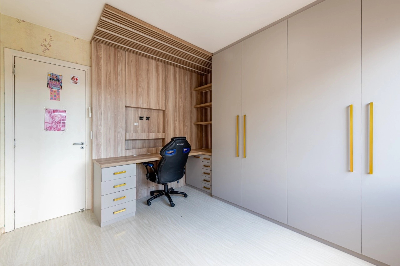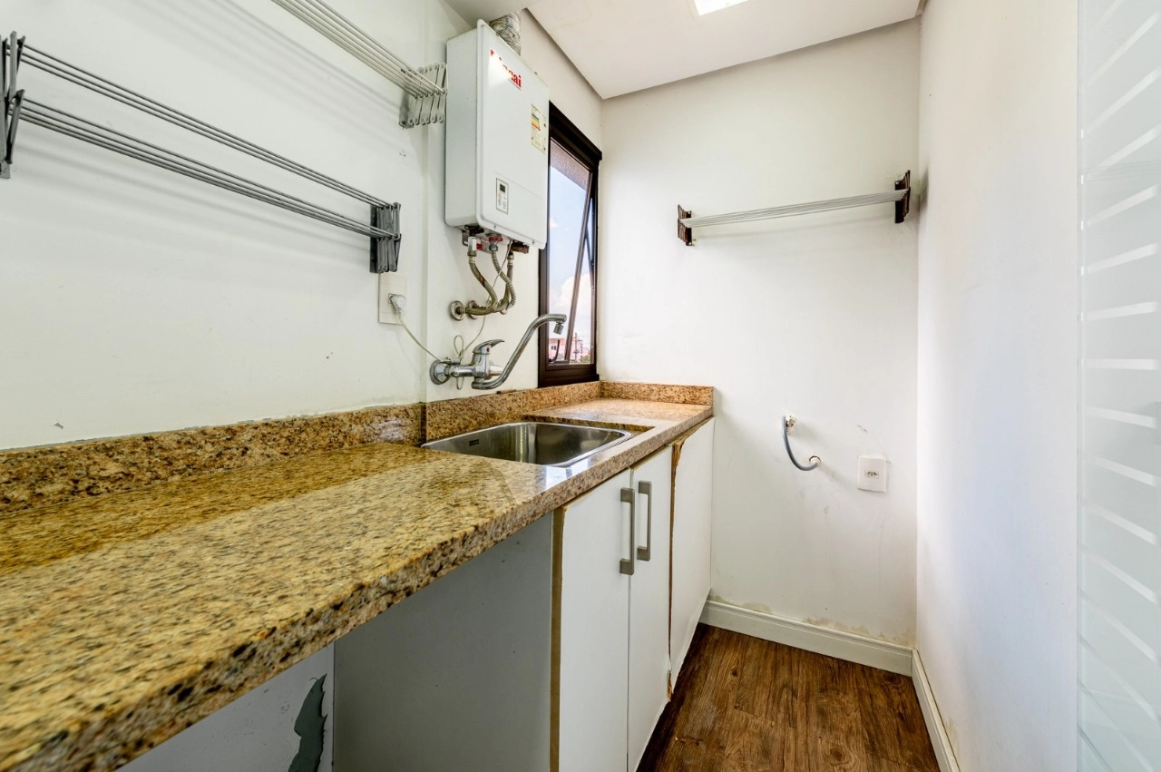 O imóvel conta com um living generoso para 3 ambientes com lareira, ideal para momentos aconchegantes, além de um banheiro social e gabinete. A cozinha, equipada com churrasqueira, é perfeita para quem adora cozinhar e receber amigos. A área de serviço é separada, garantindo praticidade no dia a dia. Conta também com a porta de entrada blindada.