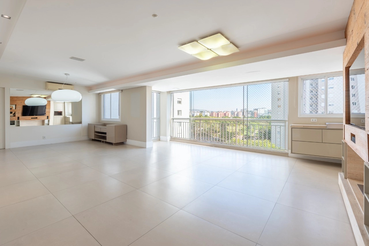 Apartamento com 3 dormitórios suítes, living para 3 ambientes com lareira, sacada integrada com churrasqueira, cozinha mobiliada, área de serviço separada com entrada independente. Semimobiliado, excelente iluminação com sistema automatizado e ventilação natural