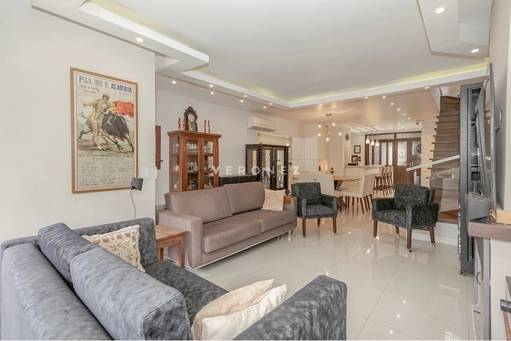 Realize seus sonhos nesta bela casa à venda em ótima condição no coração da área residencial de Chácara das Pedras, Porto Alegre. Com localização privilegiada na Rua Cananéia, a apenas 100 metros da Av. Nilo Peçanha, essa residência contemporânea oferece tudo o que busca em conforto e conveniência. São 349 metros quadrados de área construída distribuídos em três andares, perfeita para acomodar sua família com espaços amplos e bem planejados. A casa possui 3 suítes, 5 banheiros, tornando-a ideal para quem deseja privacidade e conforto máximo. Destacam-se características incríveis como um jardim, lareira aconchegante, home theater para momentos de lazer e relaxamento, além de um charmoso sótão. A cozinha, grande e bem equipada, conta com armários planejados e espaço para lava-louças, facilitando o dia a dia dos moradores. Equipada para o futuro, a casa tem cabeamento estruturado e conexão à internet. A segurança é garantida com circuito de segurança, interfone, além de vagas em garagem coberta para 4 veículos, com porta automática, garantindo praticidade e segurança ao entrar e sair do lar. A propriedade possui ainda registro de gás e água individuais, tornando a gestão dos serviços utilitários mais eficaz. Possui também preparo de laje para instalação de piscina. Próximo a escolas, faculdade, igreja e apenas 5 minutos do Shopping Iguatemi, Viva Open Mall, Bourbon Zaffari Country e parque Germânia, poucos minutos do aeroporto e hospitais, esta é uma oportunidade imperdível para quem busca praticidade e qualidade de vida. Construída em novembro de 1998, é a casa que vai superar suas expectativas. Venha conhecê-la pessoalmente e se encante! Preço e disponibilidade do imóvel sujeitos a alteração sem aviso prévio.