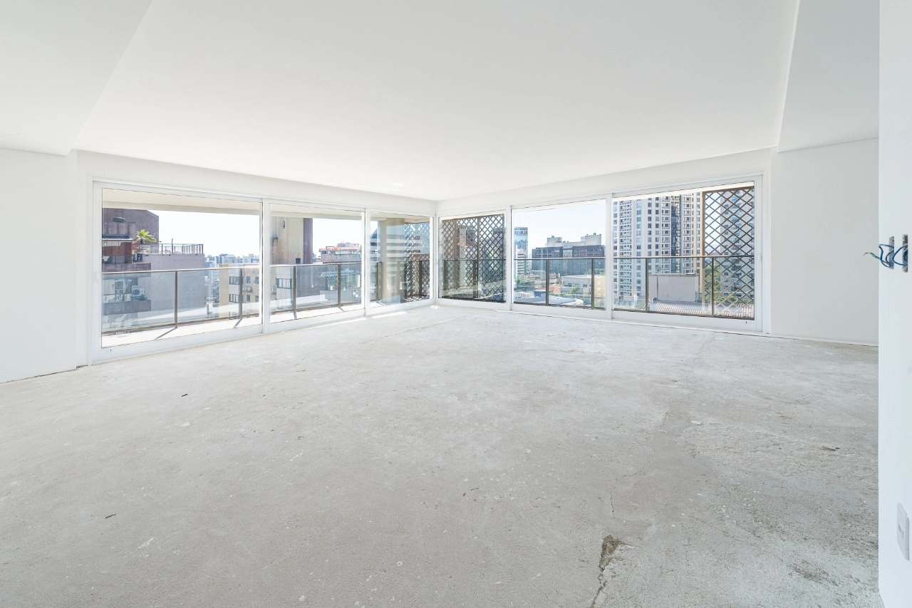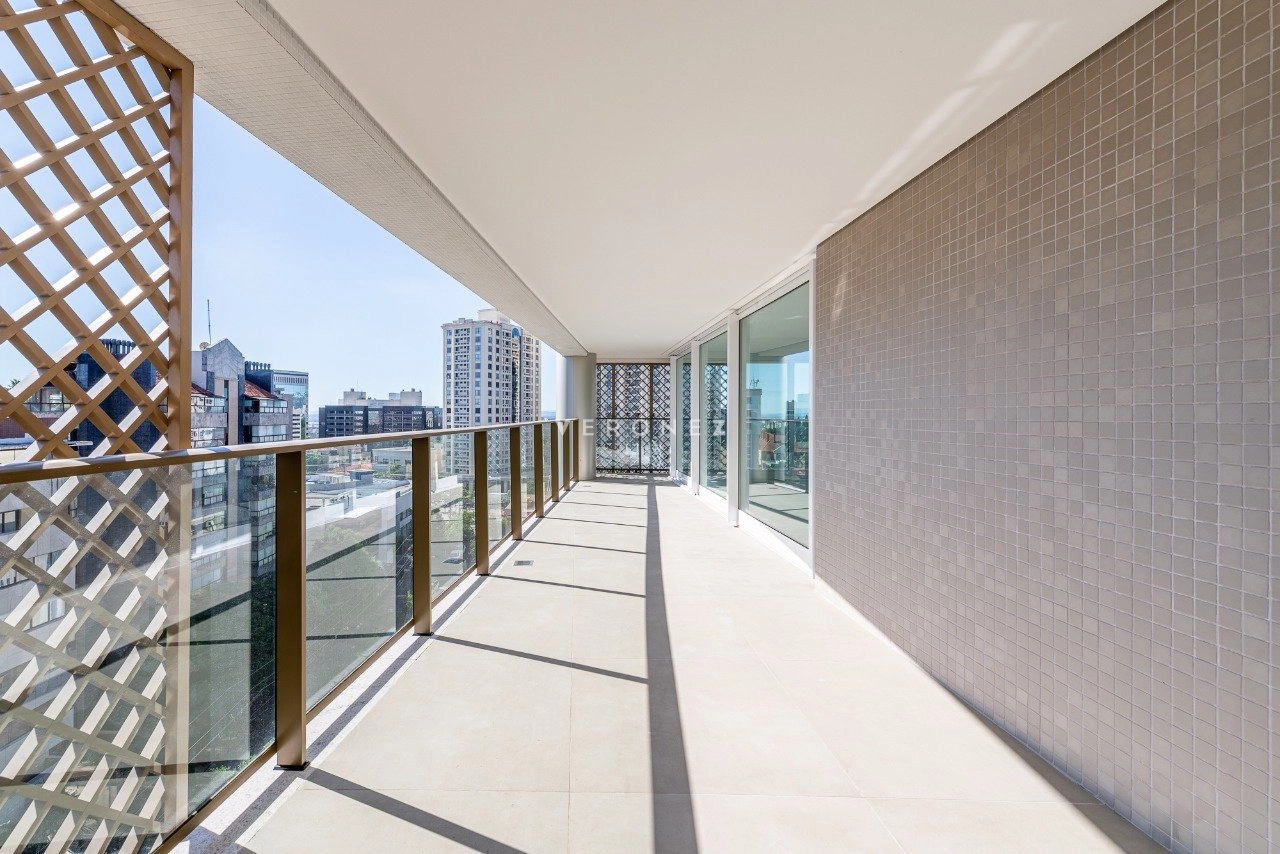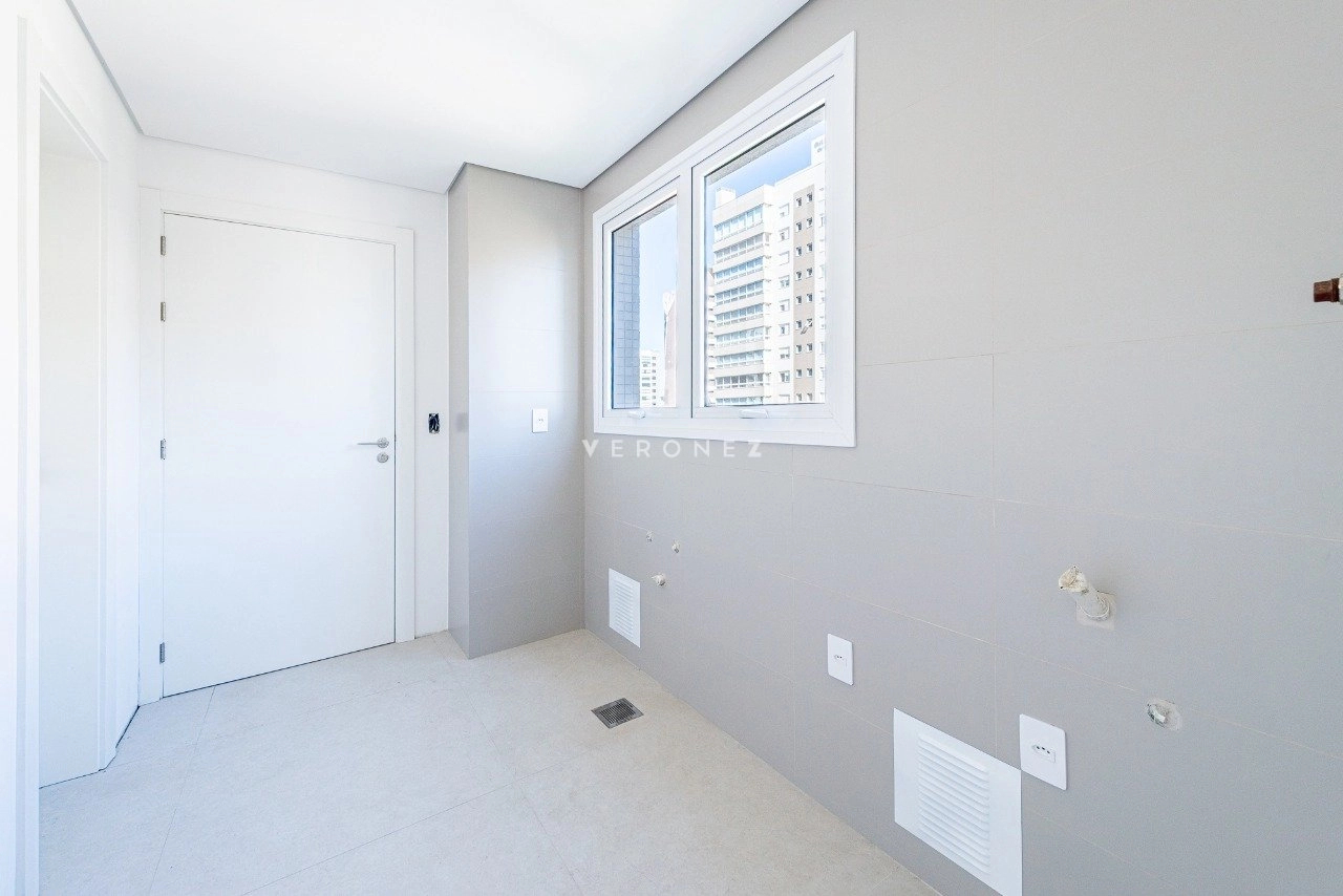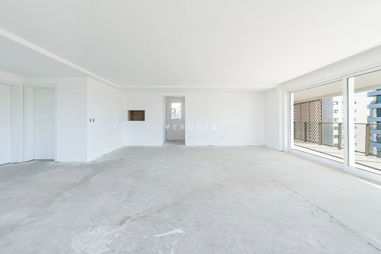 Apartamento novo com 221 m², 3 suítes, living espaçoso com amplas esquadrias e sacada, espaço churrasco integrado ao living, lavabo, escritório, cozinha, área de serviço separada com banheiro auxiliar e 3 vagas individuais de garagem.