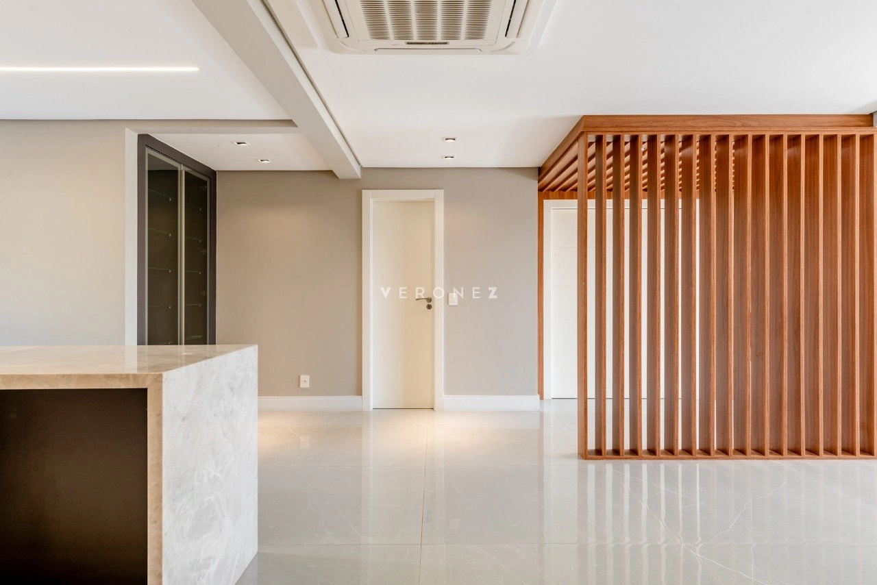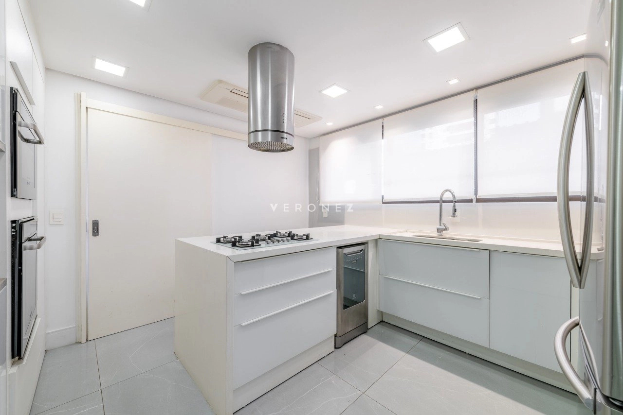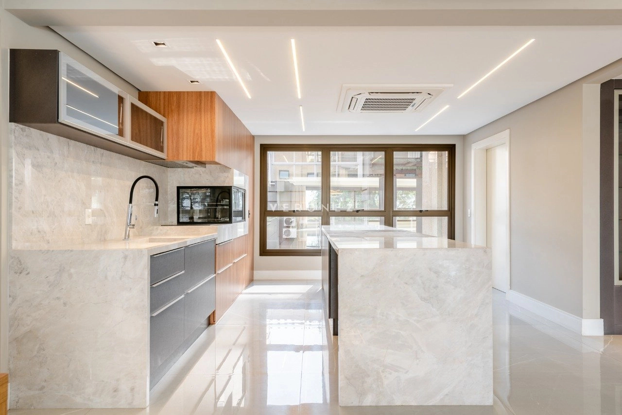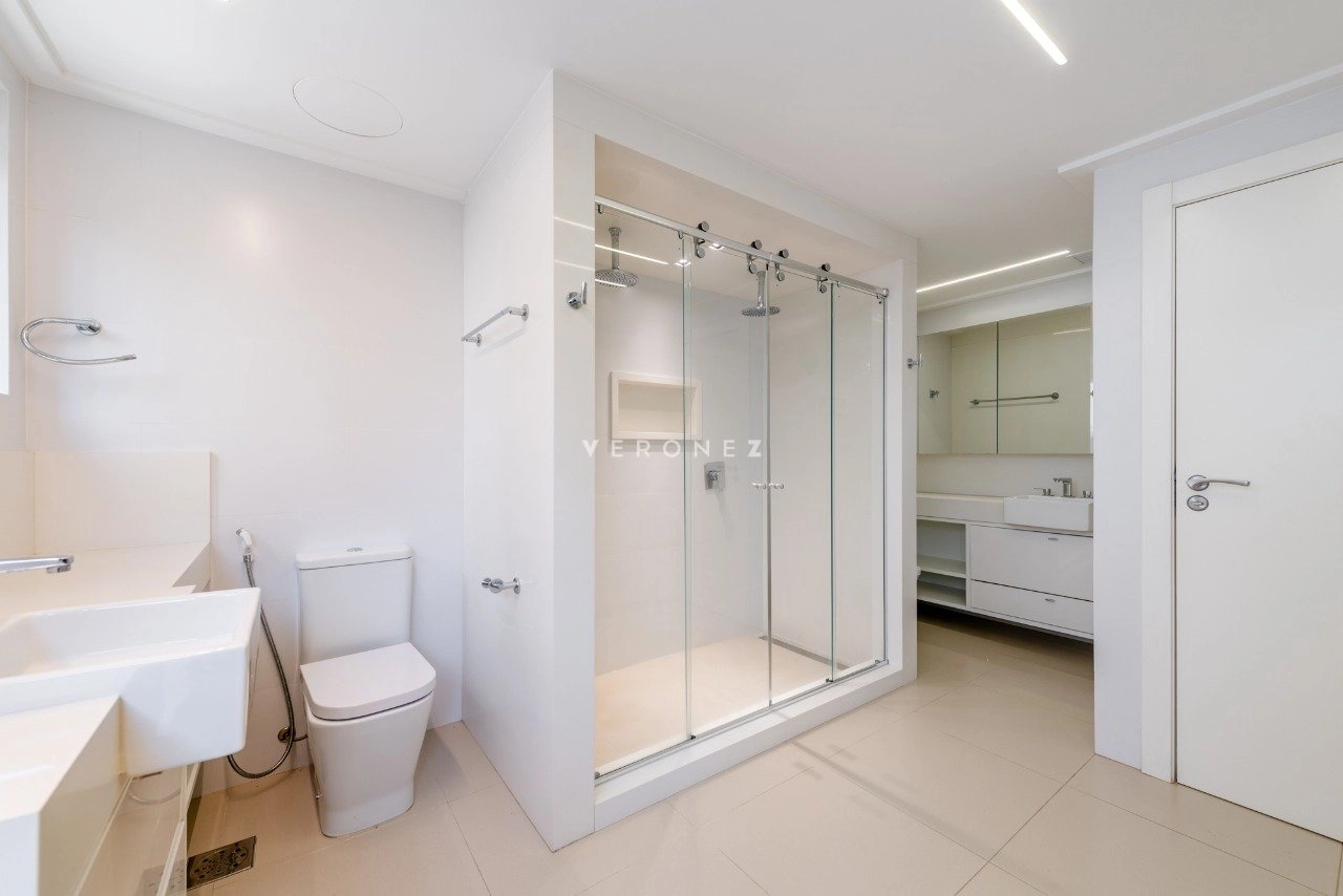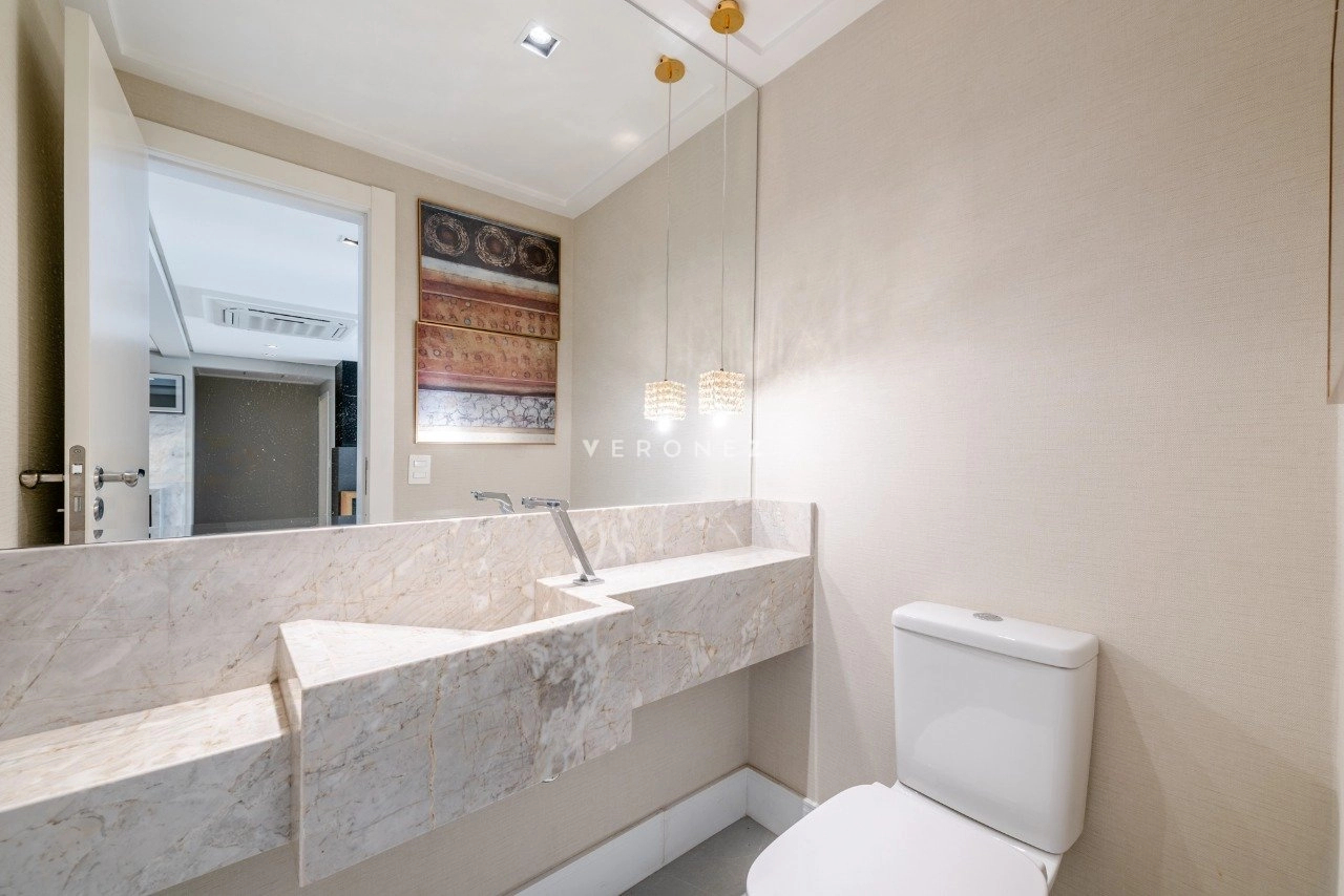 Apartamento semi mobiliado de 290 m², 3 suítes, sendo 1 master com closet, hall privativo, living para 3 ambientes com lavabo, lareira, espaço gourmet, sacada com churrasqueira, copa-cozinha, área de serviço com entrada independente, dependencia completa, 4 vagas de garagem e 2 depósitos.