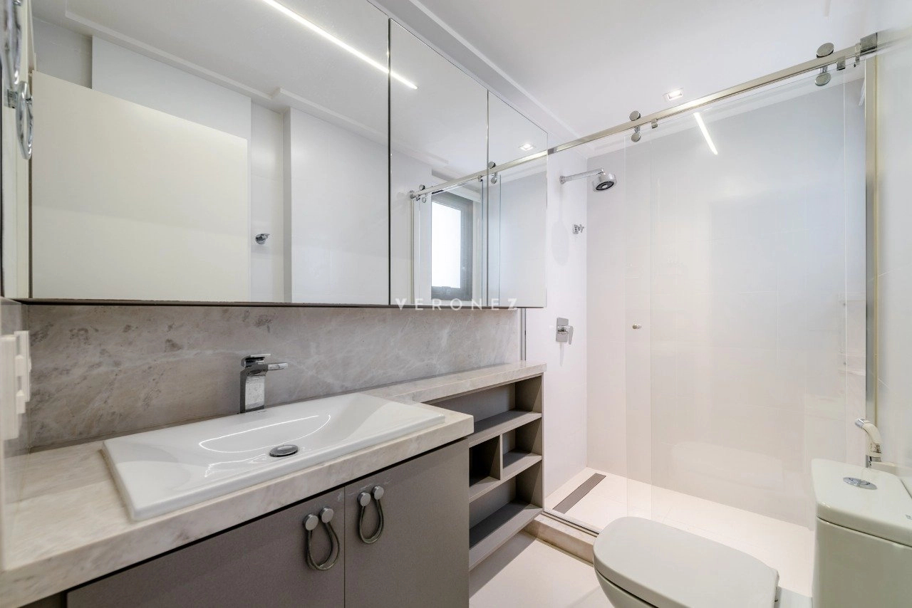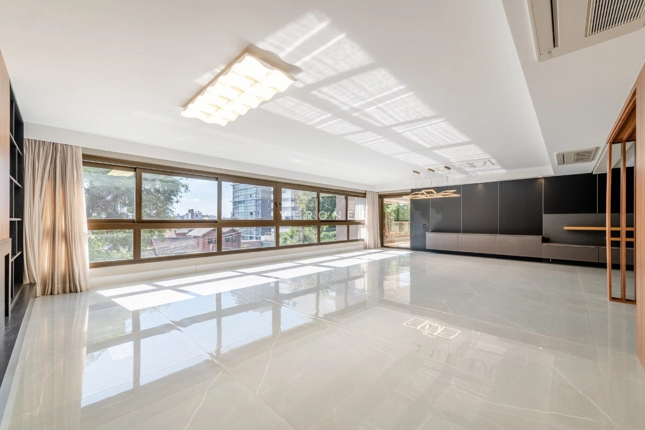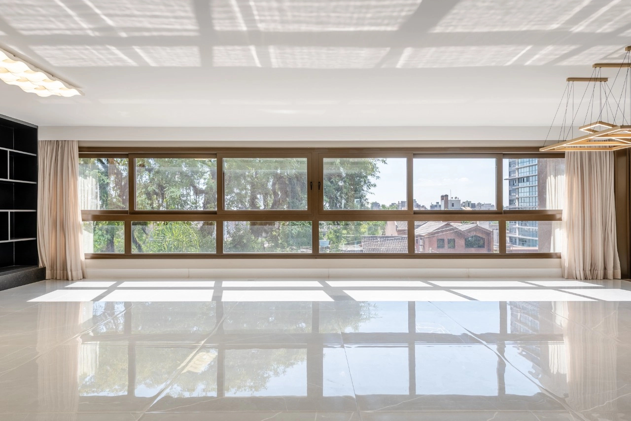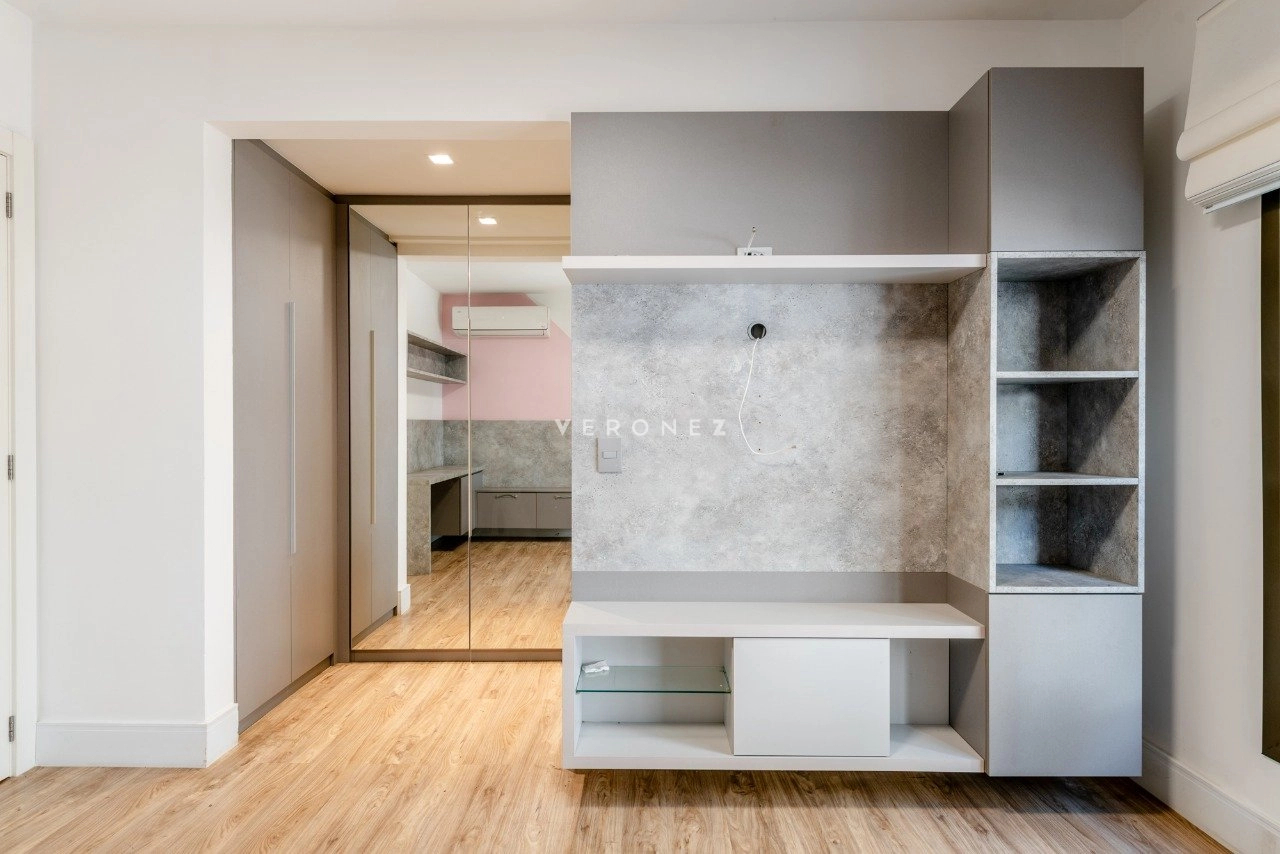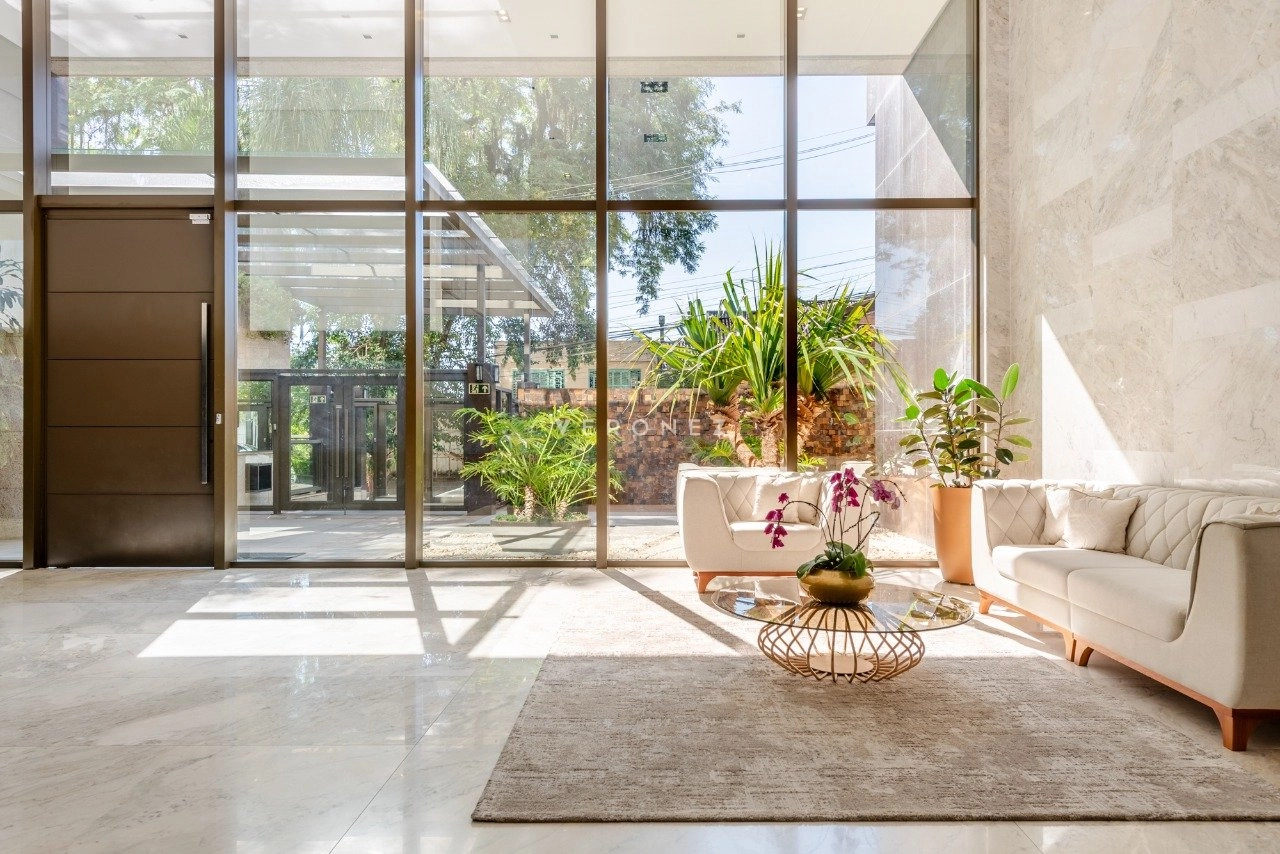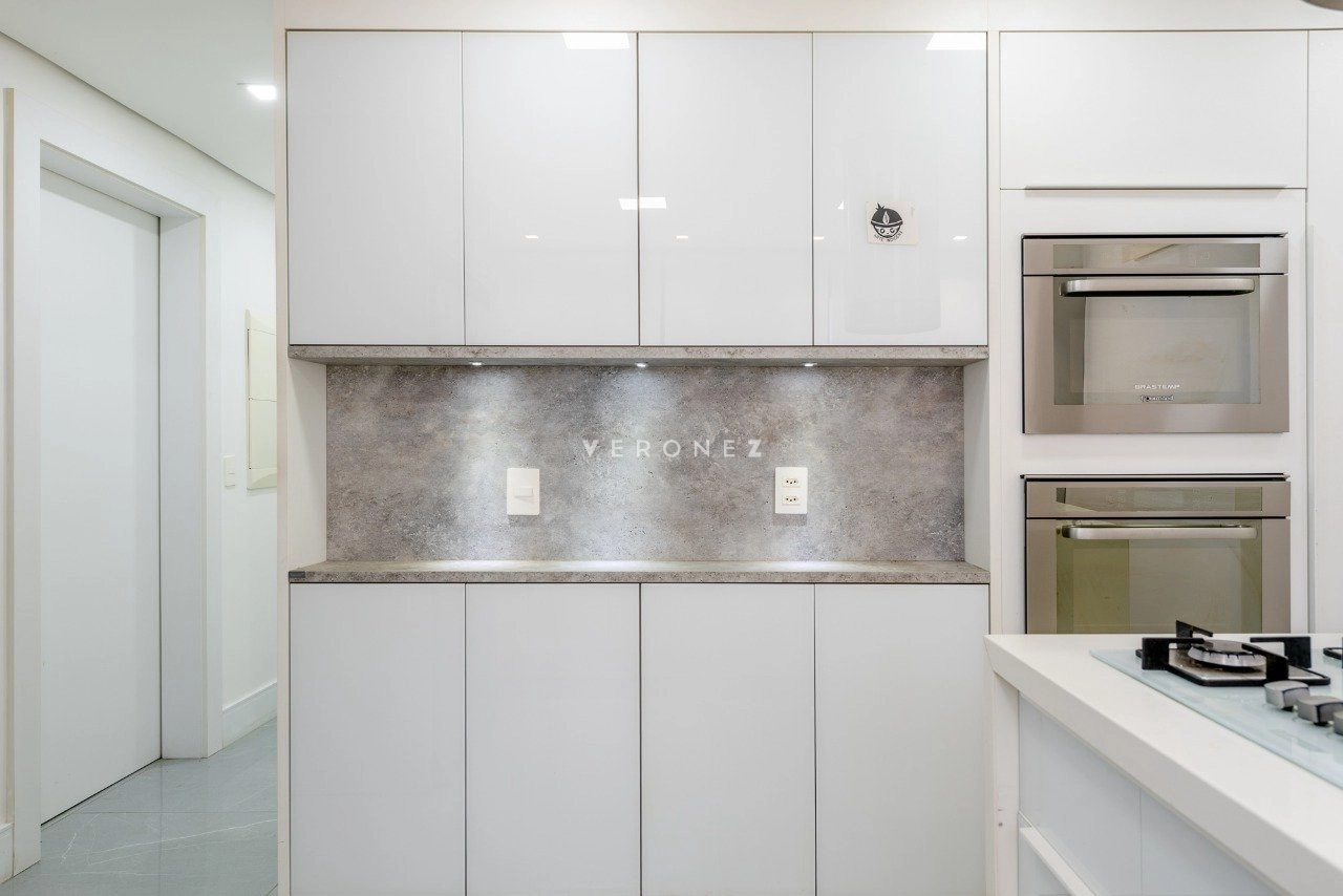 Apartamento semi mobiliado de 290 m², 3 suítes, sendo 1 master com closet, hall privativo, living para 3 ambientes com lavabo, lareira, espaço gourmet, sacada com churrasqueira, copa-cozinha, área de serviço com entrada independente, dependencia completa, 4 vagas de garagem e 2 depósitos.