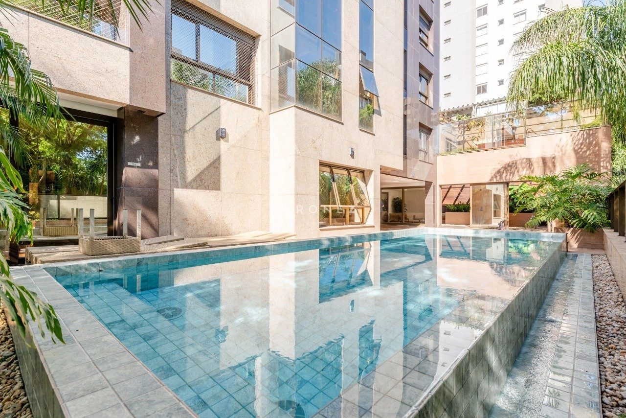 Alto Padrão no coração do Mont Serrat; fachada em granito e pele de vidro; 2 unidades por andar; apartamentos com 290 m², 459 m² com terraço, 2 coberturas duplex de 617 m² privativos; Infraestrutura completa e equipada, portaria 24 horas, gerador de emergência, salão de festas com lounge e jardim, pergolado, parilla, piscina coberta aquecida, piscina externa aquecida, fitness, spa, deck com bancos, estar mamãe e bebê, espaço infantil, playground, mezanino com salão de jogos e gourmeteria.