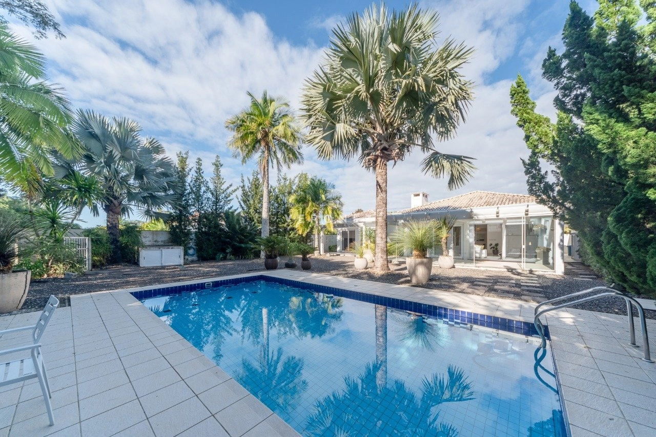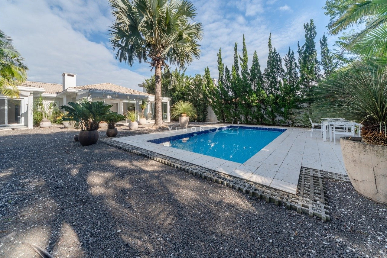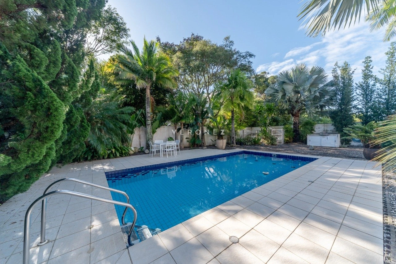 Amplo living com 2 ambientes, lareira, lavabo. Living integrado com área de comtemplação, pátio com piscina e belo paisagismo. Canil. Telhado reformado recentemente.