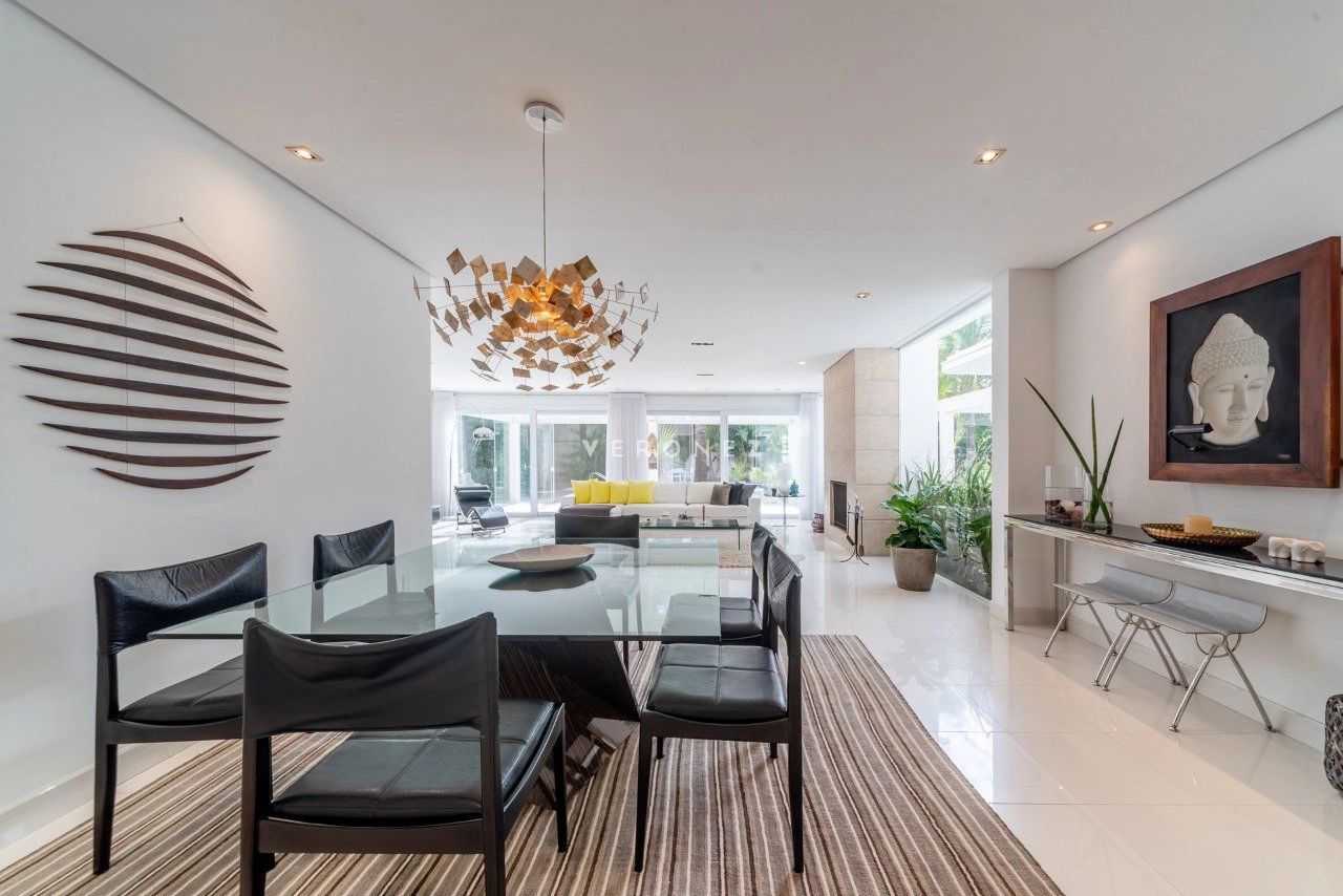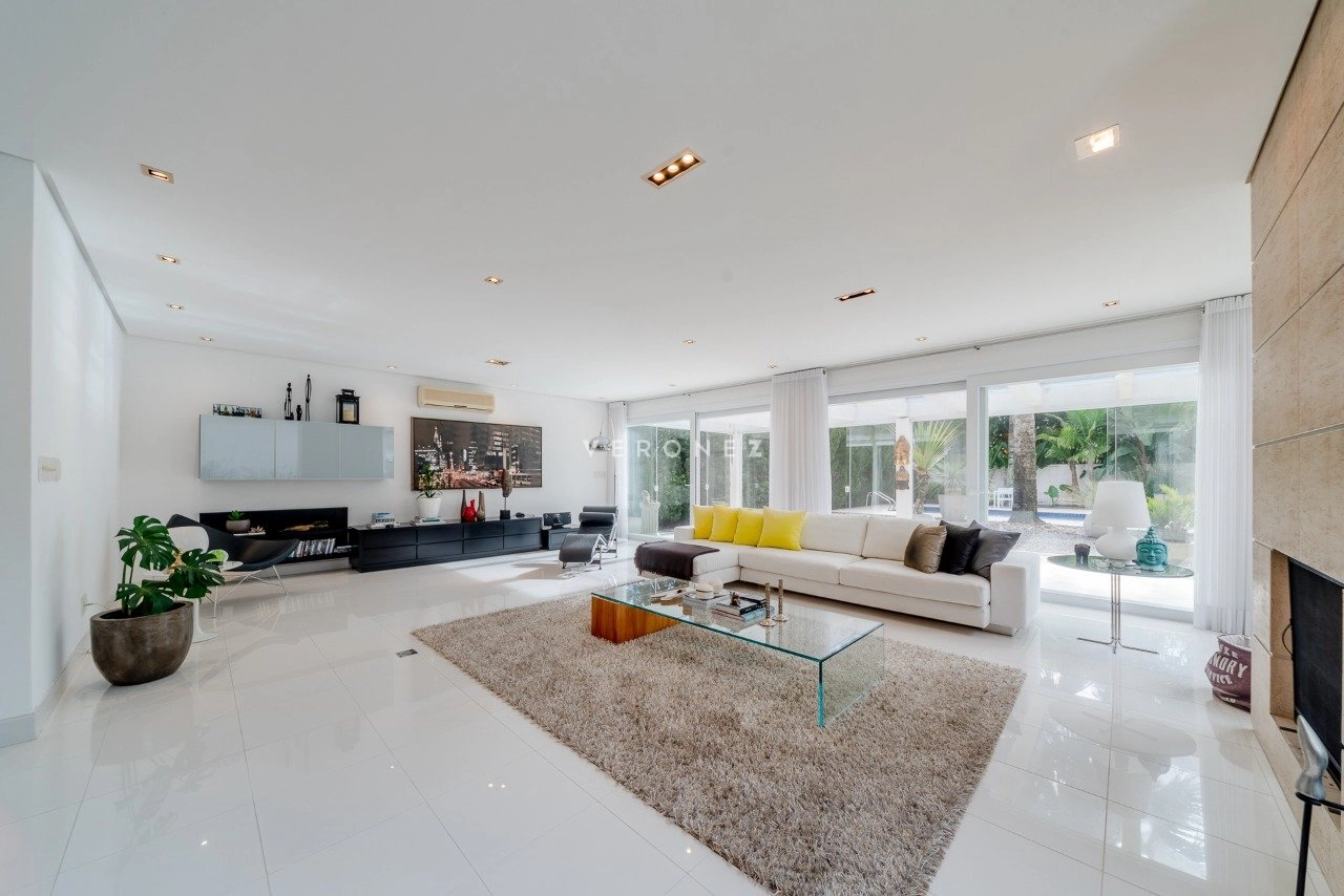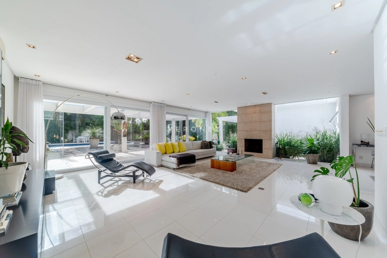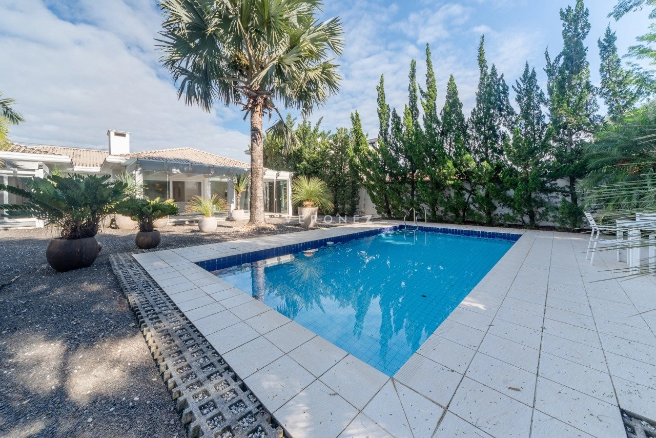 Amplo living com 2 ambientes, lareira, lavabo. Living integrado com área de comtemplação, pátio com piscina e belo paisagismo. Canil. Telhado reformado recentemente.