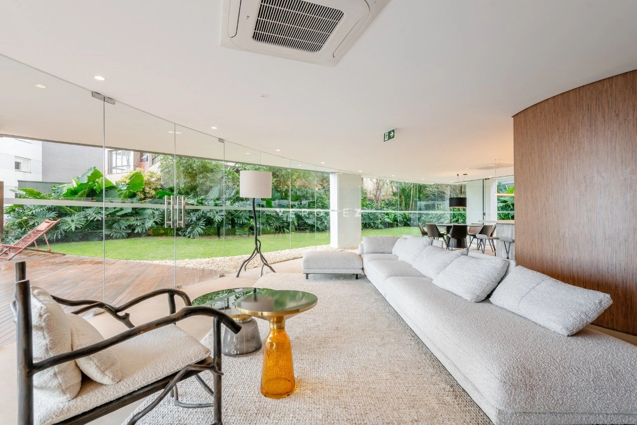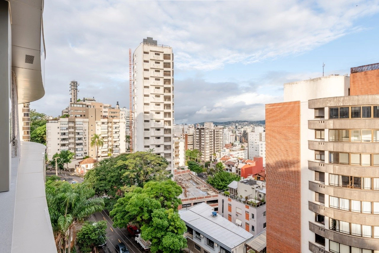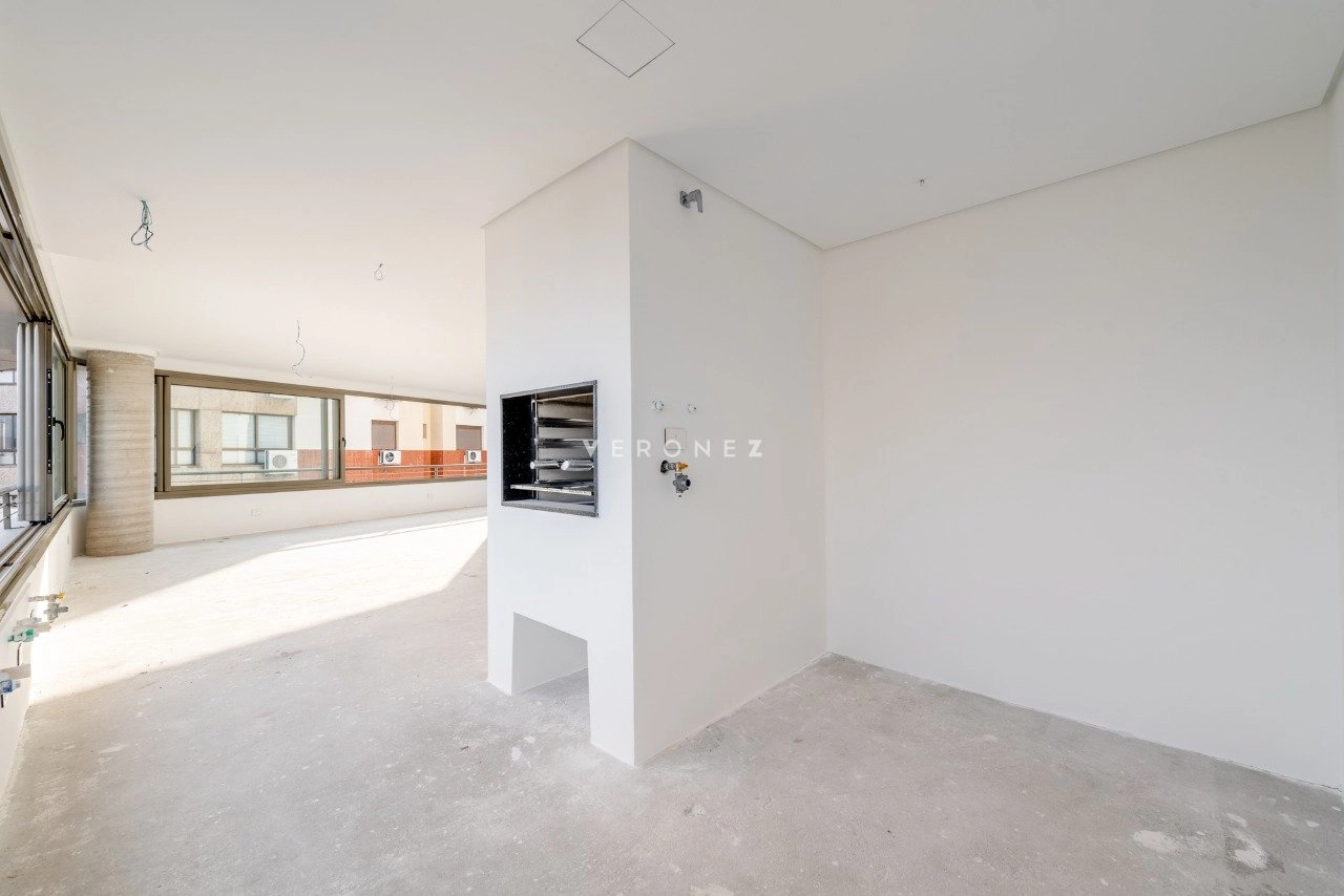 Apartamento novo de 164 m², 3 dormitórios, sendo 3 suítes, living para 3 ambientes, lareira, lavabo, com churrasqueira integrada ao living, copa-cozinha, 3 vagas de garagem. O apartamento em andar alto, excelente posição solar e vista panorâmica através de suas amplas janelas de peitoril baixo e vidros laminados com alto desempenho térmico e acústico, onde se descortina a mais bela paisagem de Porto Alegre.