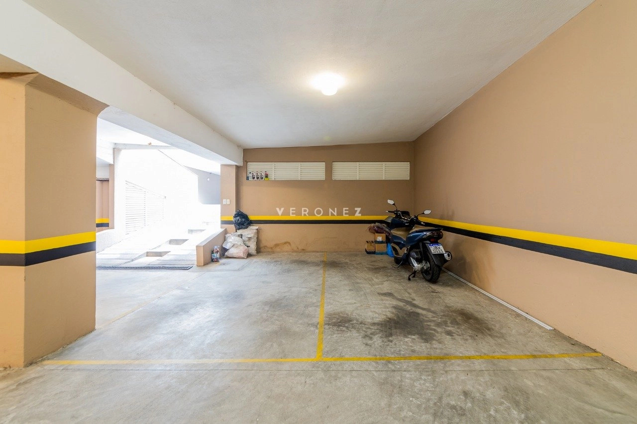 Prédio enxuto com duas vagas de garagem .