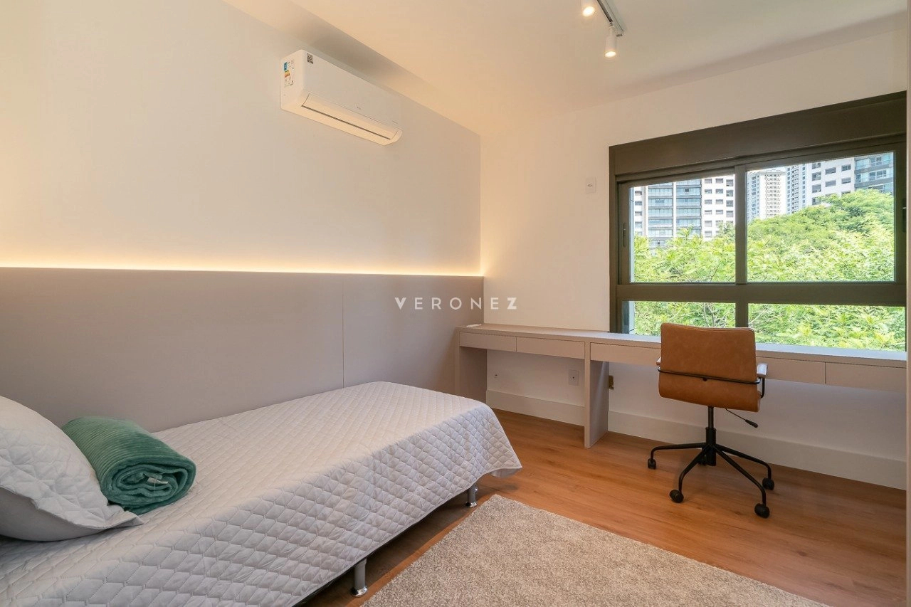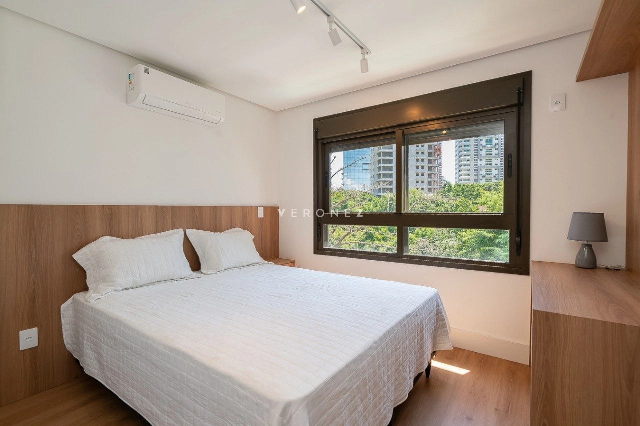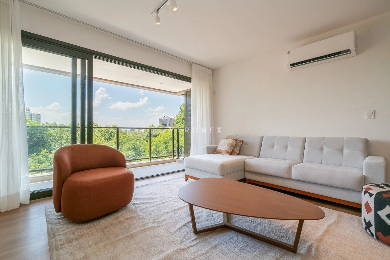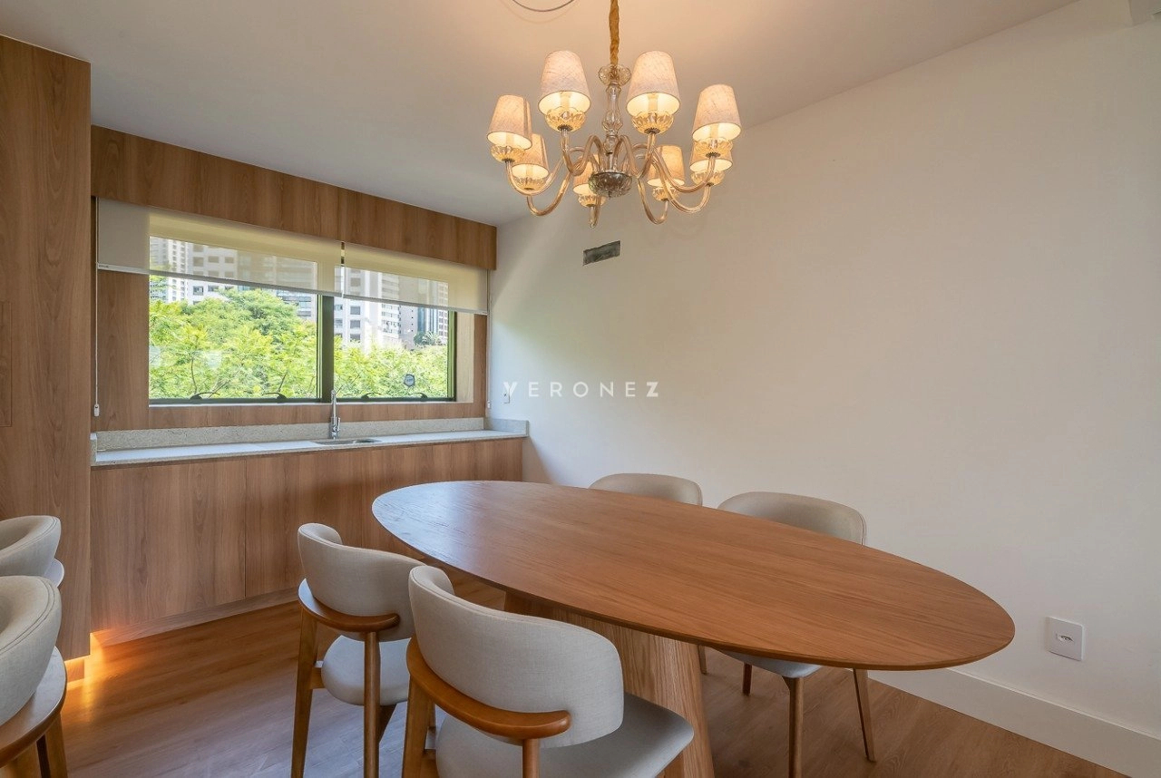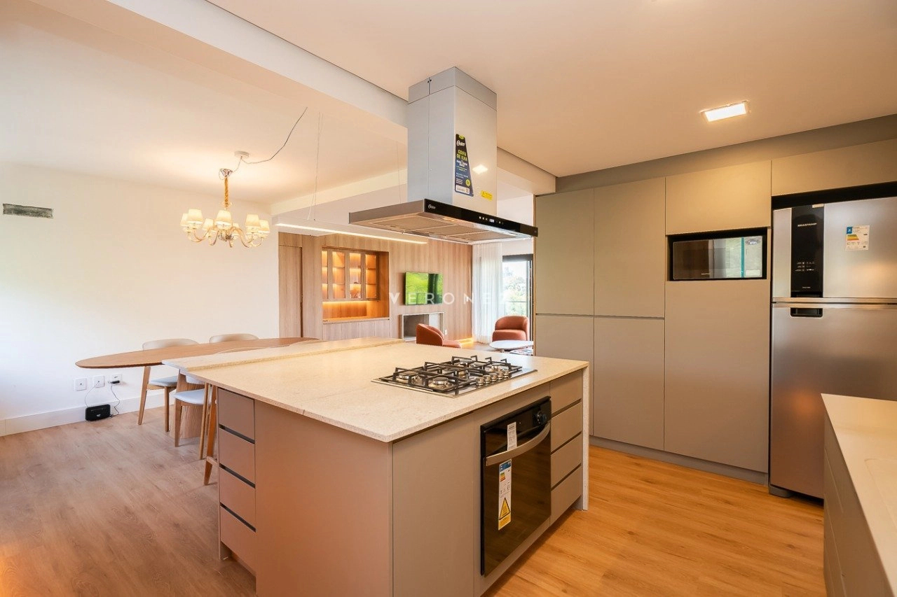 Apartamento mobiliado e decorado, de 154m², 3 dormitórios sendo 3 suítes, living 2 ambientes com lareira, lavabo e sacada, espaço gourmet com churrasqueira, cozinha equipada, área de serviço com entrada independente, banheiro de empregada e 2 vagas de garagem.