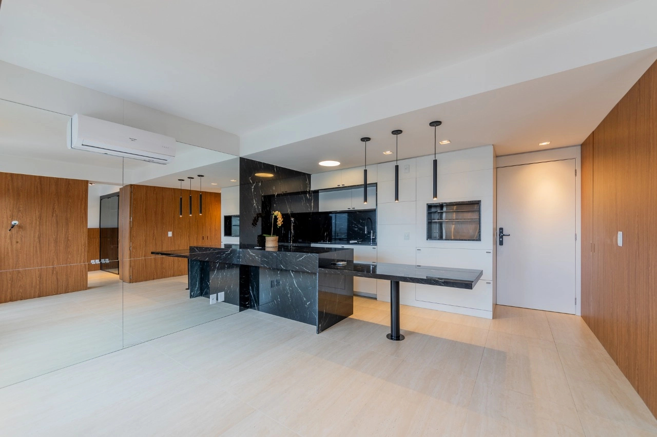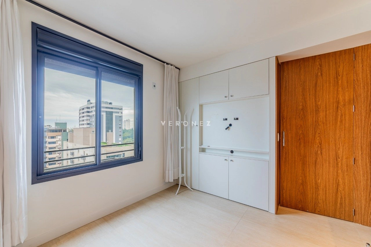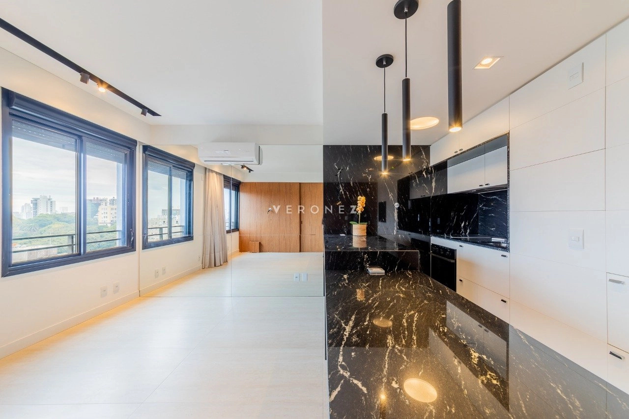 Apartamento com 43m² de área privativa em andar alto, living equipado com split, cozinha americana com móveis sob medida e banheiro social. Na área íntima1 dormitório planejado com closet e split. 1 vaga de garagem coberta escriturada.