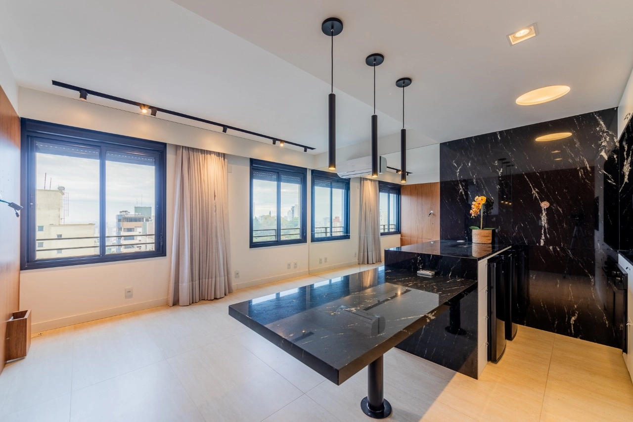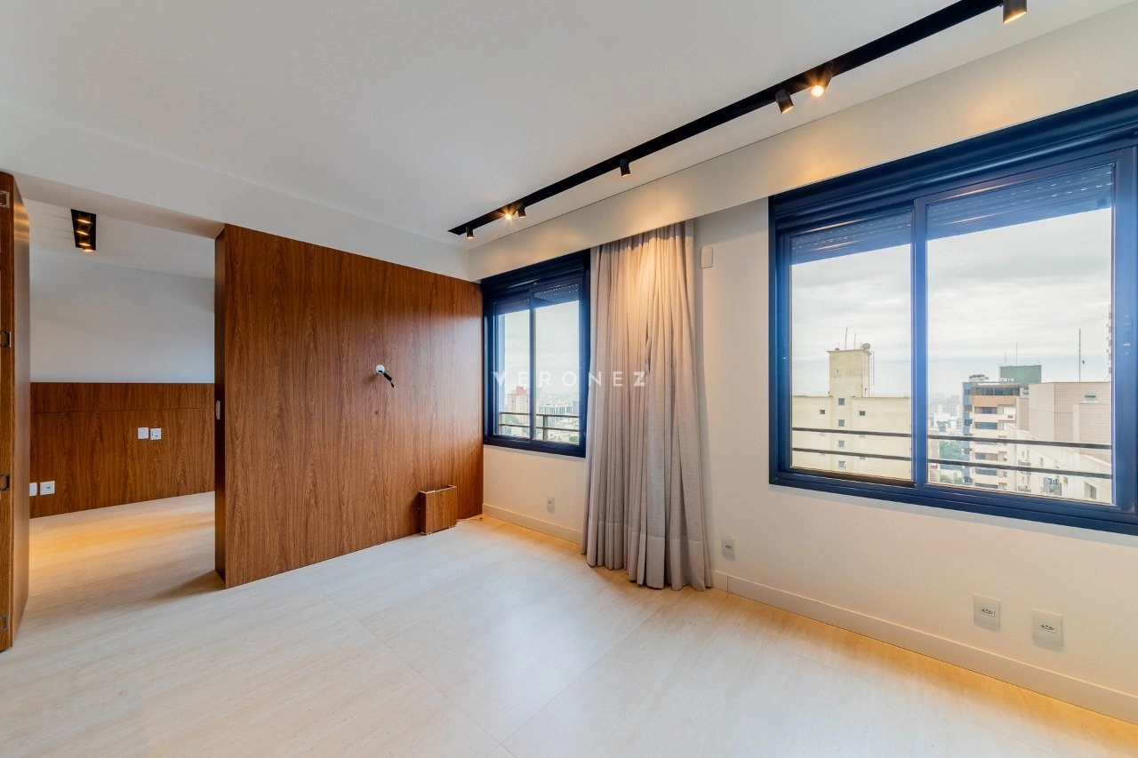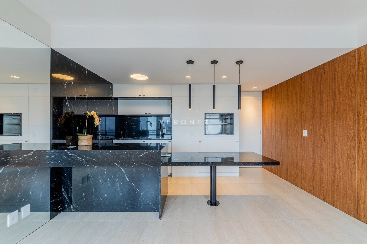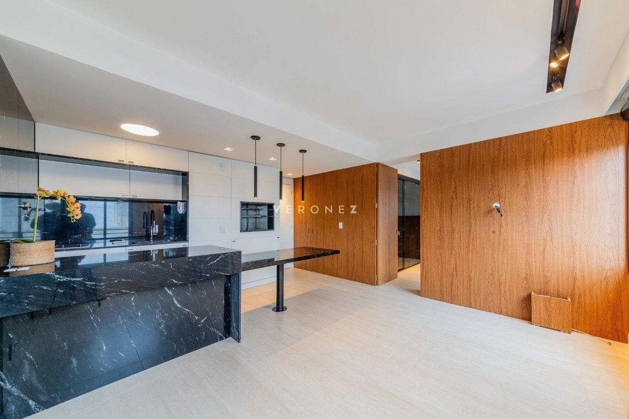 Apartamento com 43m² de área privativa em andar alto, living equipado com split, cozinha americana com móveis sob medida e banheiro social. Na área íntima1 dormitório planejado com closet e split. 1 vaga de garagem coberta escriturada.