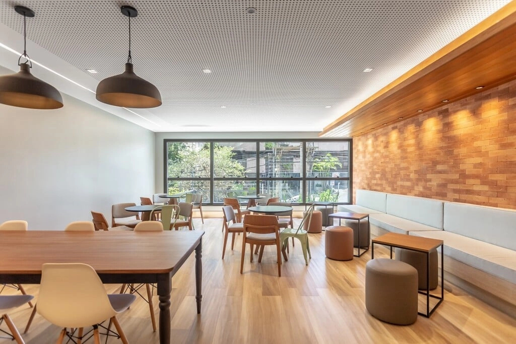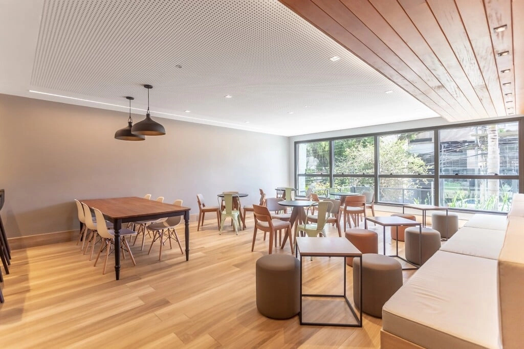 O condomínio oferece infraestrutura completa, com churrasqueira, espaço gourmet, espaço fitness, quiosque, piscina, salão de festas e terraço coletivo.
