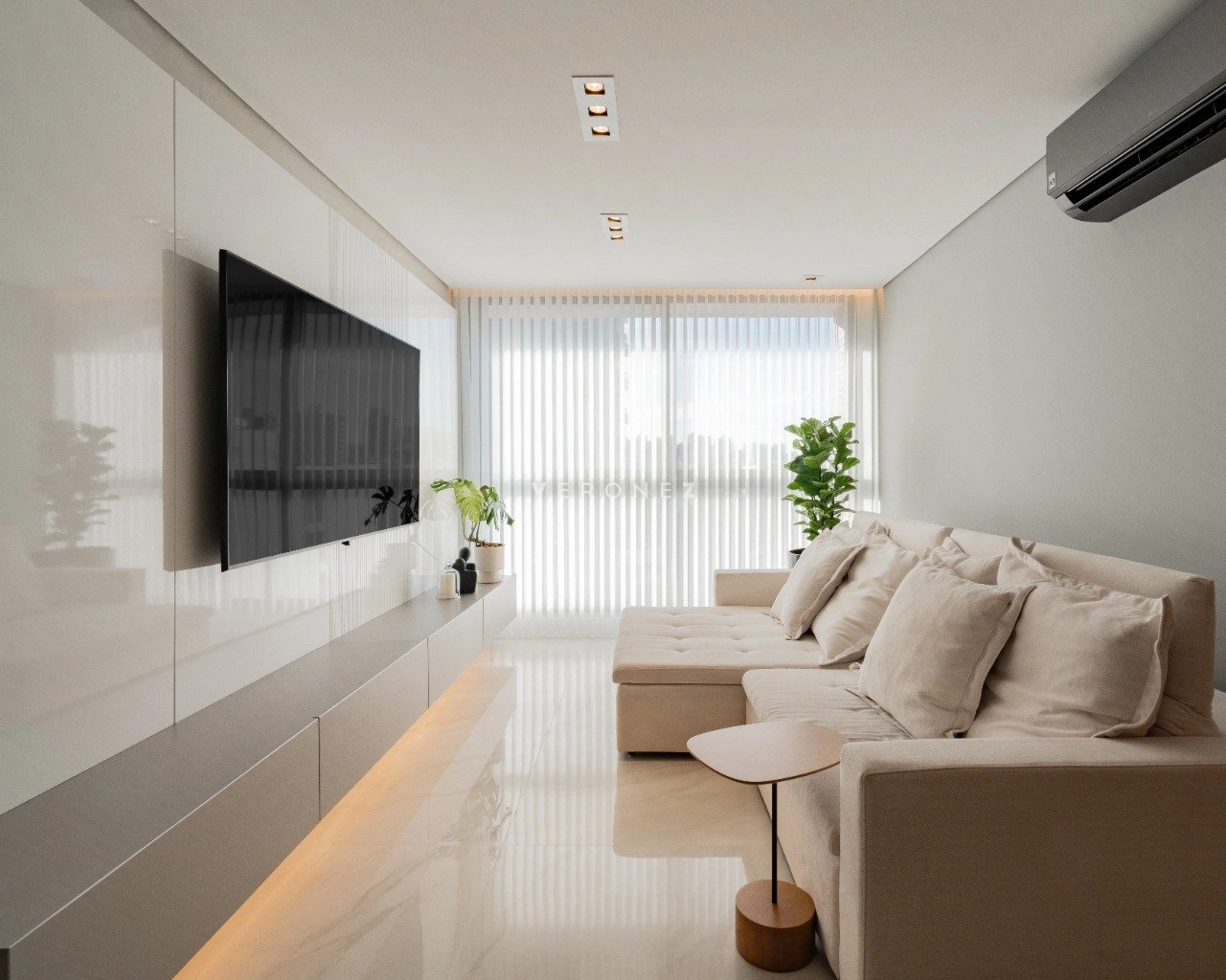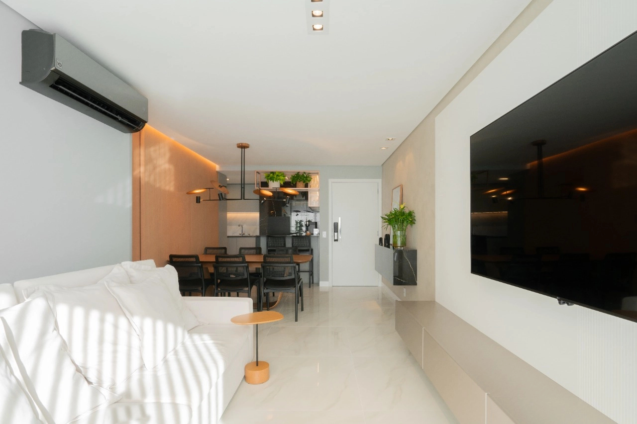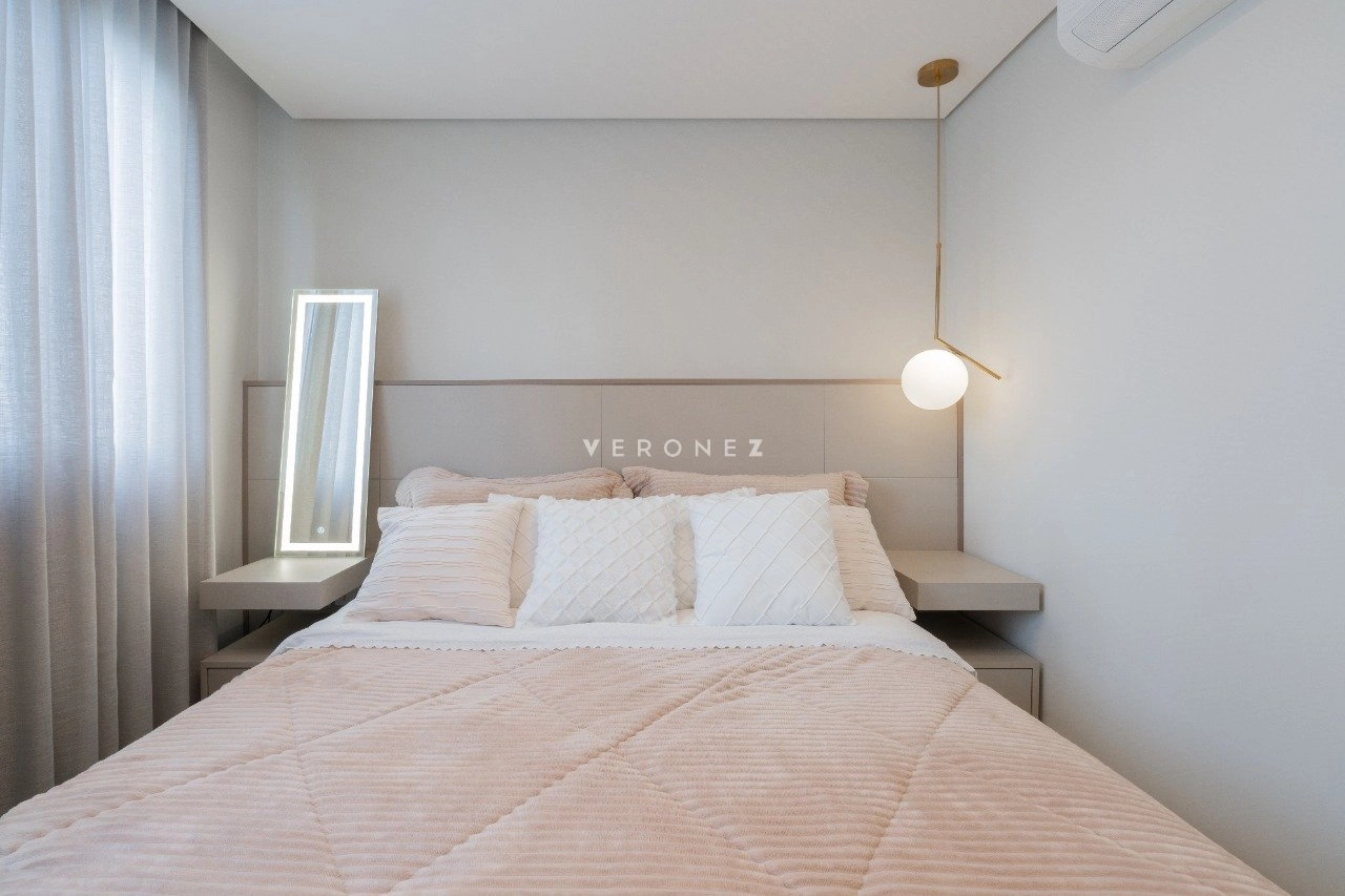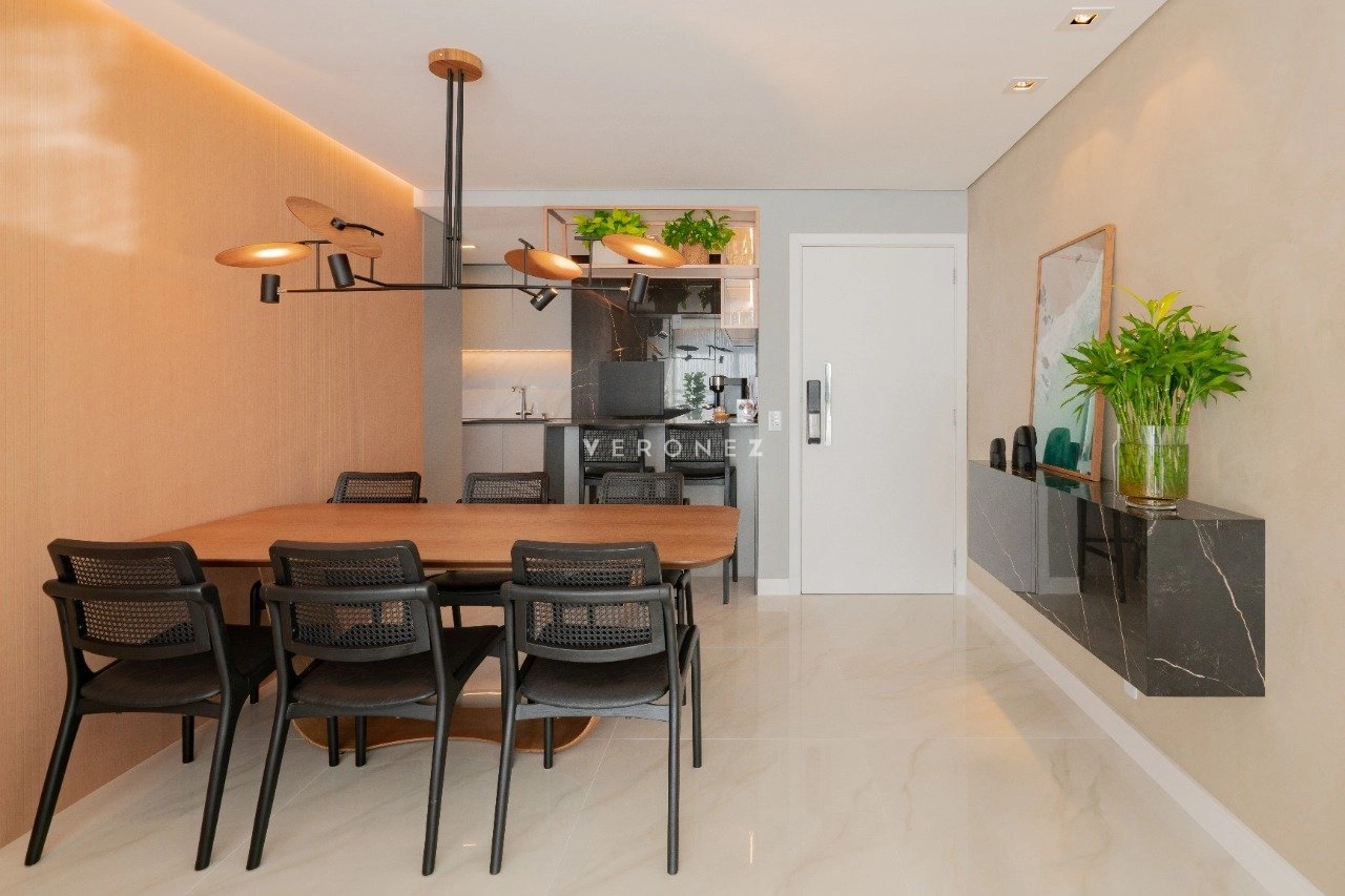 Apartamento mobiliado de 73m² privativos, 2 dormitórios, sendo 1 suíte, banheiro social, living para 2 ambientes, cozinha com churrasqueira. Possui 2 vagas de garagem (vaga dupla) e depósito.