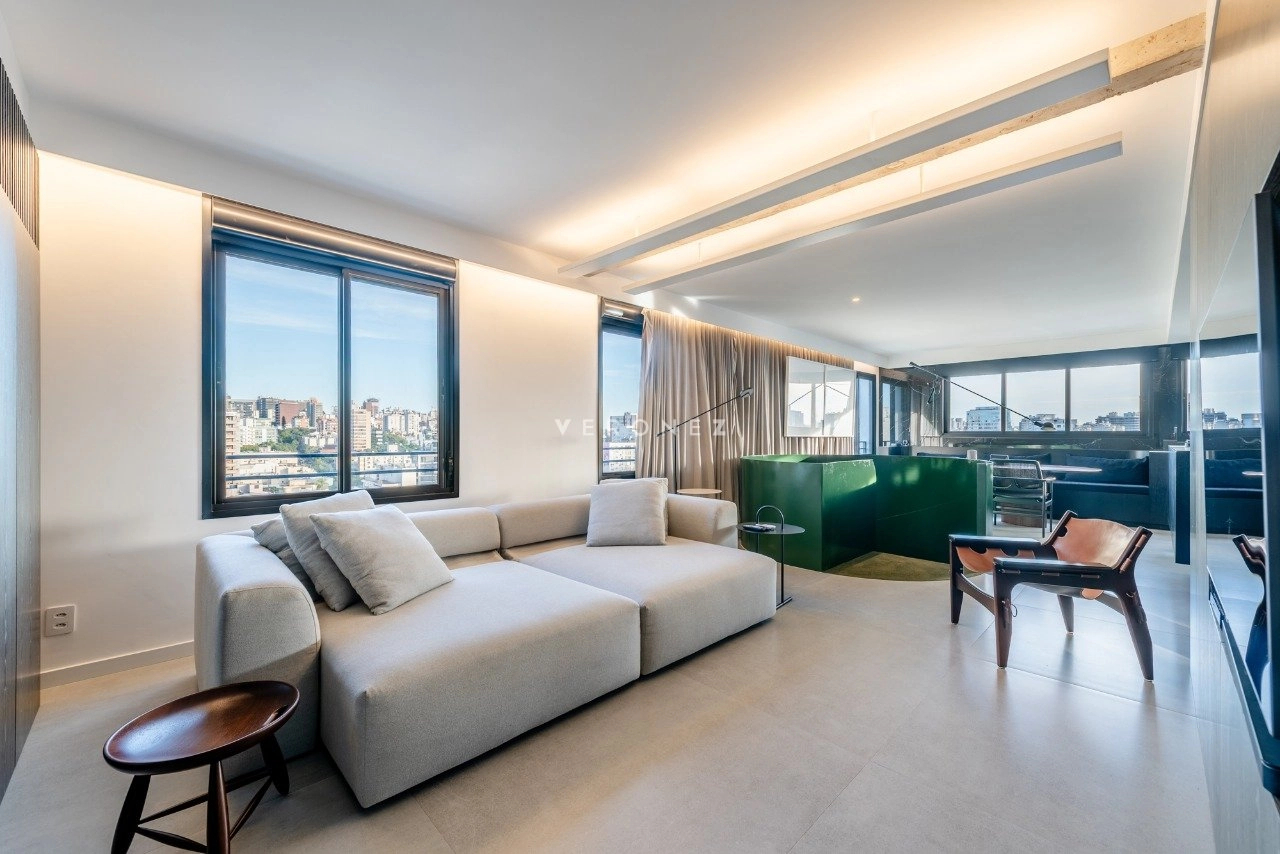 Duplex com 130m² de área privativa. No primeiro pavimento ficam as 2 suítes. no segundo pavimento temos o living para 2 ambientes, sala integrada com a cozinha, churrasqueira e lavabo. Andar alto com vista definida.