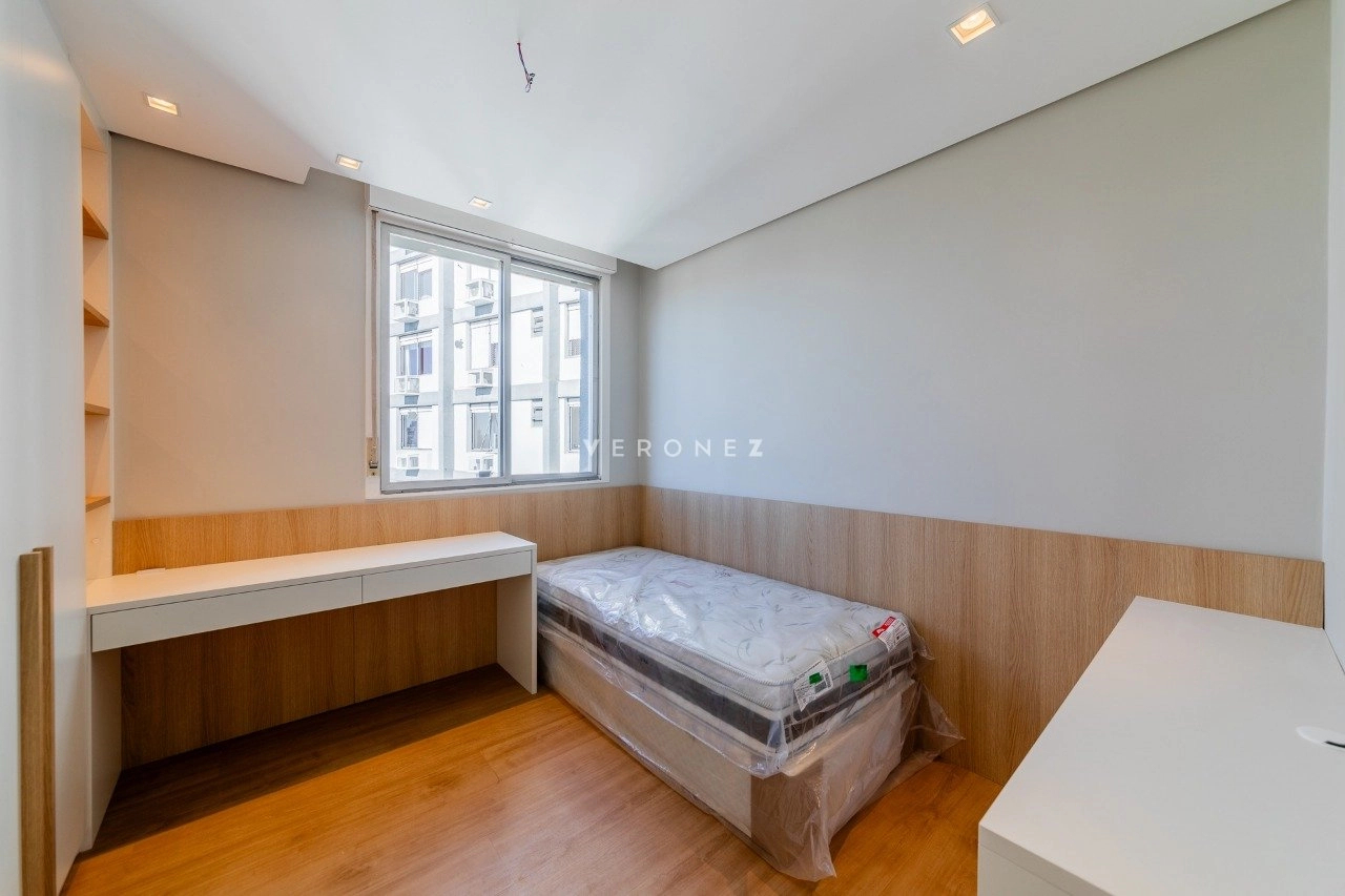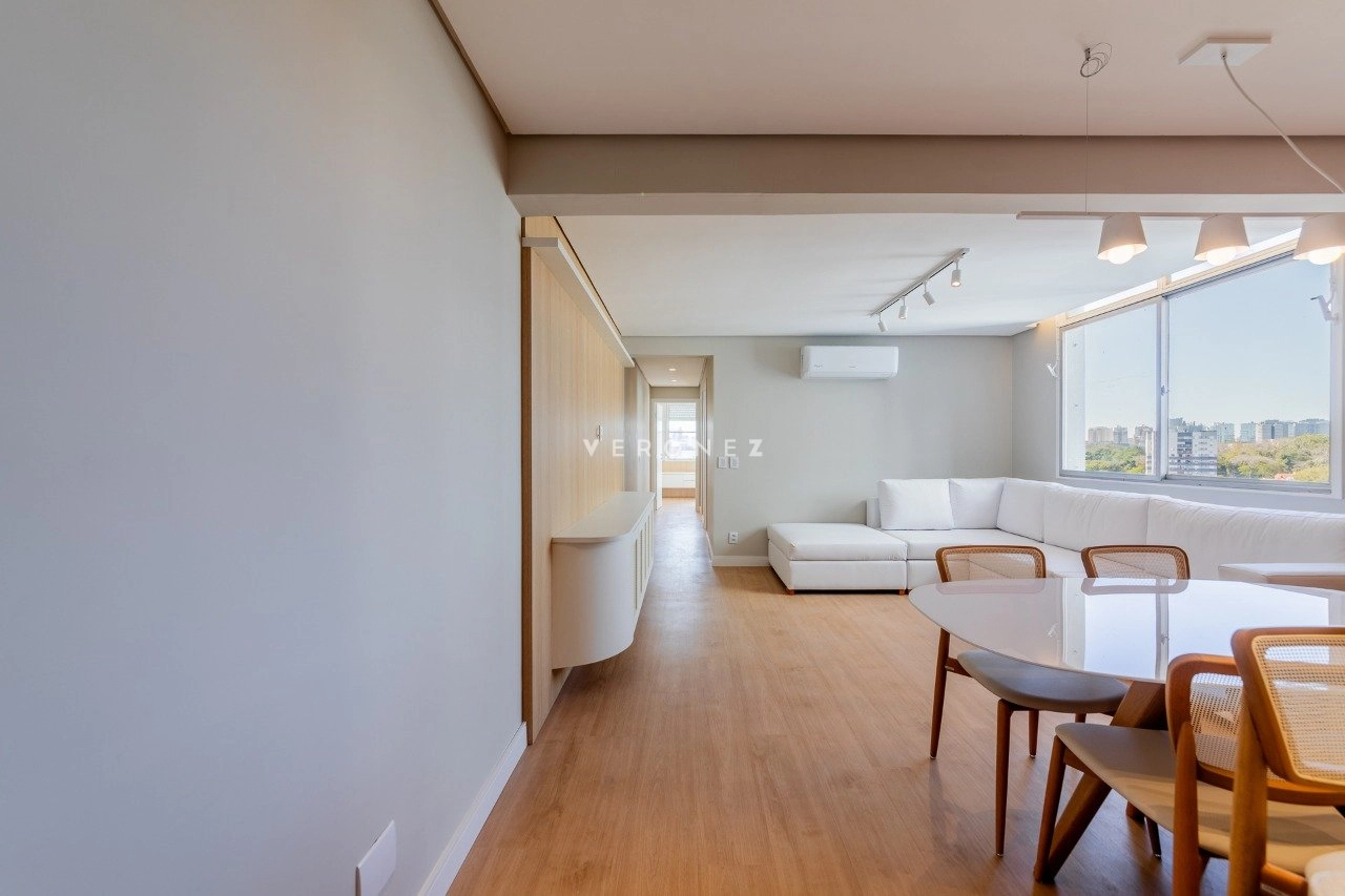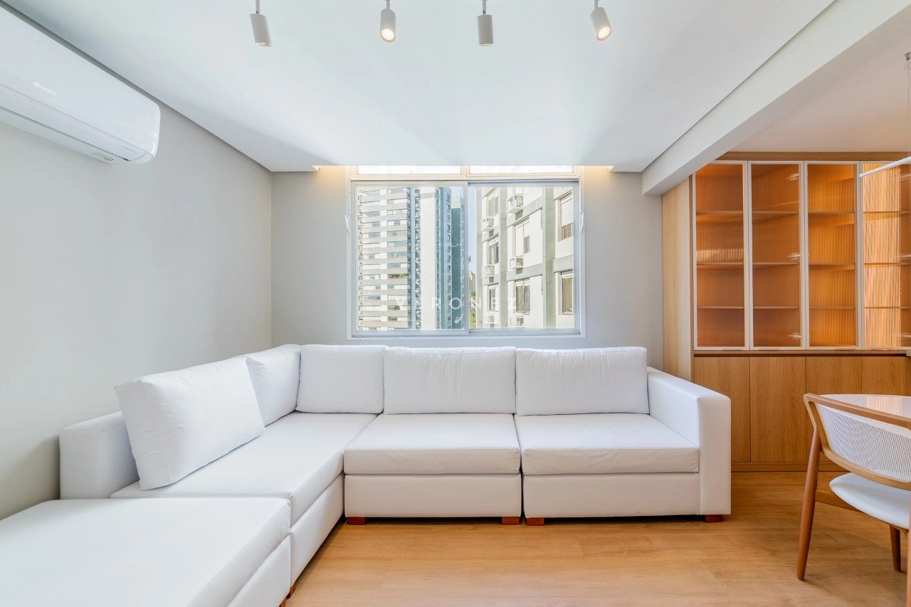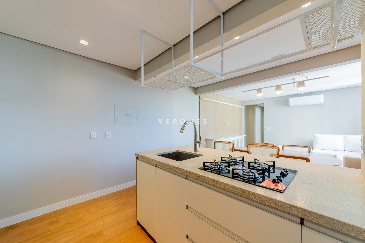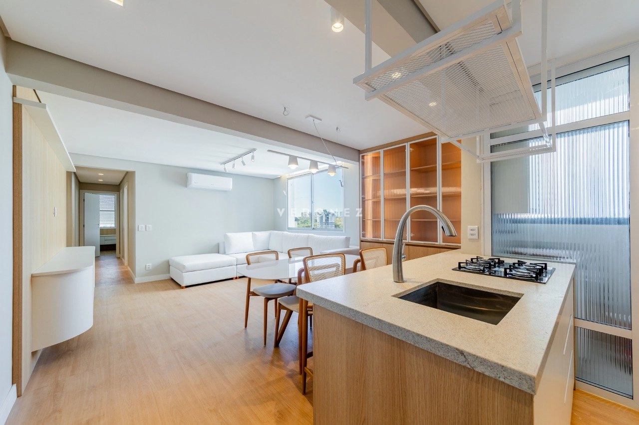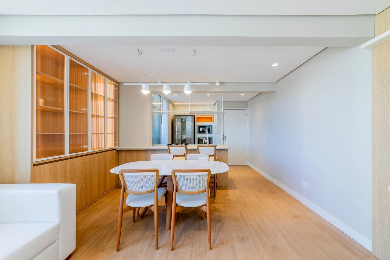 Apartemento com 73m2 privativos, mobiliado, 2 dormitórios sendo 1 suíte, banheiro social, living com cozinha integrada e área de serviço separada, uma vaga de garagem.