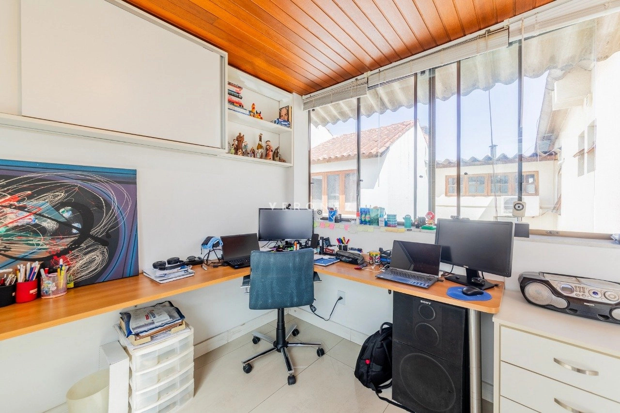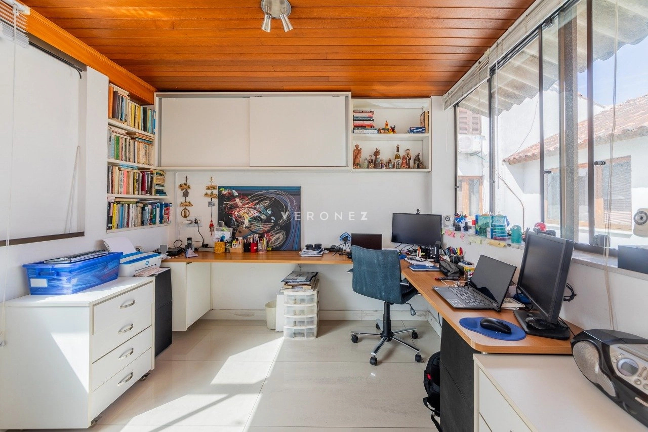 No segundo pavimento, há uma sala de estar com banheiro completo e um amplo espaço office.