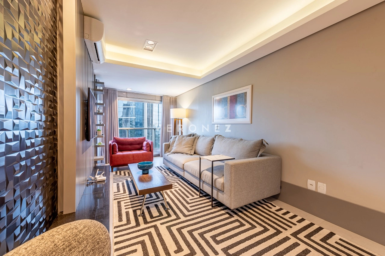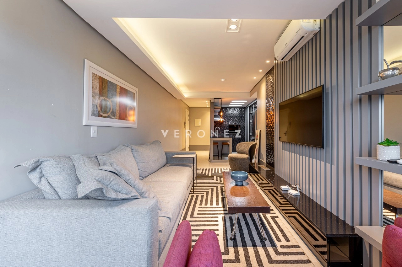 Apartamento de 54 m² privativos, 1 dormitório, living com sacada e churrasqueira, ótima posição solar, banheiro social, cozinha americana e 1 vaga de garagem coberta. Andar alto com vista, no Trend Nova Carlos Gomes.