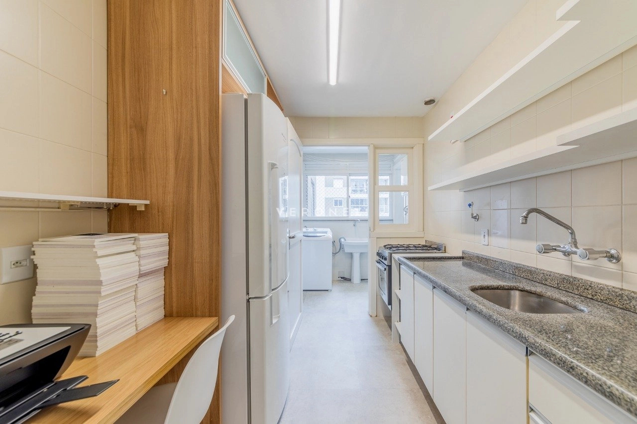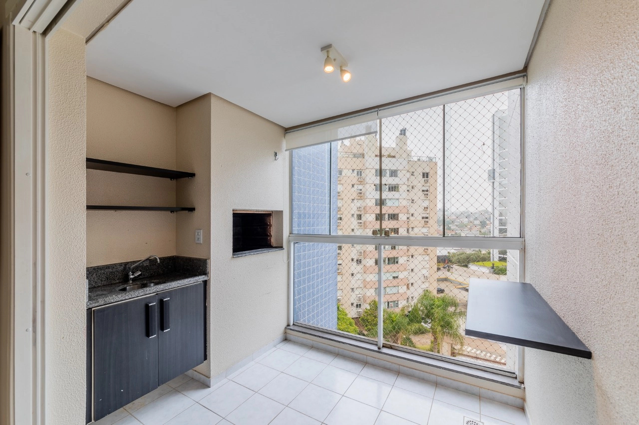Apartamento de 103 m² de área privativa, semi-mobiliado, 3 dormitórios (1suite), escritório, living para 2 ambientes com sacada integrada com churrasqueira e área de serviço separada.