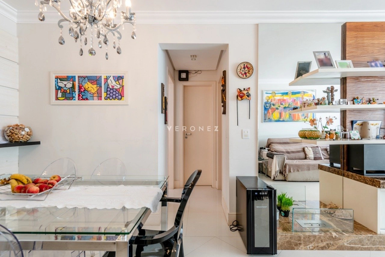 O prédio dispõe de portaria 24 horas, salão de festas e espaço fitness.