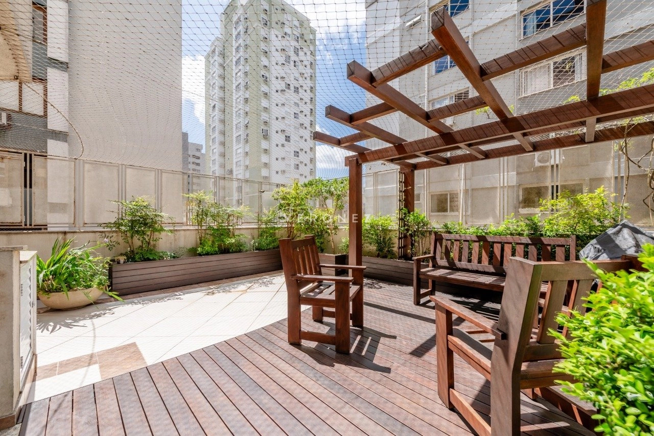 Garden com 111 m², 2 dormitórios, sendo 1 suíte. O imóvel conta com living para 2 ambientes, churrasqueira, cozinha planejada com área de serviço separada e banheiro social. O grande destaque é o generoso terraço, com 38,50 m², perfeito para quem deseja mais espaço ao ar livre. Possui sol da manhã e vaga dupla, escriturada e coberta.