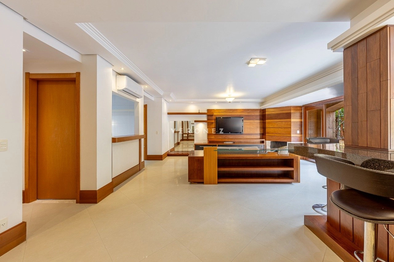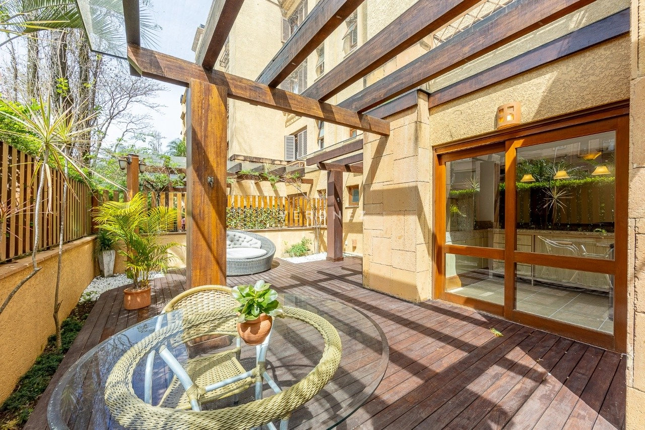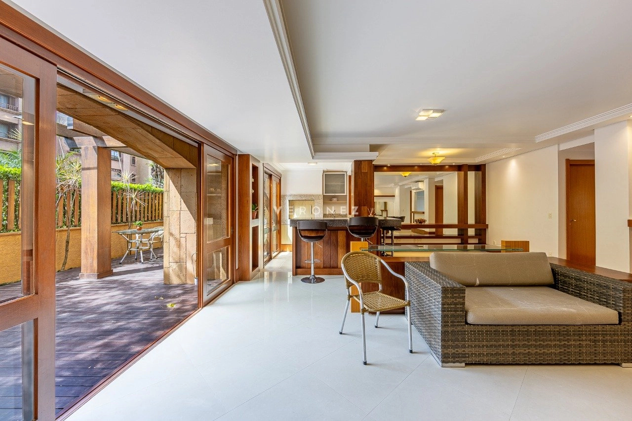 Apartamento Garden semi mobiliado de 190 m², 3 dormitórios, sendo 1 suíte plena e 2 americanas, living para 3 ambientes, lareira, lavabo, churrasqueira integrada ao living, cozinha americana, área de serviço separada, banheiro auxiliar e 2 vagas de garagem com depósito.