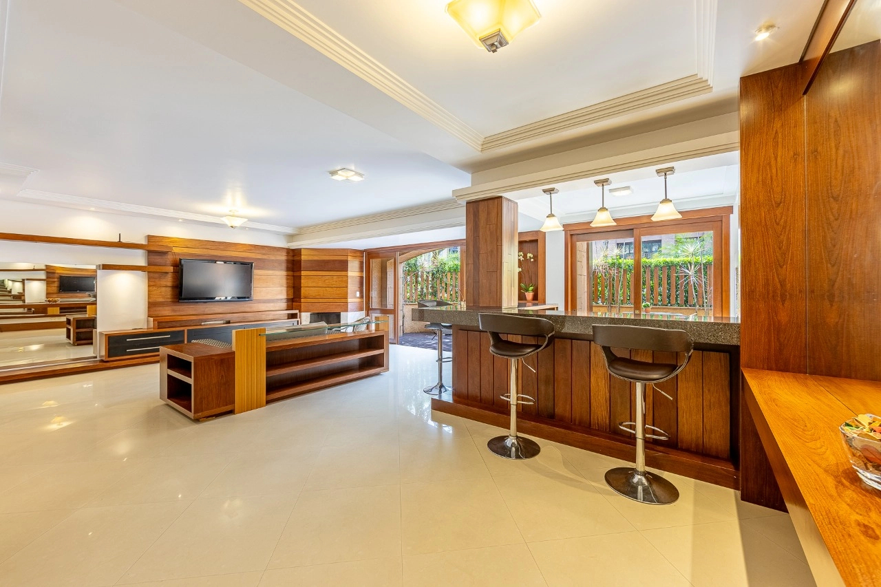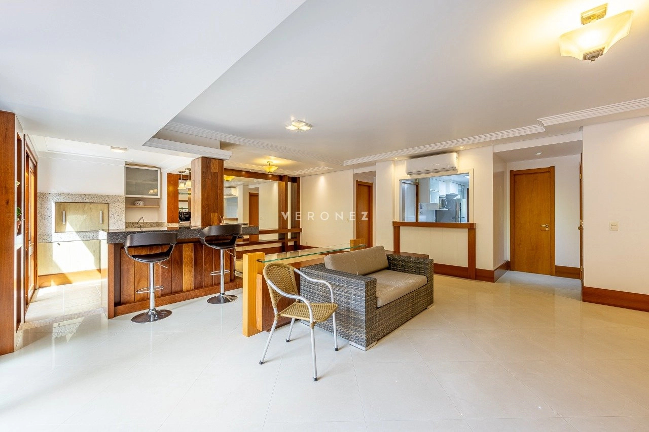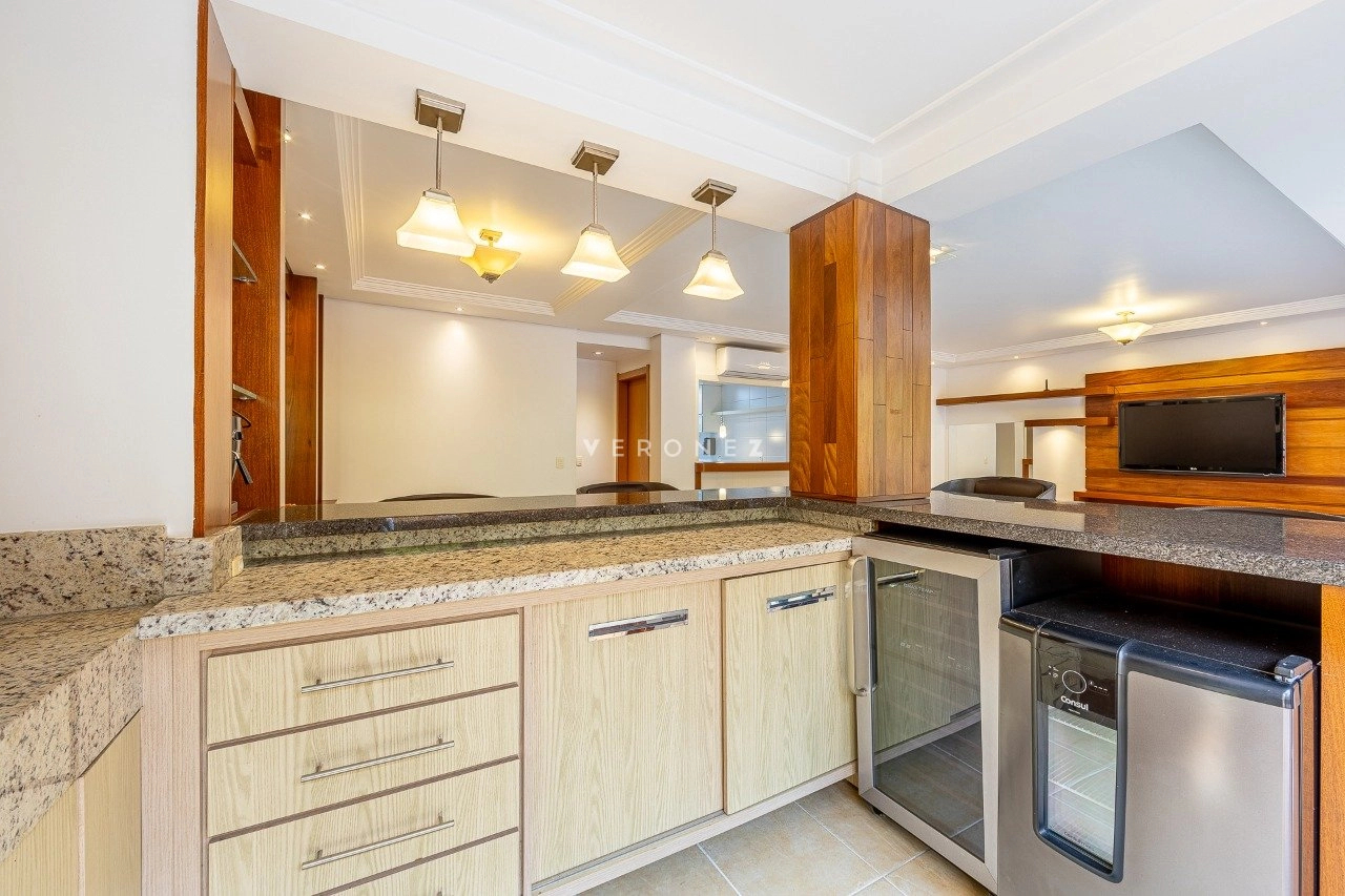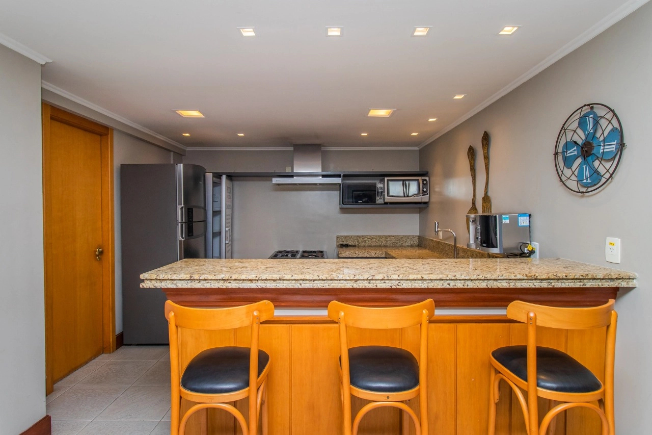 Apartamento Garden semi mobiliado de 190 m², 3 dormitórios, sendo 1 suíte plena e 2 americanas, living para 3 ambientes, lareira, lavabo, churrasqueira integrada ao living, cozinha americana, área de serviço separada, banheiro auxiliar e 2 vagas de garagem com depósito.