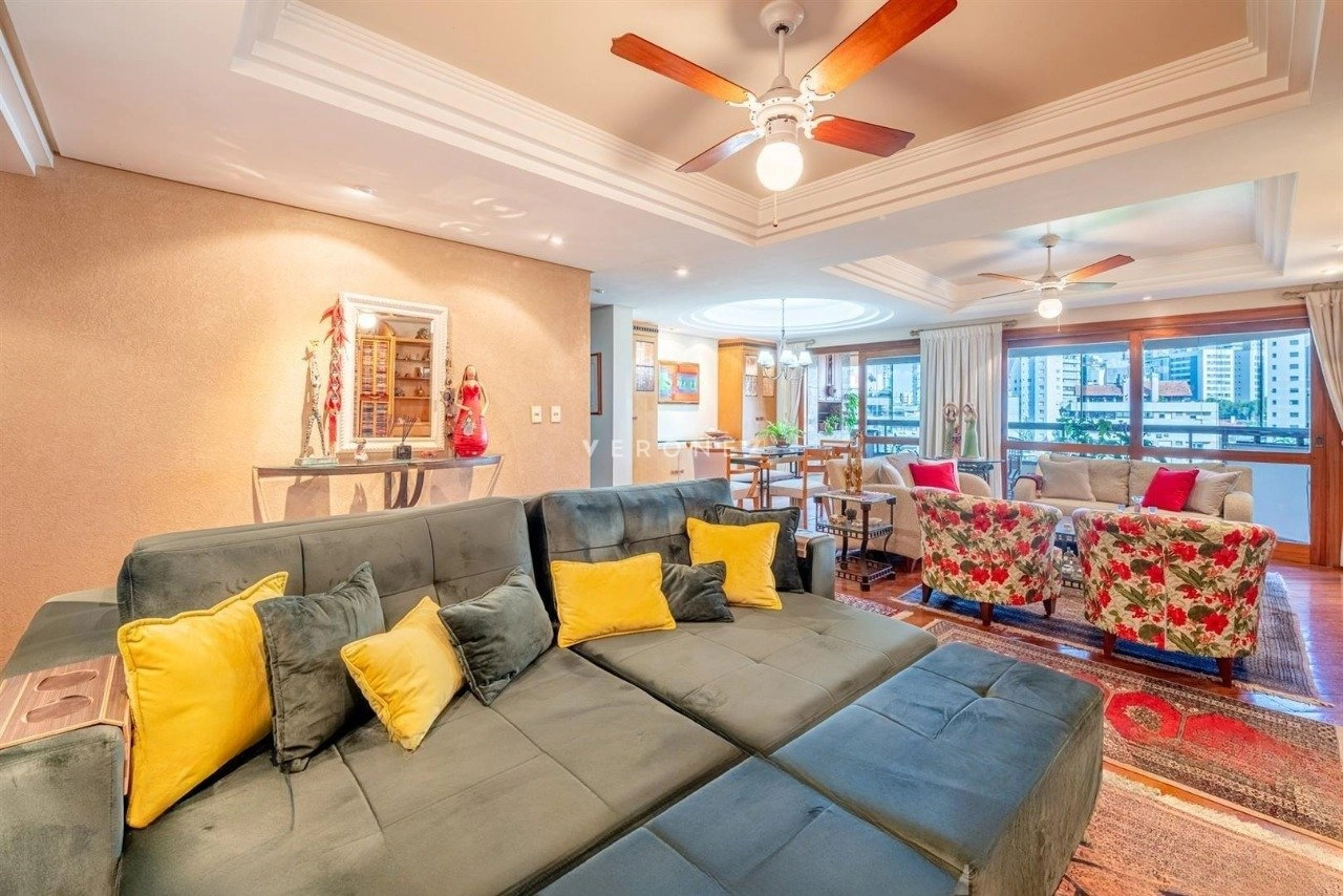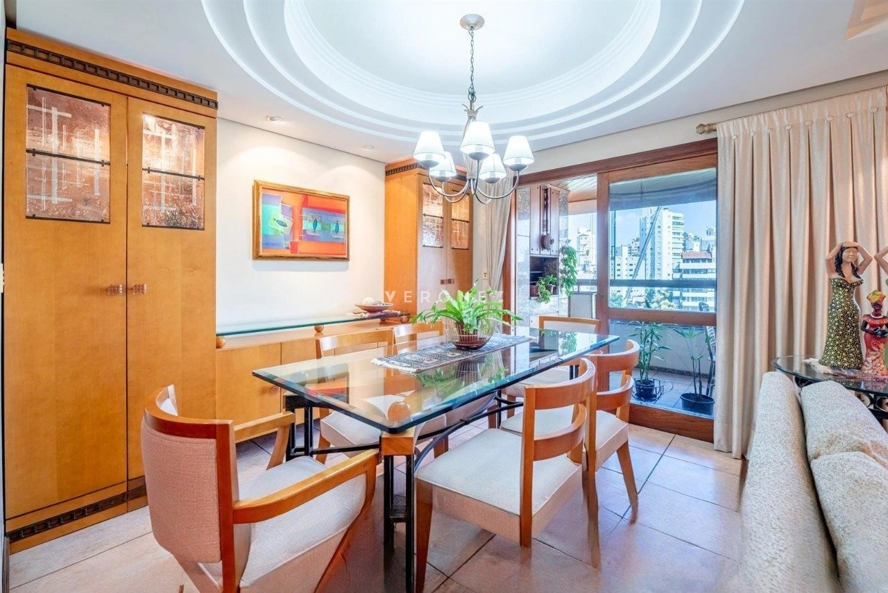 Excelente apartamento semimobilado, 03 dormitórios, sendo a suíte master com closet e sacada. O living para três ambientes com lareira, sala de jantar, lavabo, sacada fechada com churrasqueira com ótimo espaço para receber os amigos. Cozinha e área de serviço, dependência de empregada.