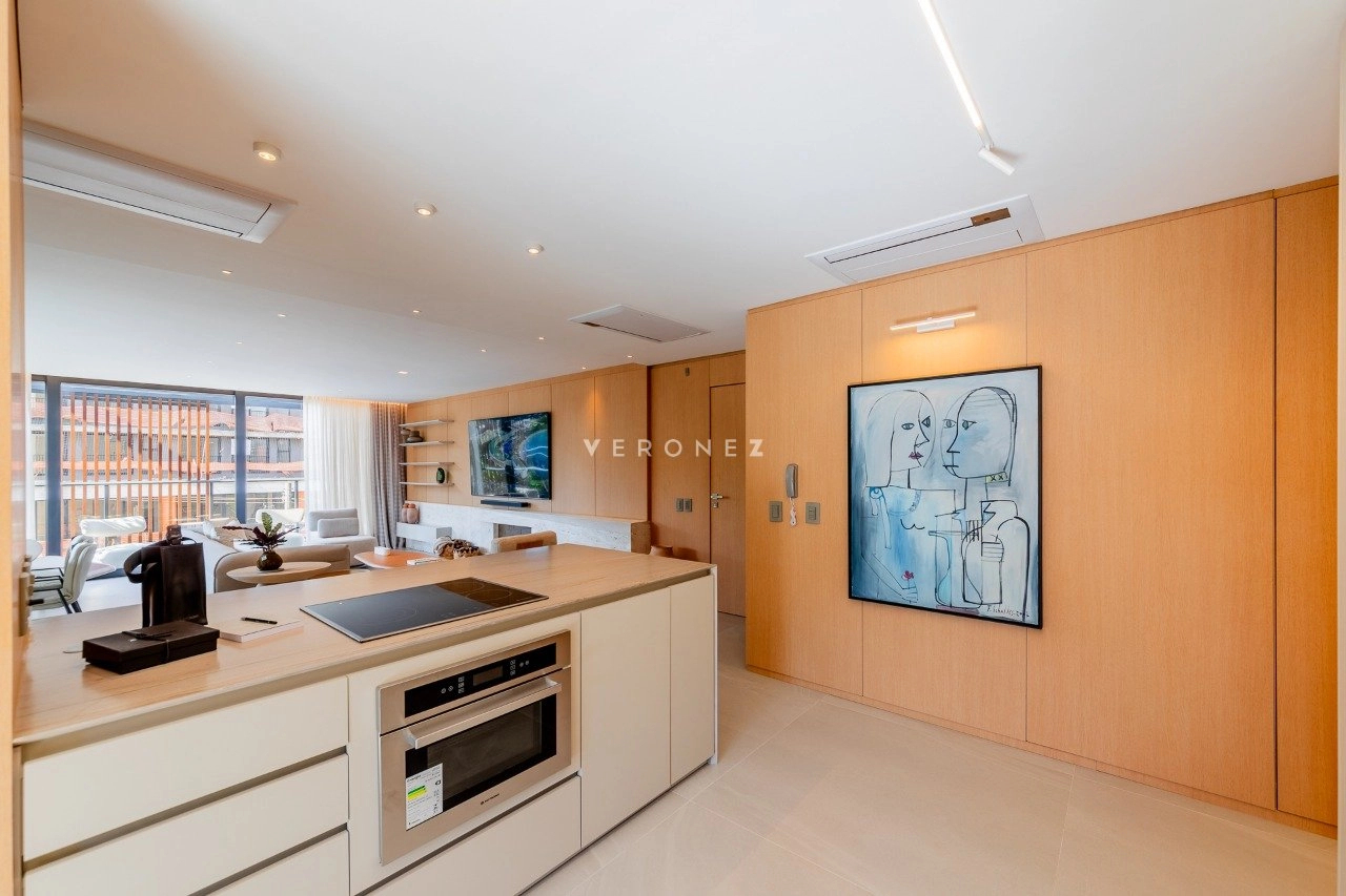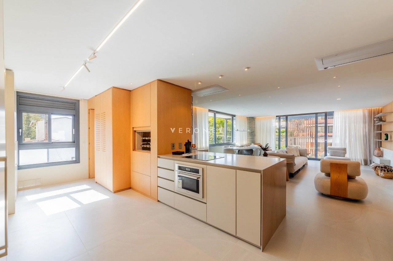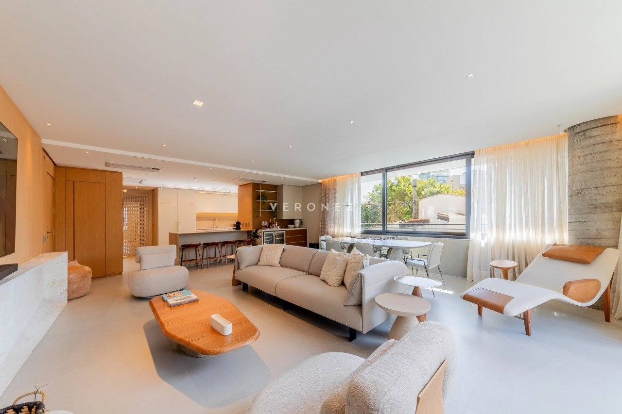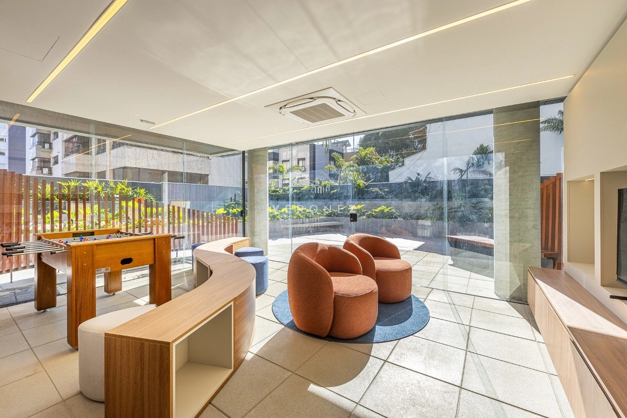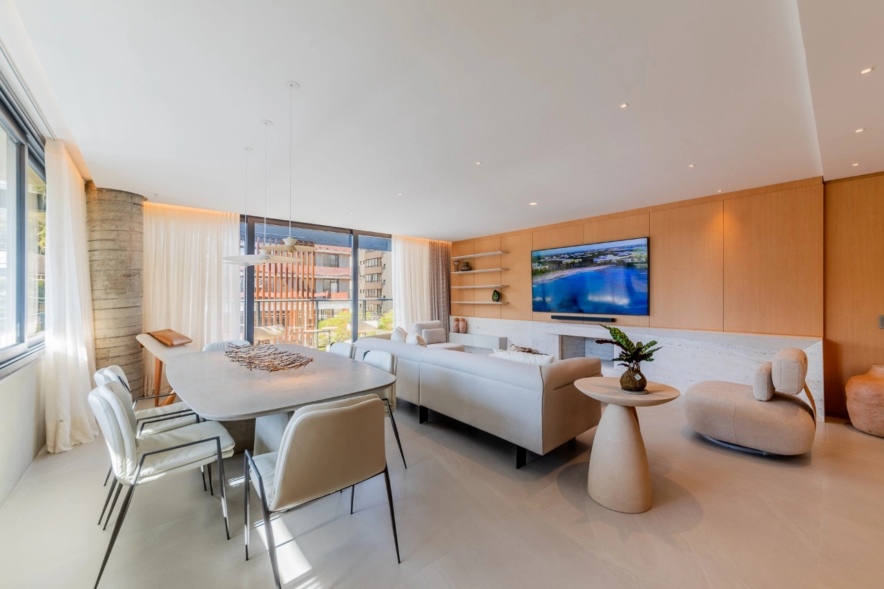 Apartamento de 170 m², finamente mobiliado e decorado. Possui 2 amplas suítes, sendo uma máster com 70 m², closet, dois banheiros com piso aquecido. Living espaçoso de 64 m², com lareira, sacada e excelente orientação solar leste (sol da manhã). Cozinha integrada, equipada com eletrodomésticos Elettromec e churrasqueira motorizada com acabamento em inox.