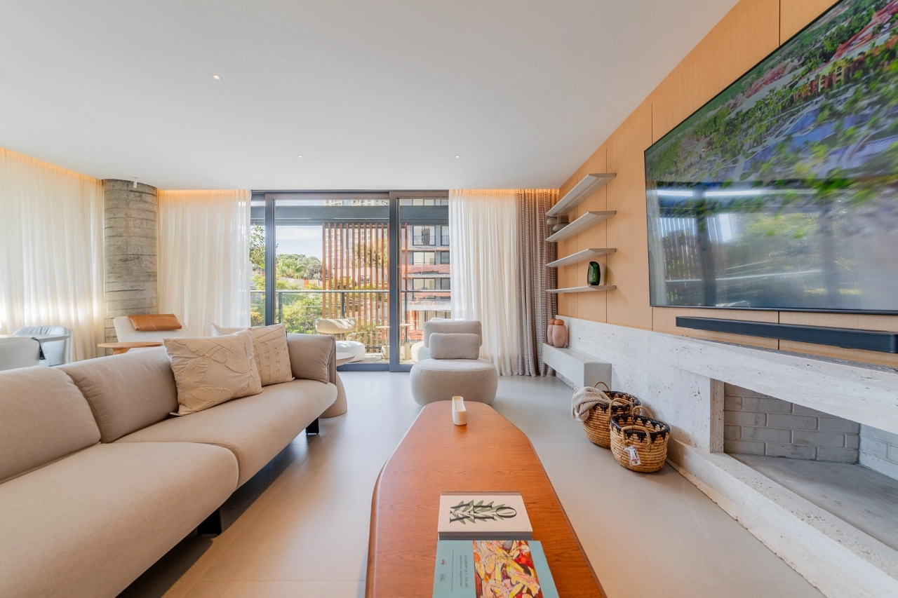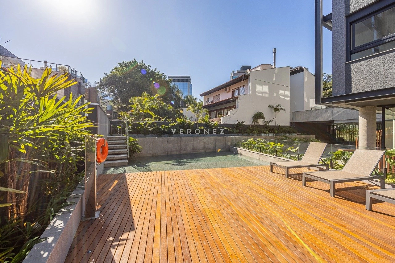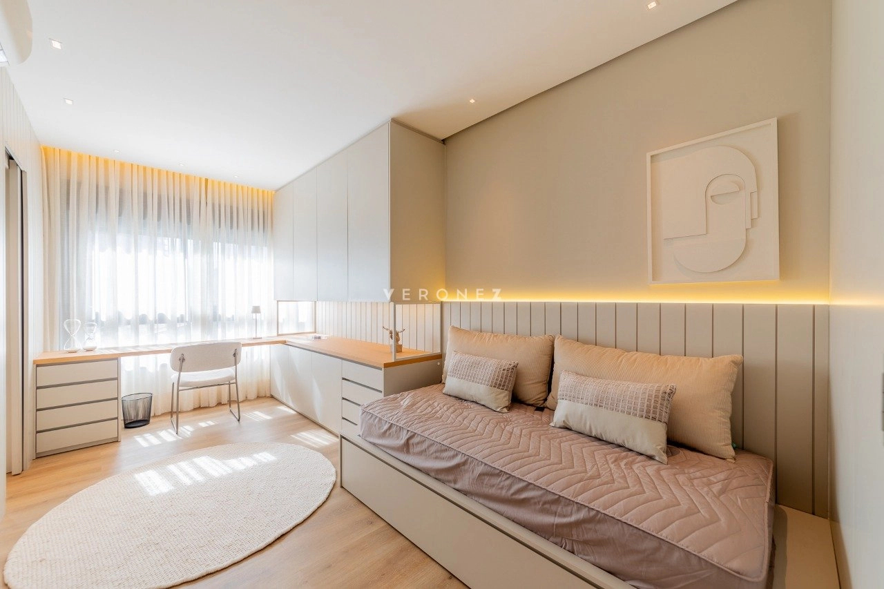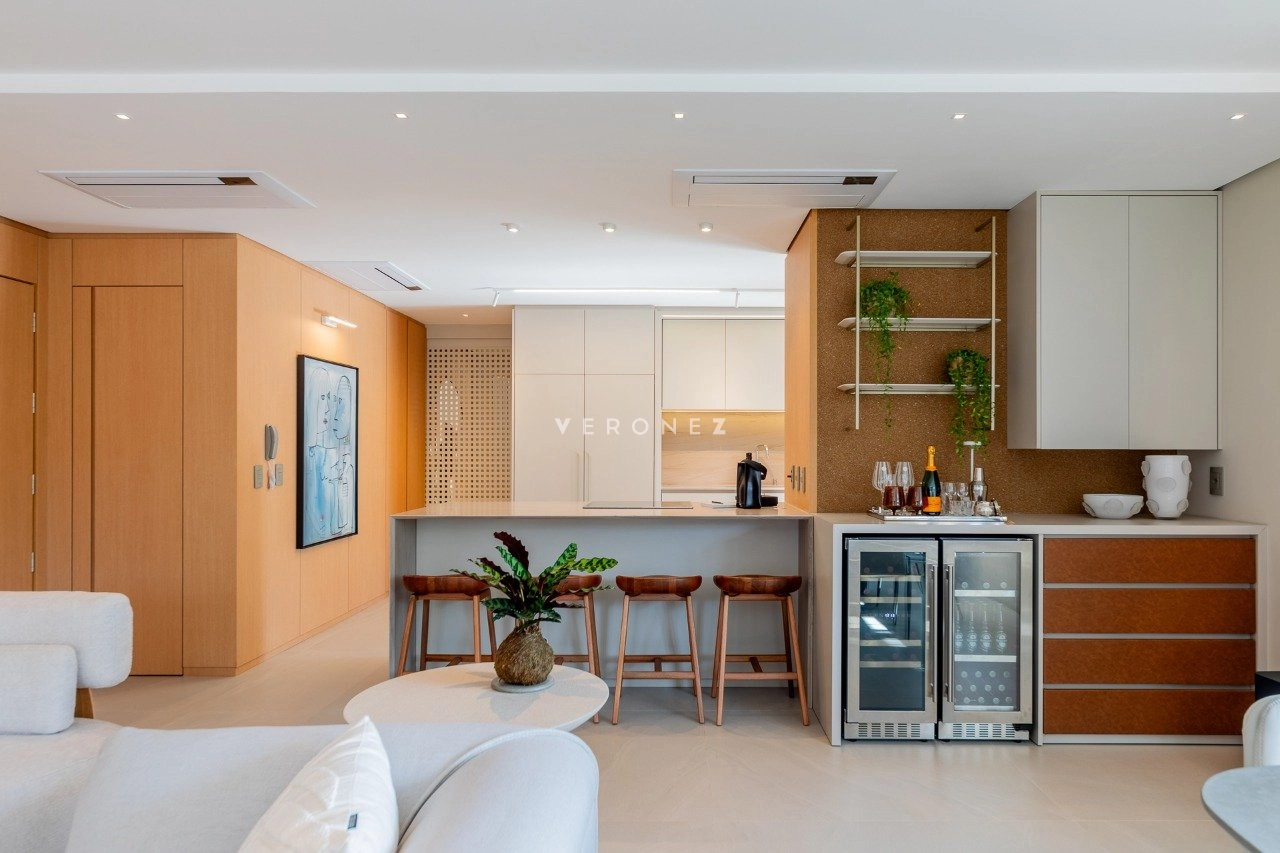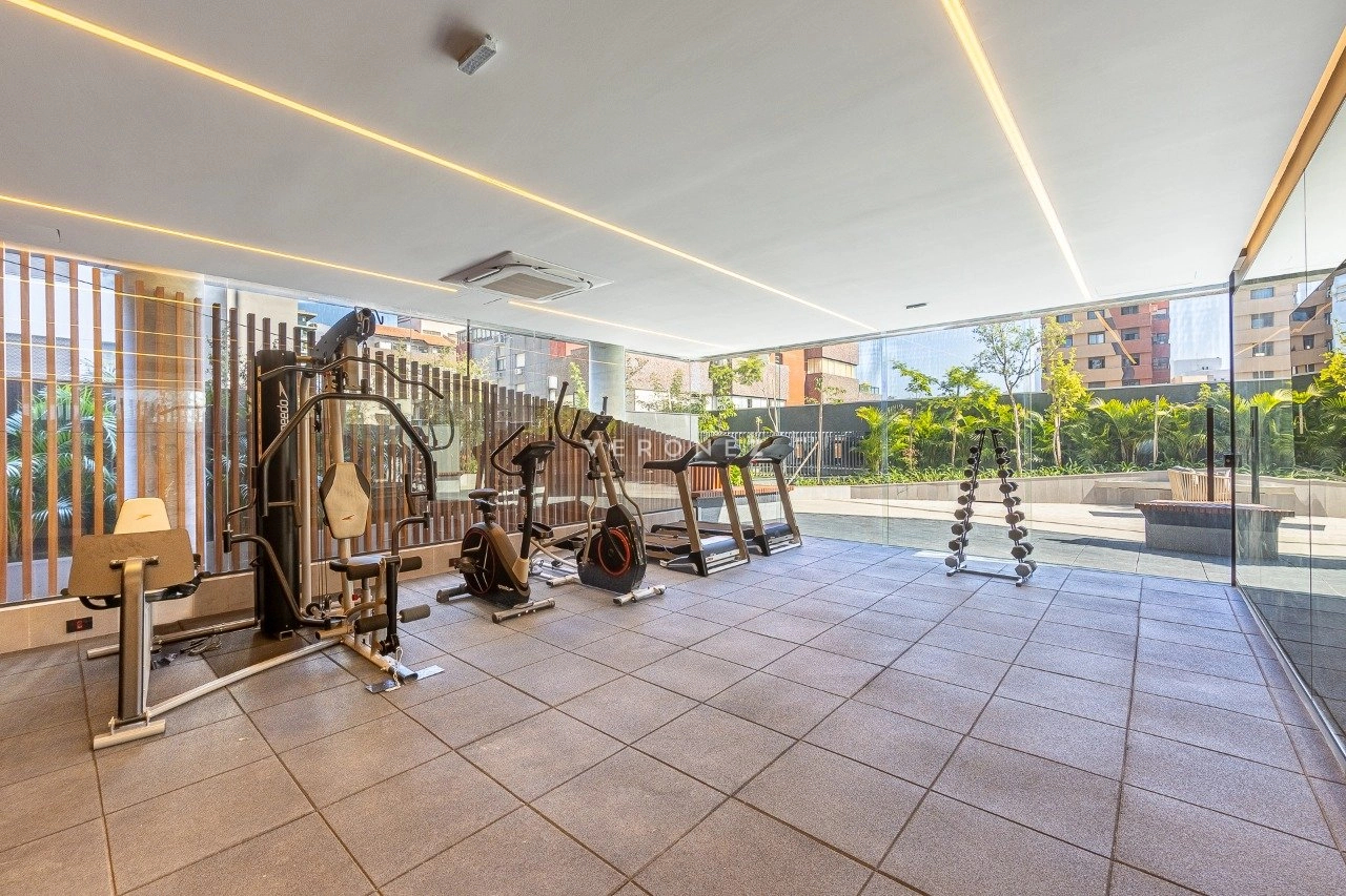 Apartamento de 170 m², finamente mobiliado e decorado. Possui 2 amplas suítes, sendo uma máster com 70 m², closet, dois banheiros com piso aquecido. Living espaçoso de 64 m², com lareira, sacada e excelente orientação solar leste (sol da manhã). Cozinha integrada, equipada com eletrodomésticos Elettromec e churrasqueira motorizada com acabamento em inox.