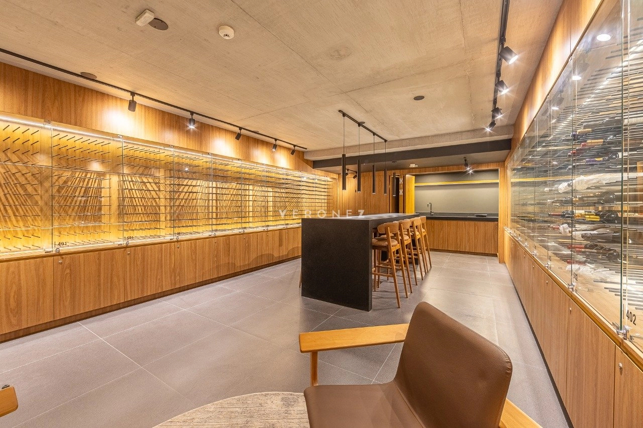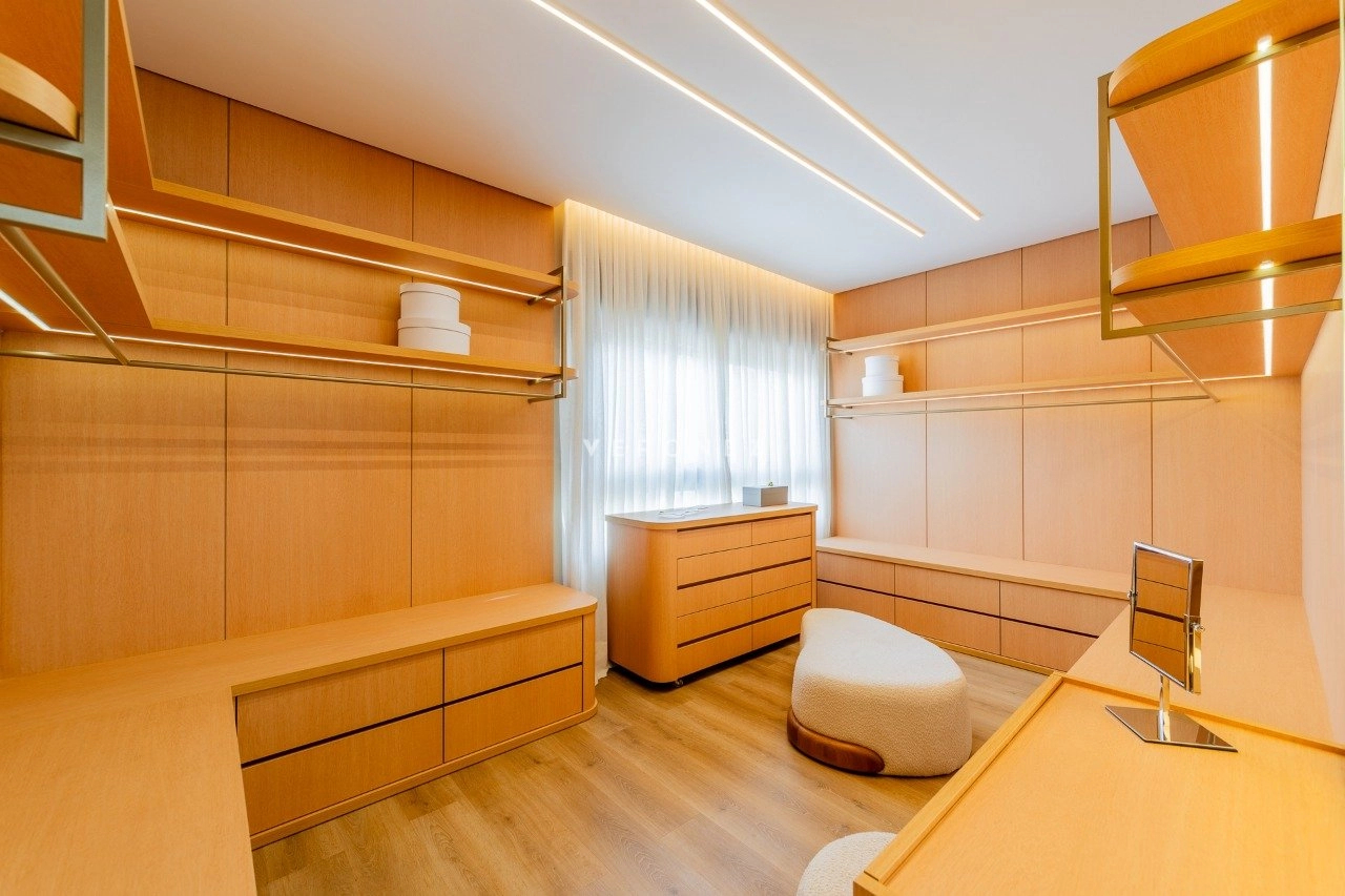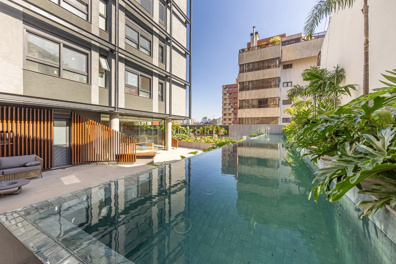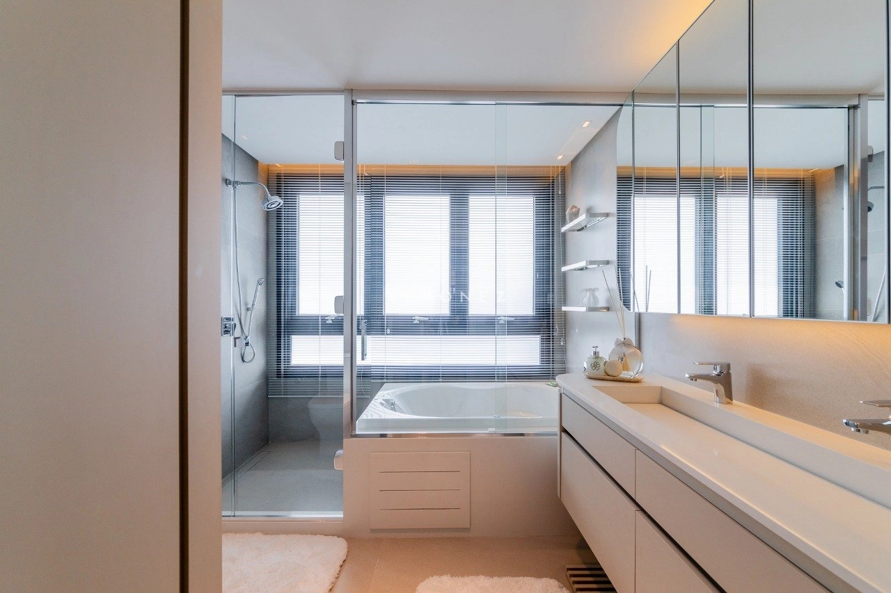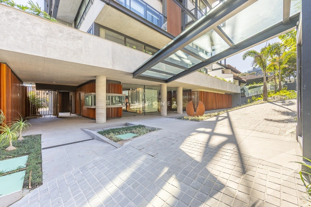 Apartamento de 170 m², finamente mobiliado e decorado. Possui 2 amplas suítes, sendo uma máster com 70 m², closet, dois banheiros com piso aquecido. Living espaçoso de 64 m², com lareira, sacada e excelente orientação solar leste (sol da manhã). Cozinha integrada, equipada com eletrodomésticos Elettromec e churrasqueira motorizada com acabamento em inox.