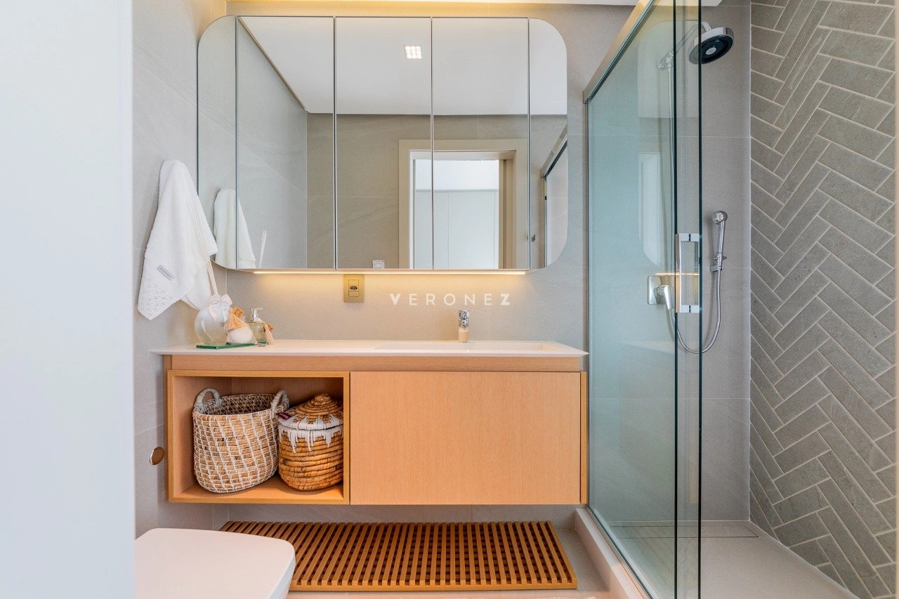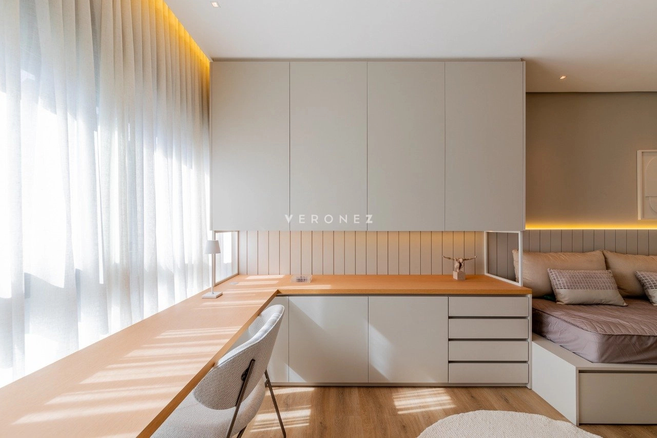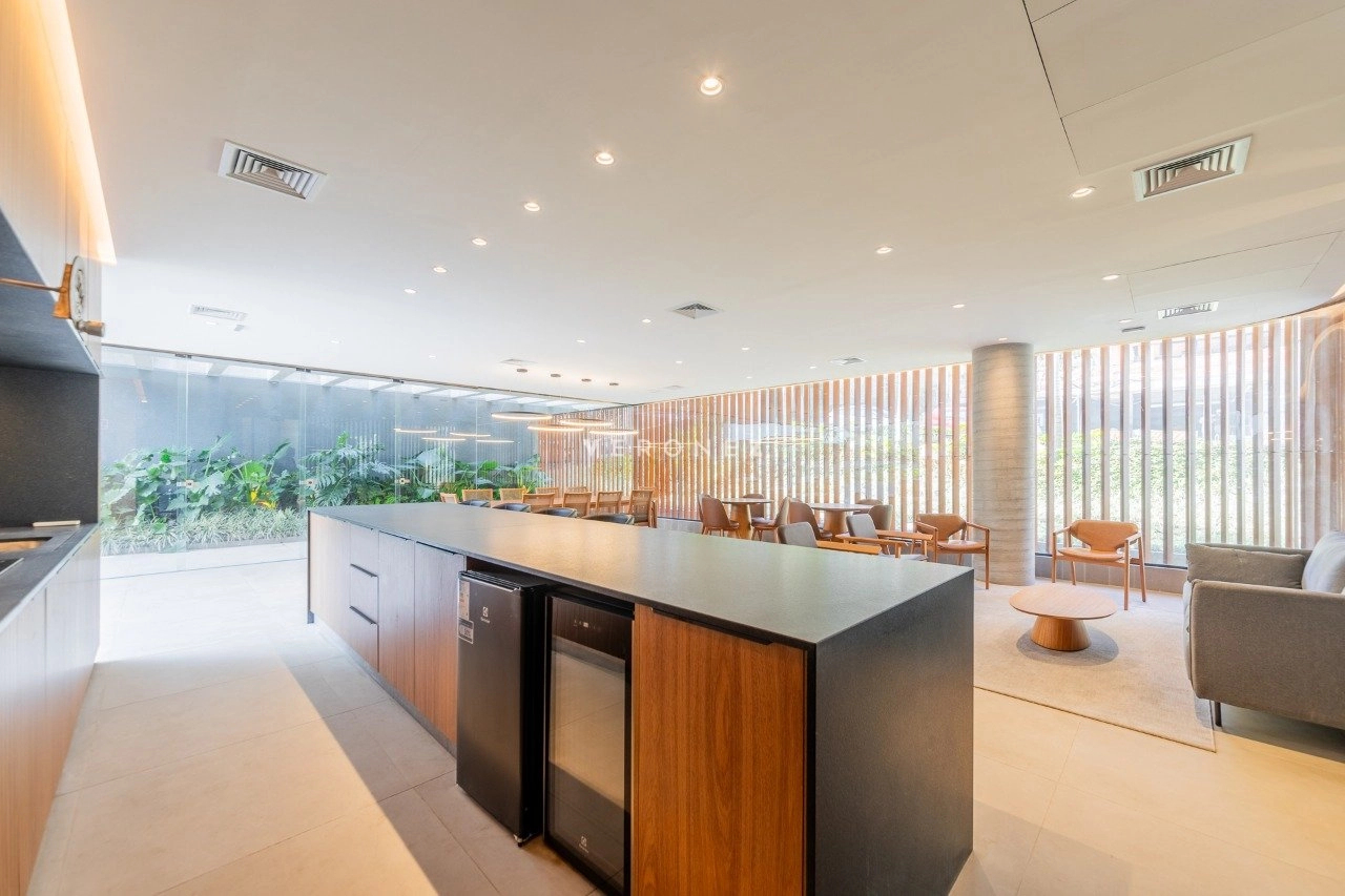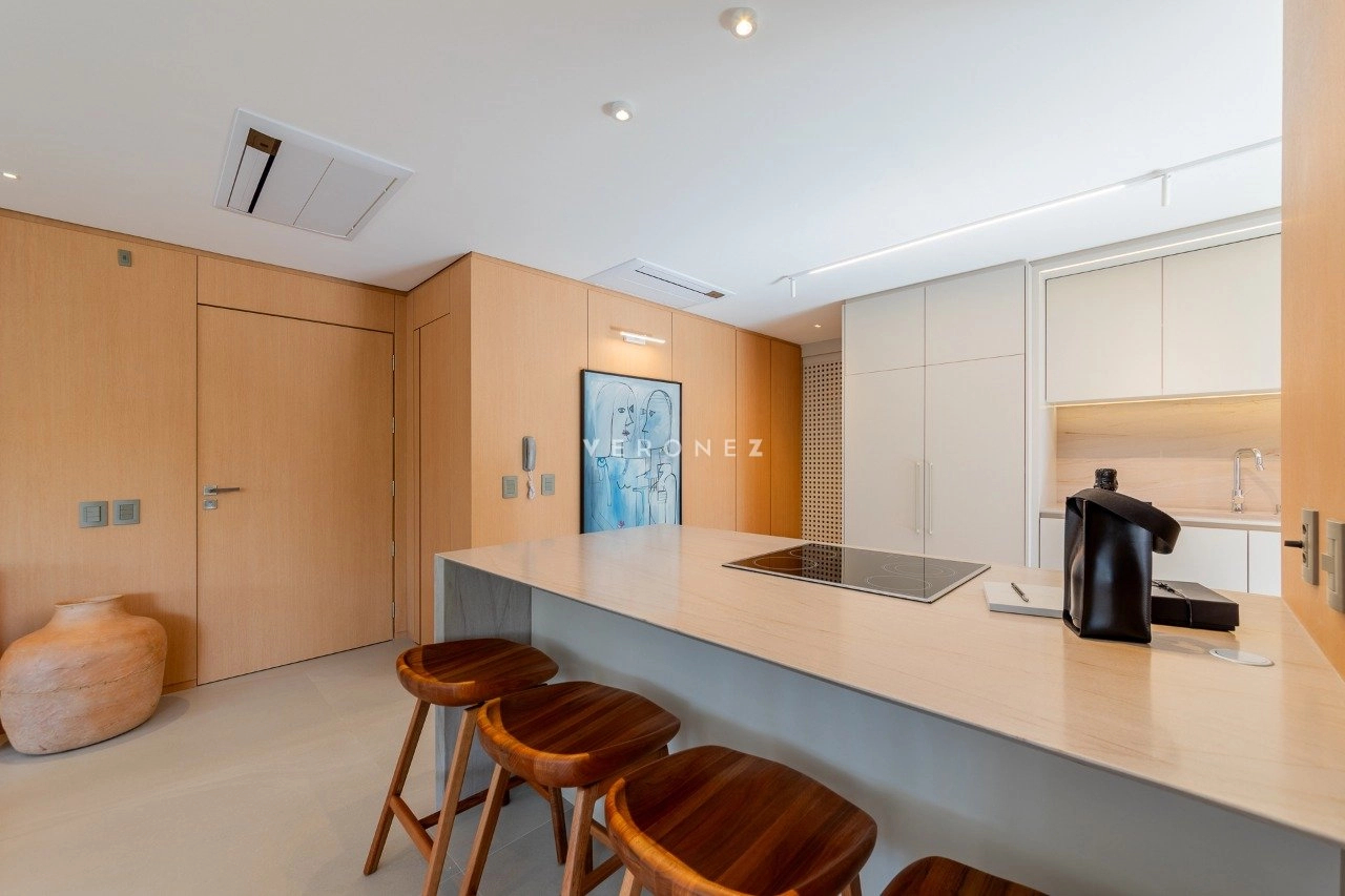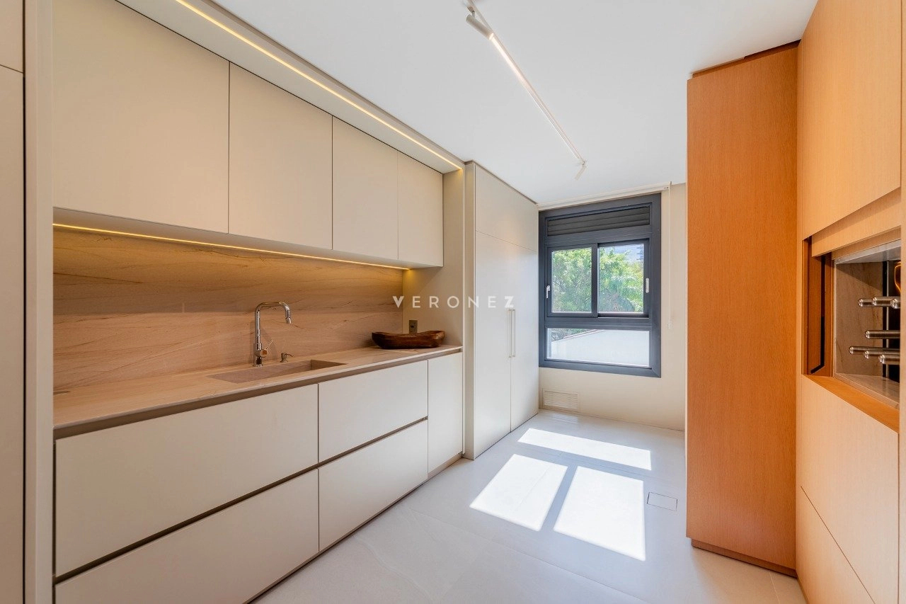 Apartamento de 170 m², finamente mobiliado e decorado. Possui 2 amplas suítes, sendo uma máster com 70 m², closet, dois banheiros com piso aquecido. Living espaçoso de 64 m², com lareira, sacada e excelente orientação solar leste (sol da manhã). Cozinha integrada, equipada com eletrodomésticos Elettromec e churrasqueira motorizada com acabamento em inox.