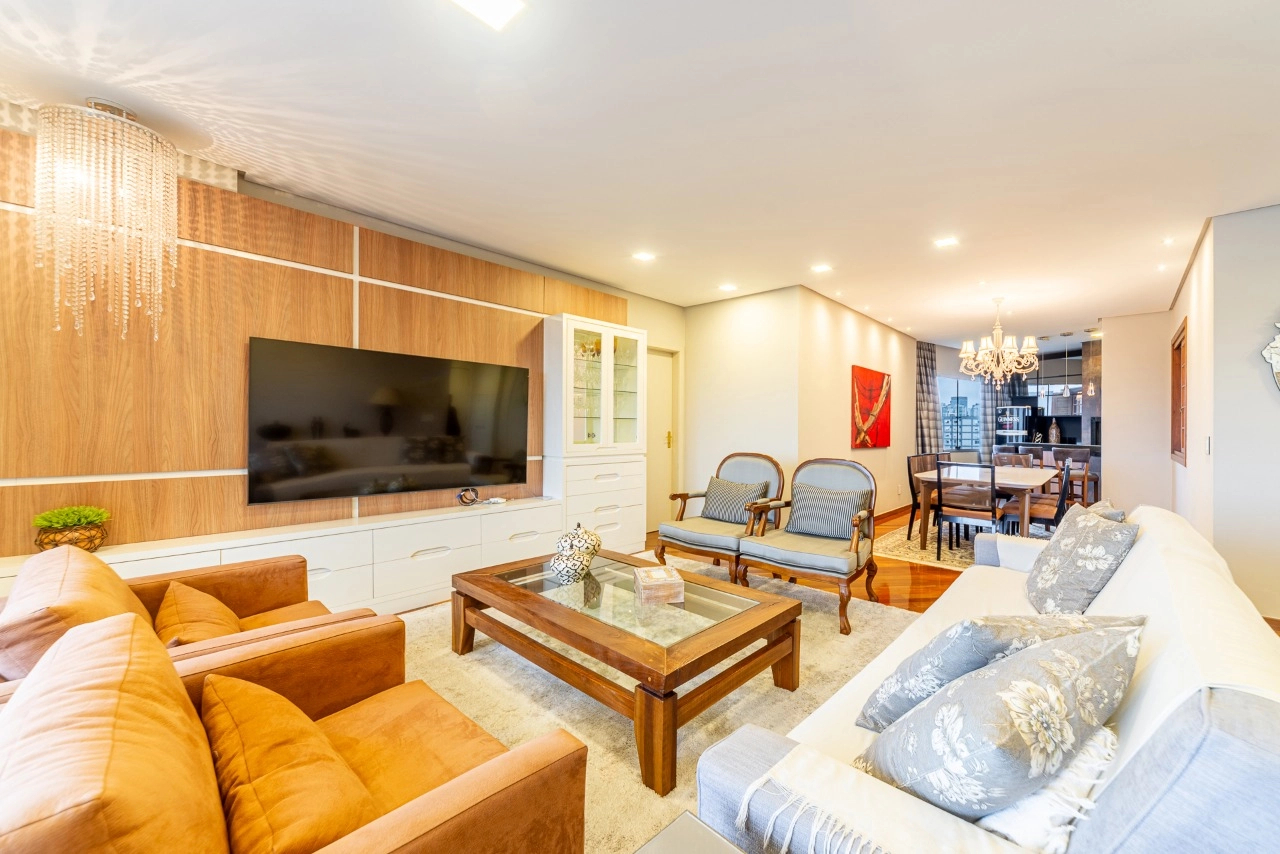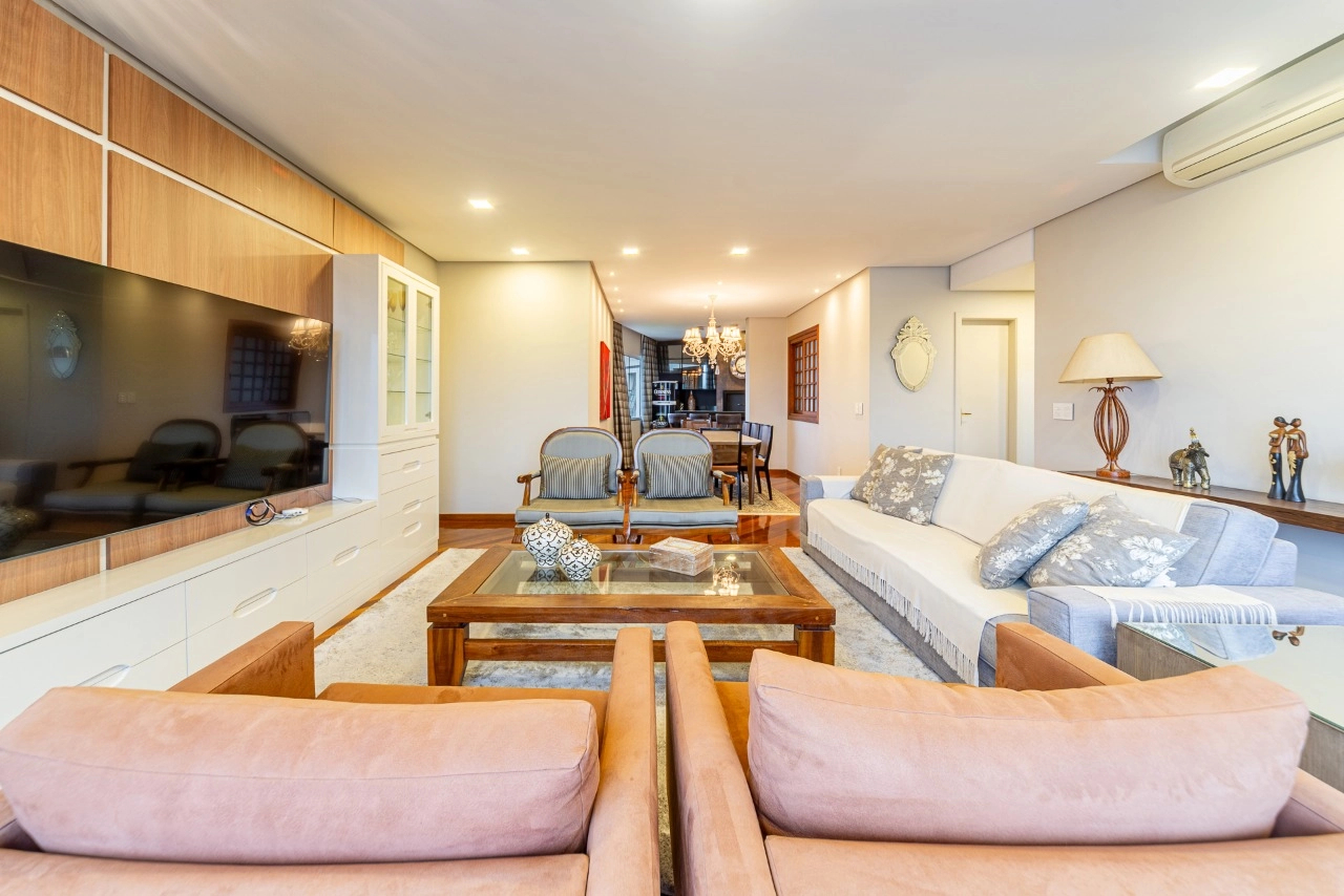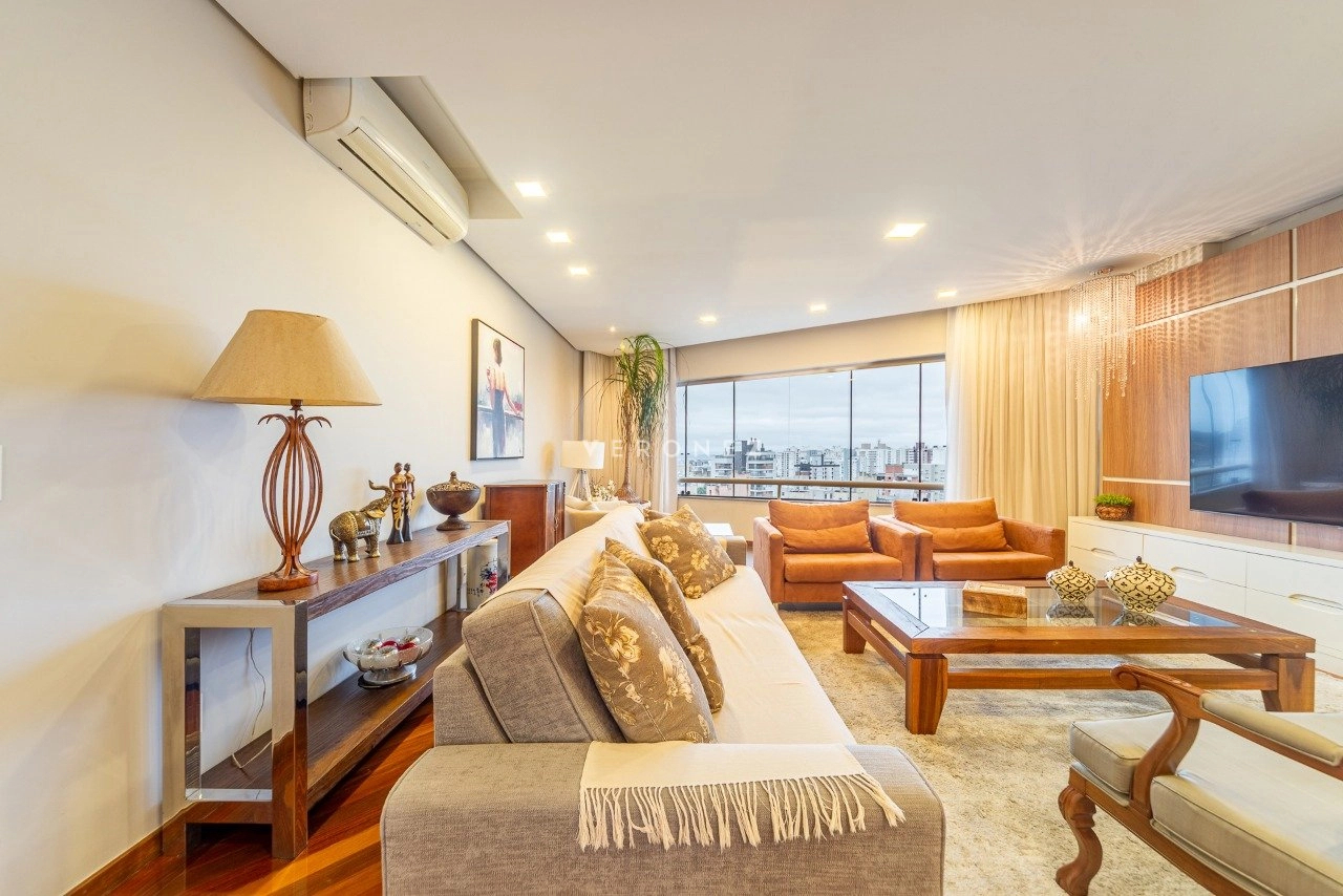 Imóvel com 160m² de área privativa com 2 vagas de garagem separadas e cobertas, 3 suítes com mais 1 suíte que foi transformada em closet, cozinha com área de serviço separada, dependência com banheiro, lavabo, amplo living com 2 ambientes e linda vista panorâmica com espaço gourmet.