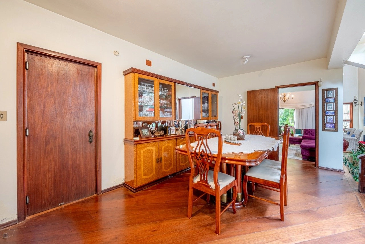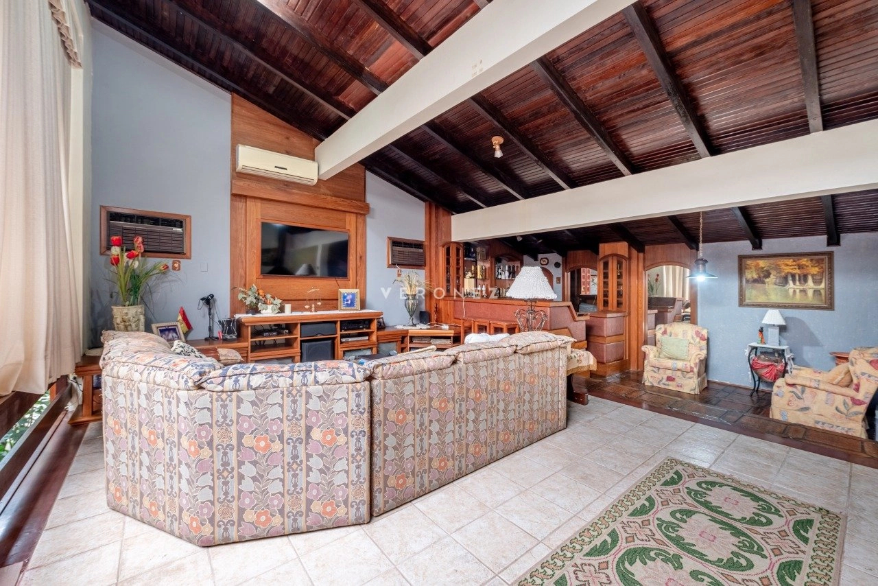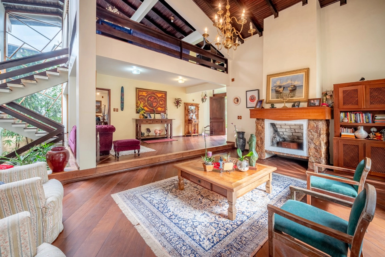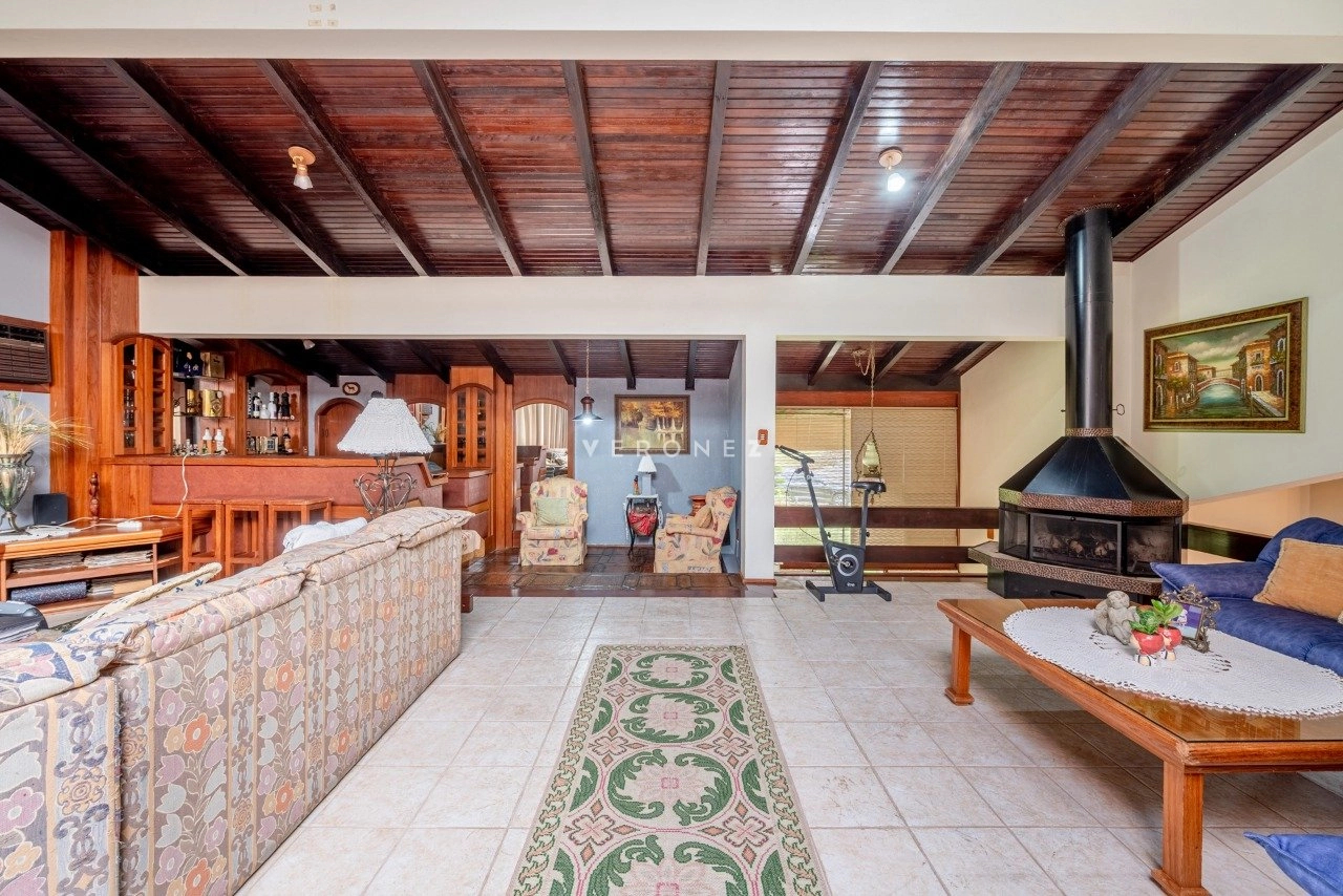 Com 481m² privativos, essa casa conta com living amplo de estar com sacada, lareira, gabinete, lavabo, sala de jantar e cozinha reformada.