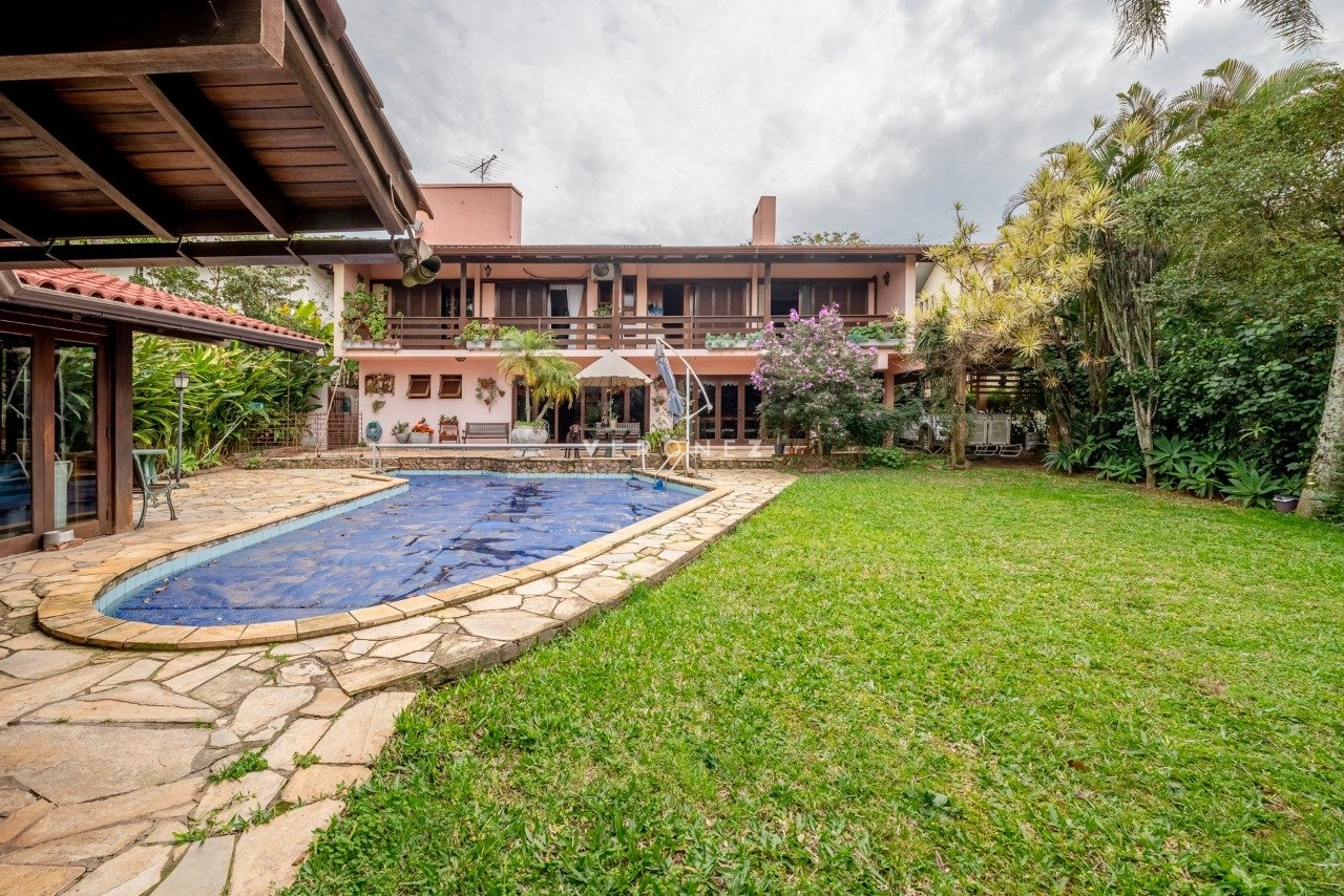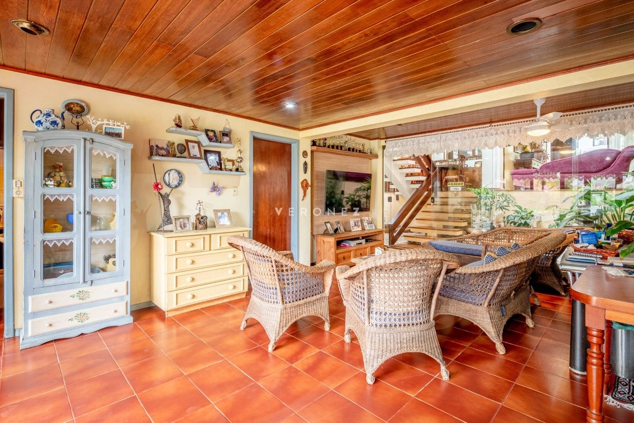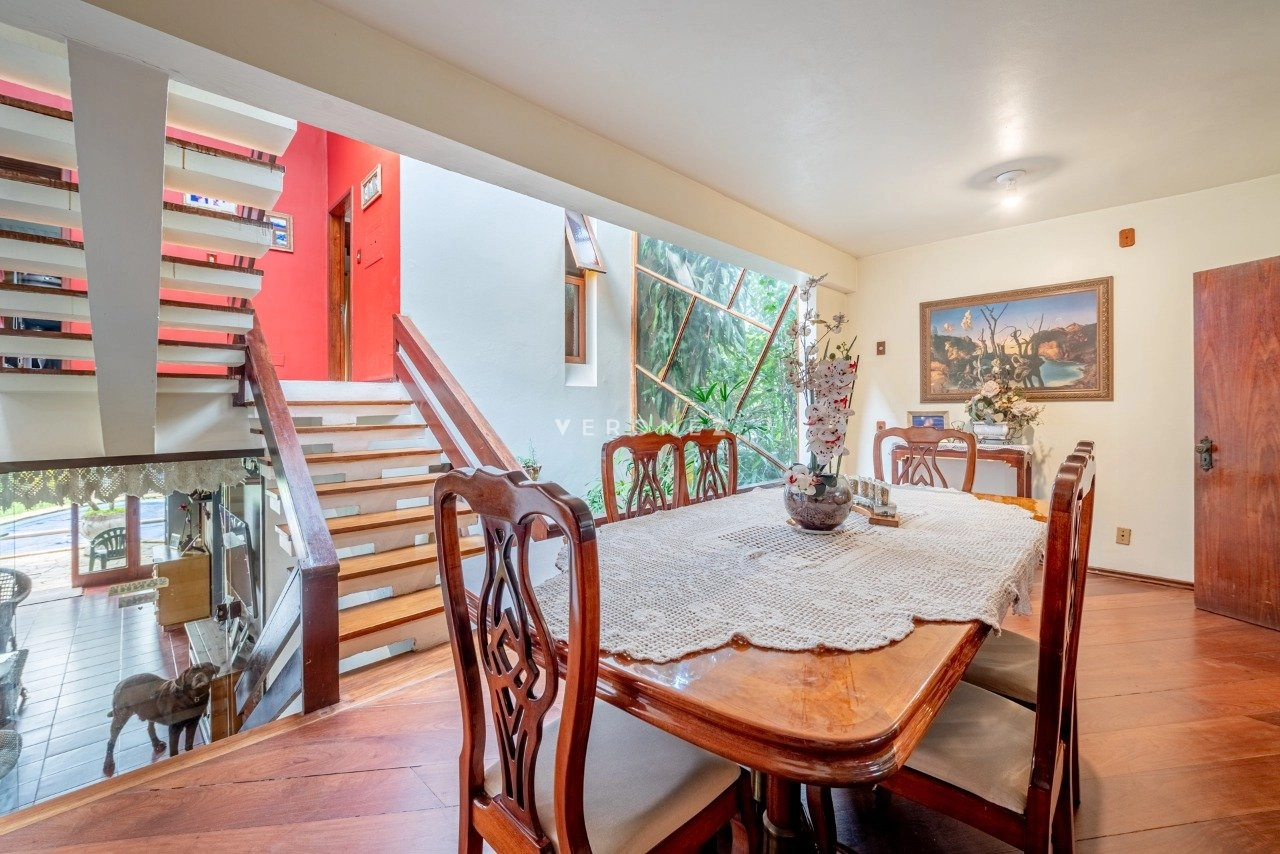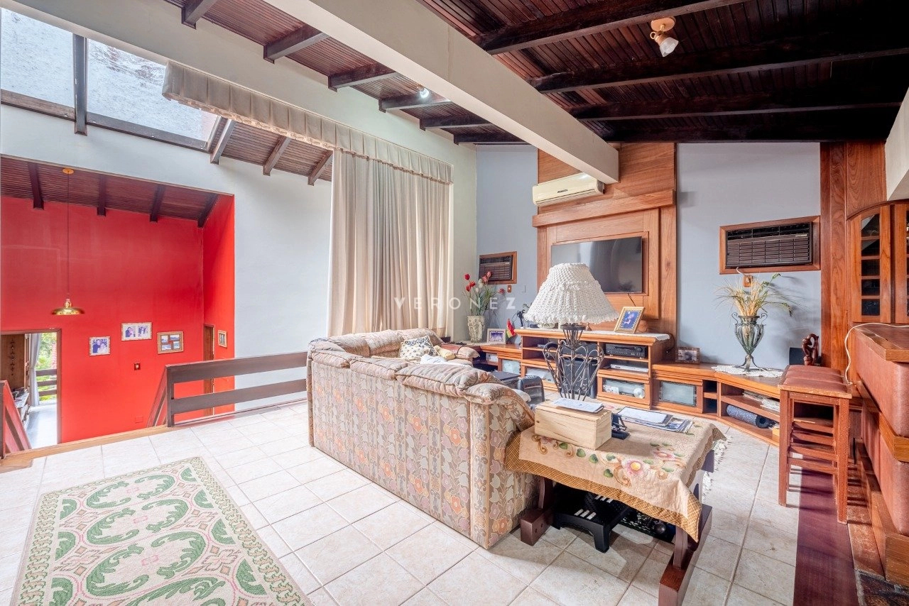 Com 481m² privativos, essa casa conta com living amplo de estar com sacada, lareira, gabinete, lavabo, sala de jantar e cozinha reformada.