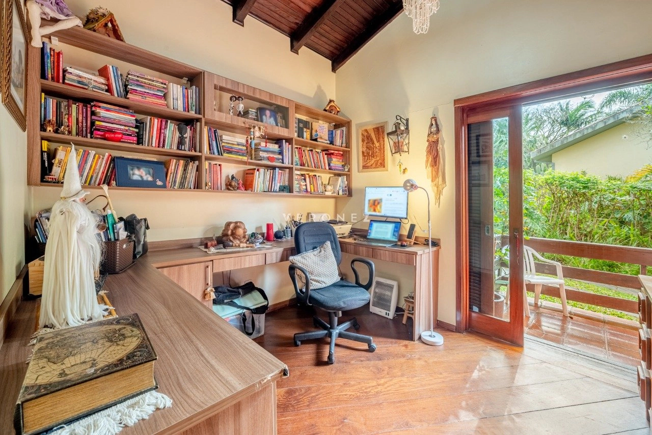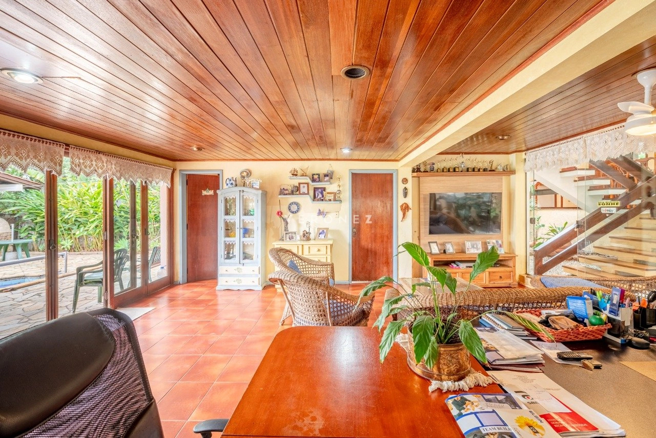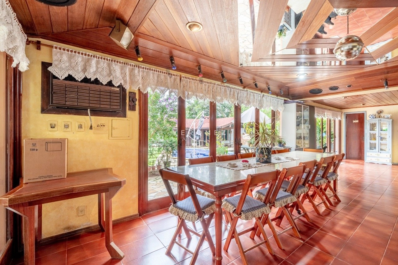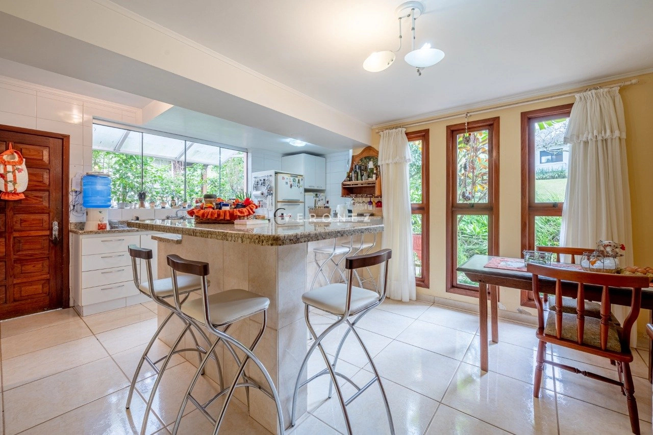Com 481m² privativos, essa casa conta com living amplo de estar com sacada, lareira, gabinete, lavabo, sala de jantar e cozinha reformada.